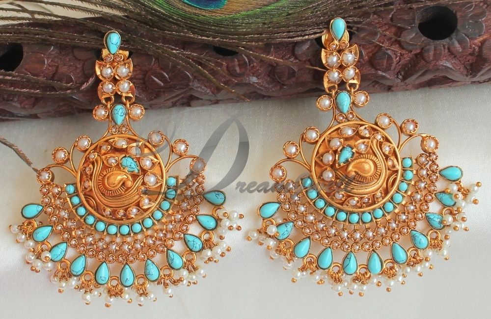 Matte Finish Turquoise Blue Pearl Big Earrings DJ20849