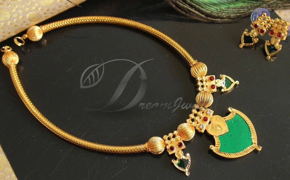 Gold tone Palakka Green Hasli Necklace Set DJ18723