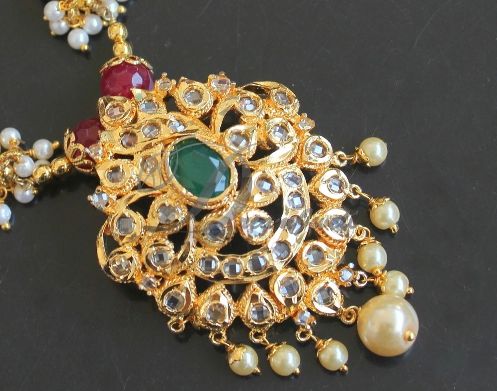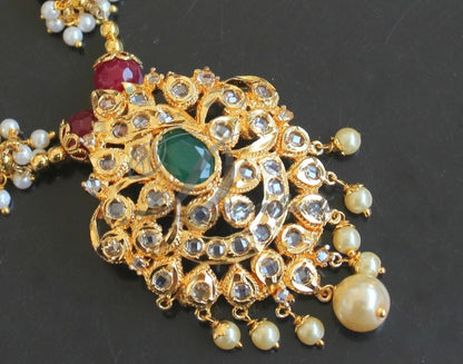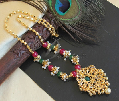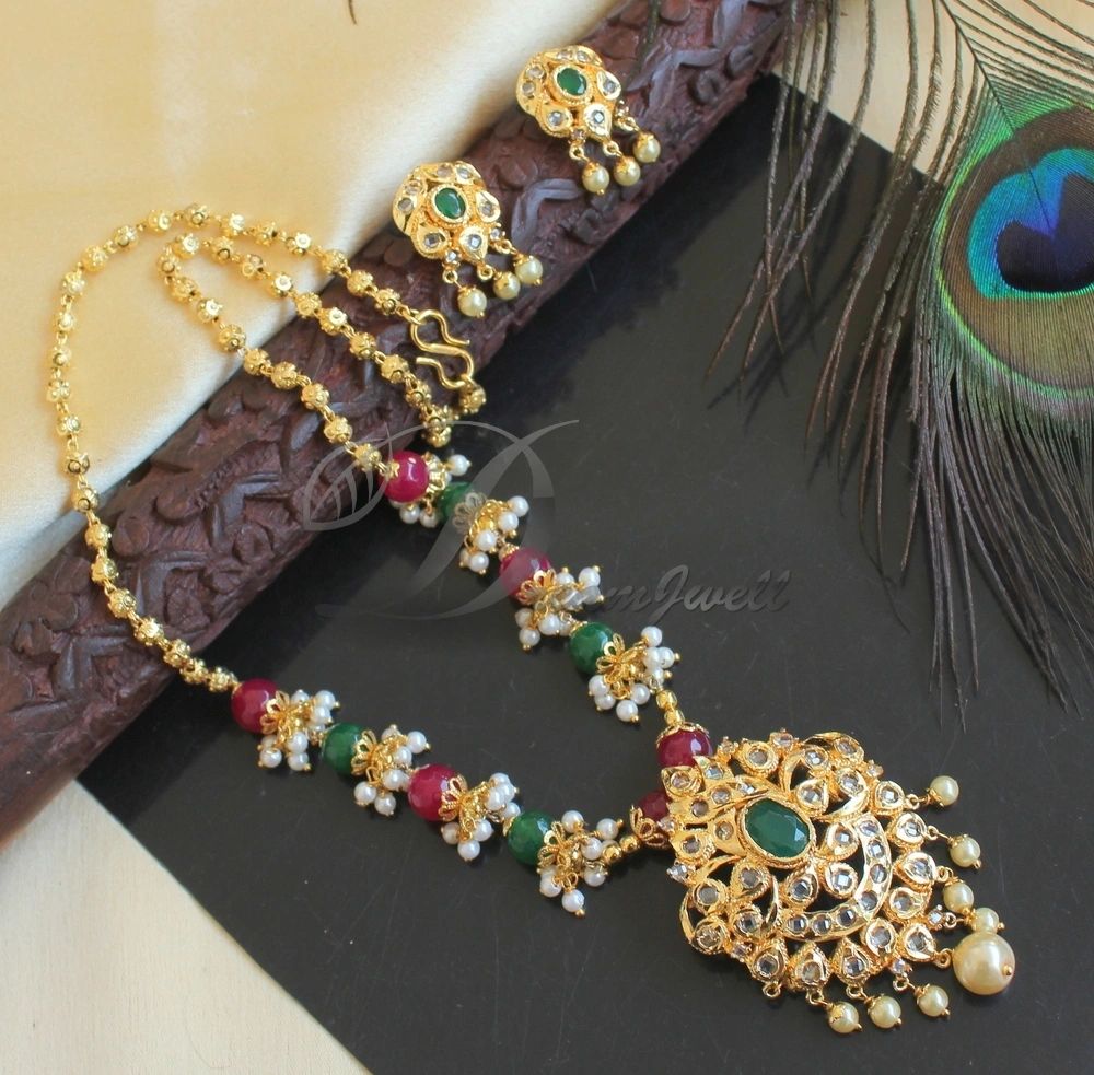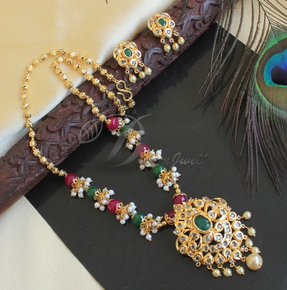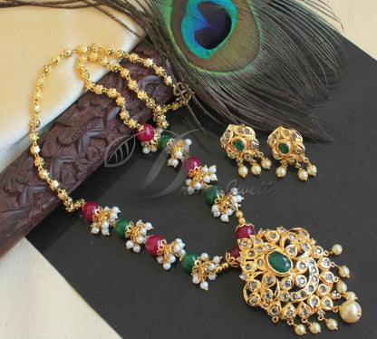 Gold tone Ruby-green Agates Pearl chain/Necklace Set DJ23055
