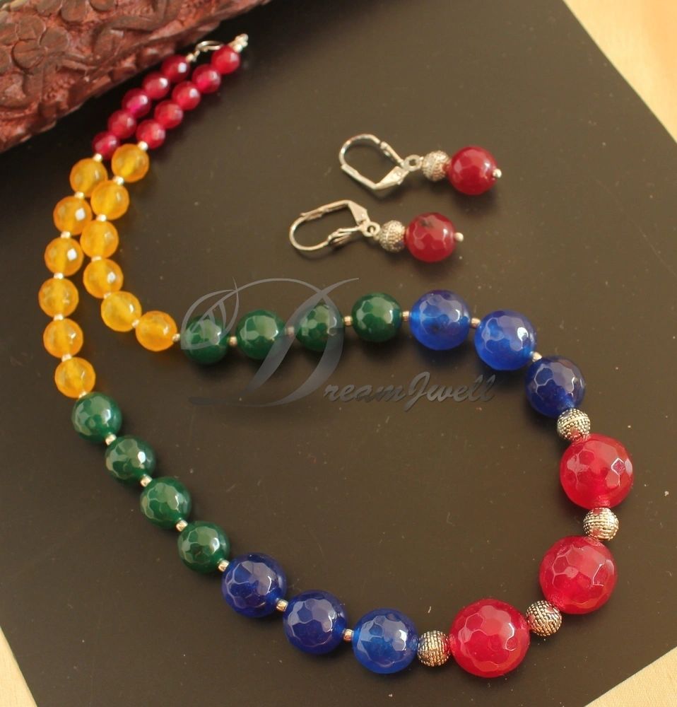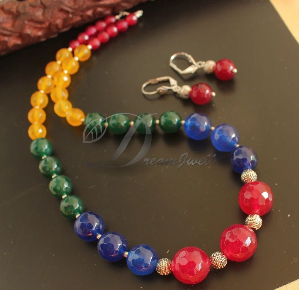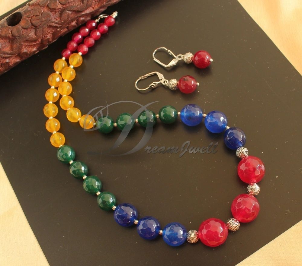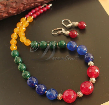 Silver Tone Multicolor Agate Necklace Set DJ24616
