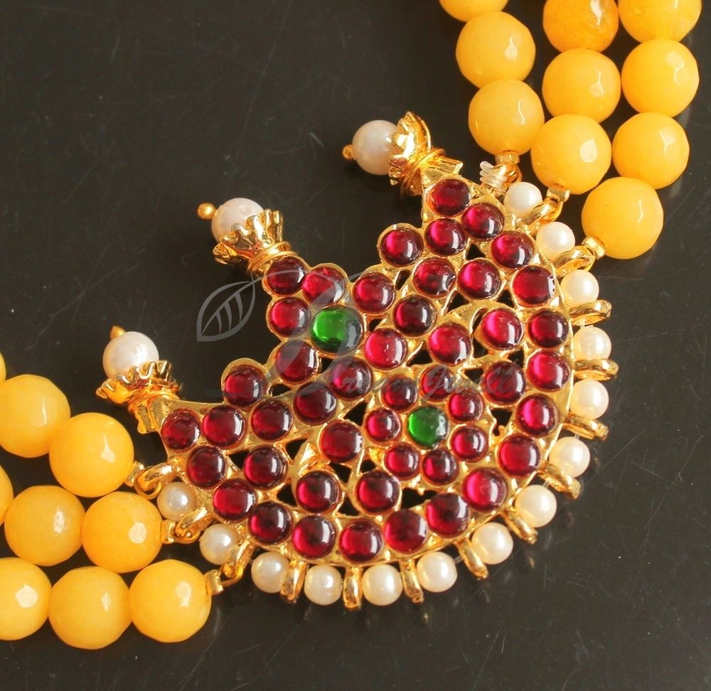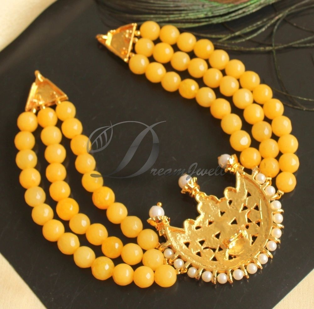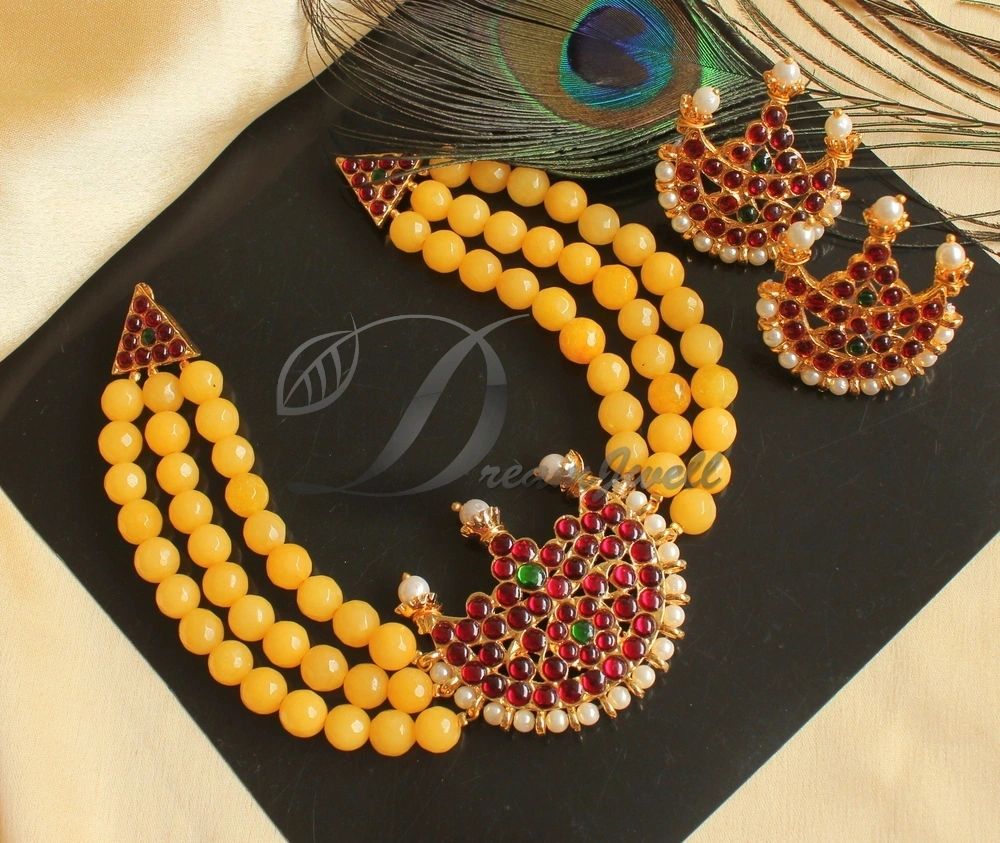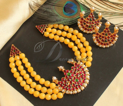 Gold tone Yellow Agates Kemp-green Moon Necklace Set DJ22995