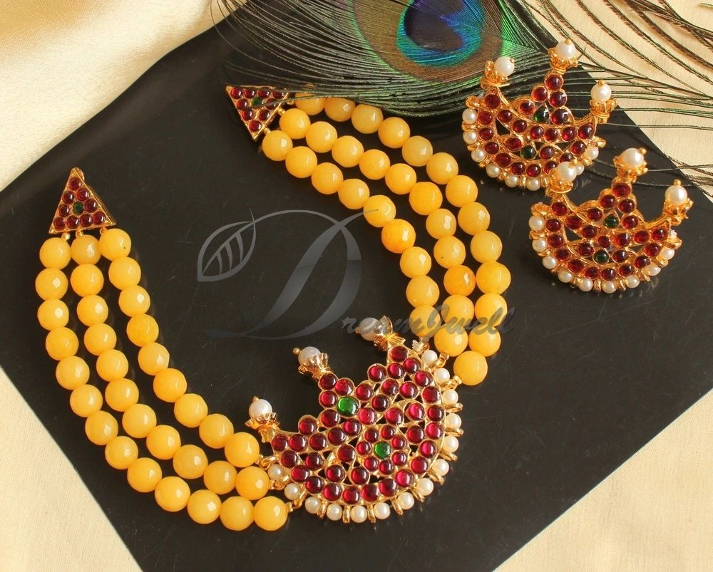 The product includes A pair of Earrings - Length : 4.5 cm , Width : 4 cm A Necklace - Length : 12 cm Earrings type - Push back Necklace comes with a dori .