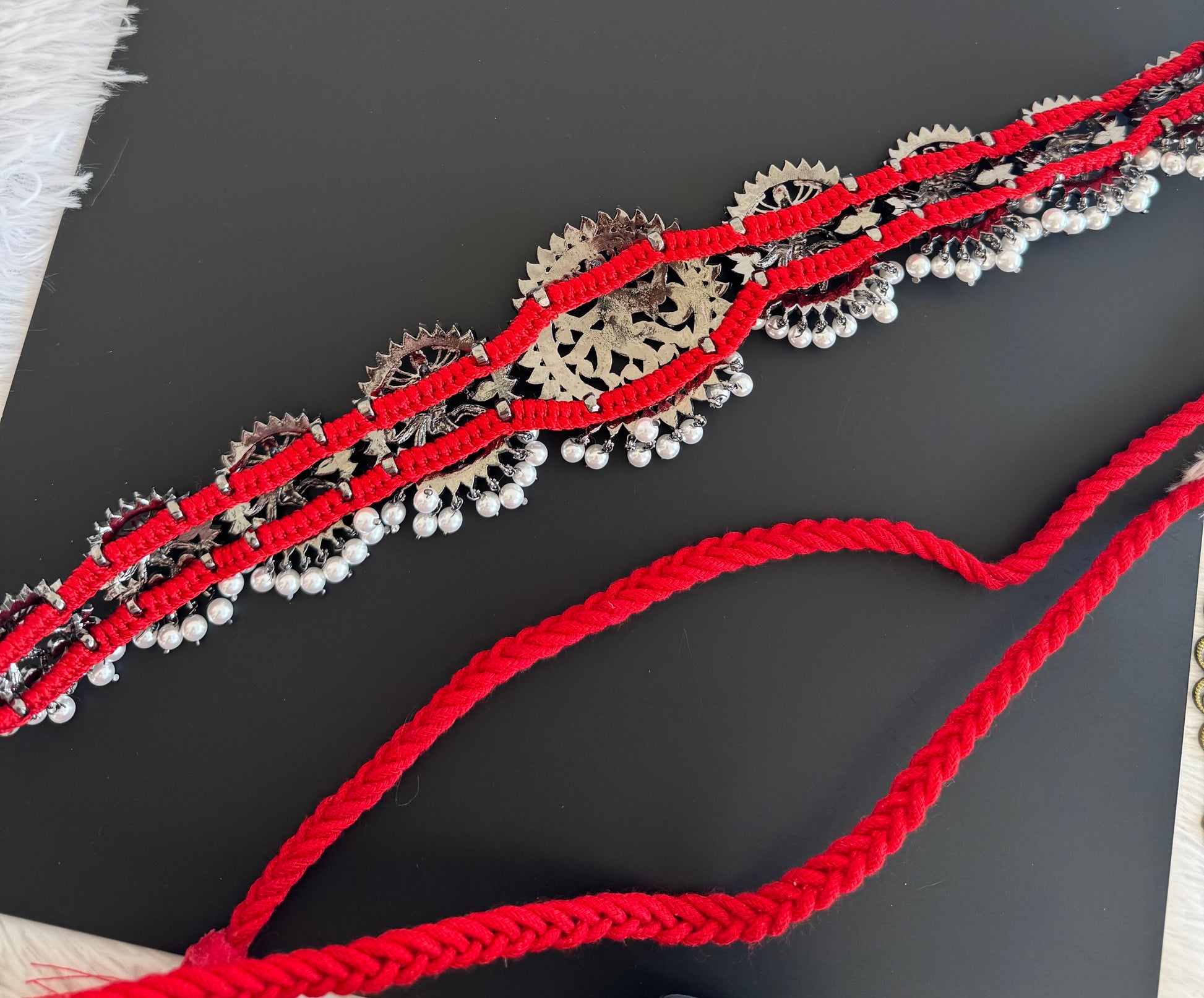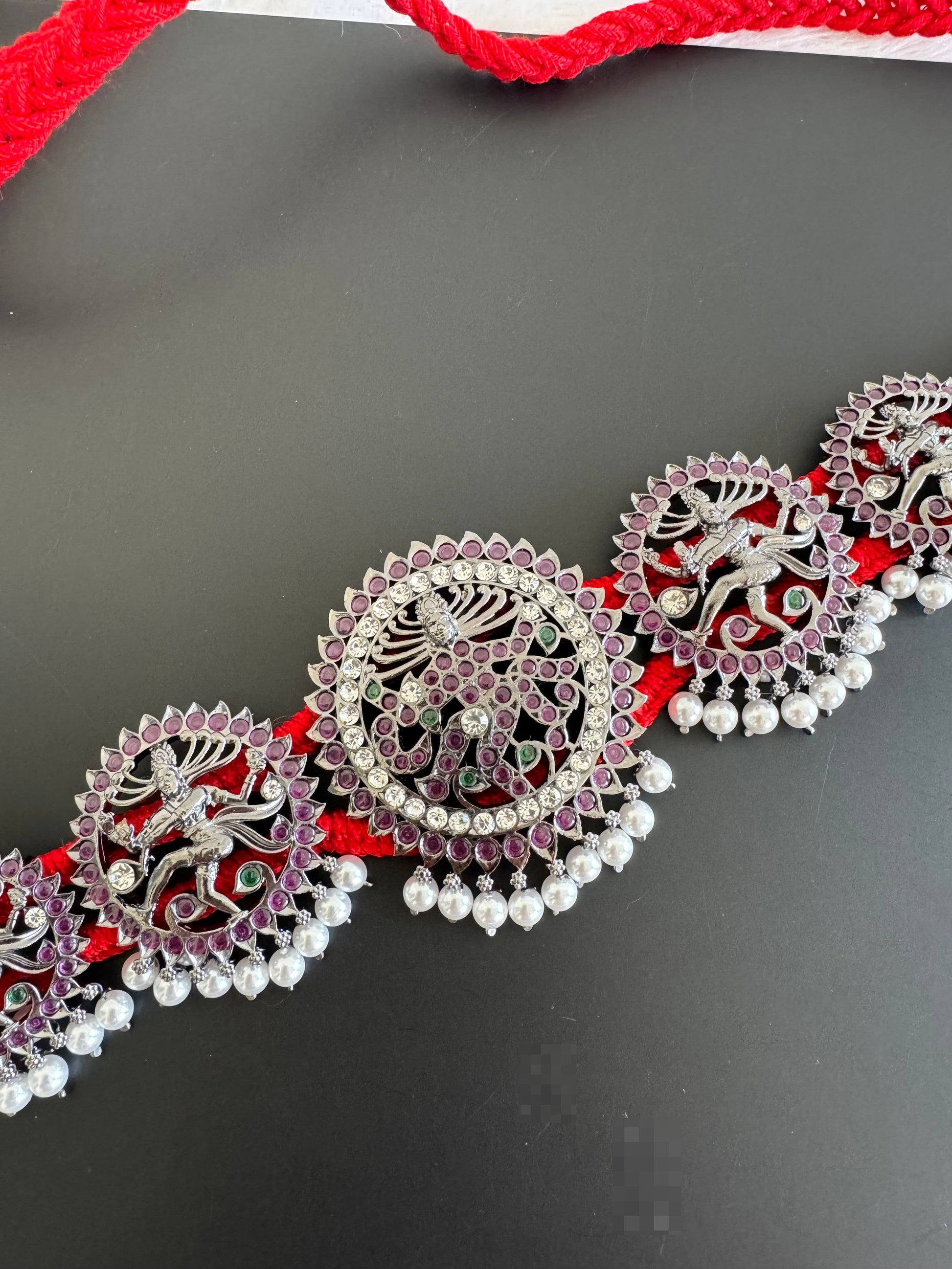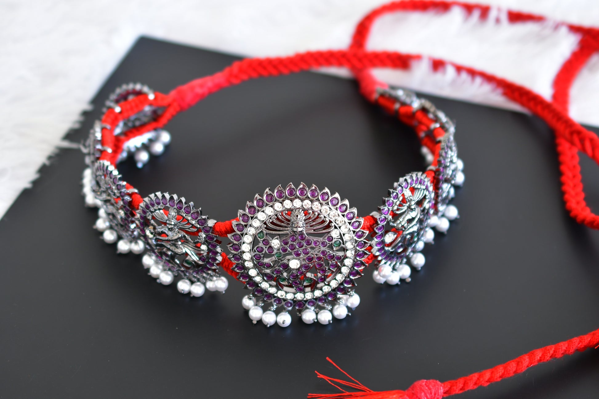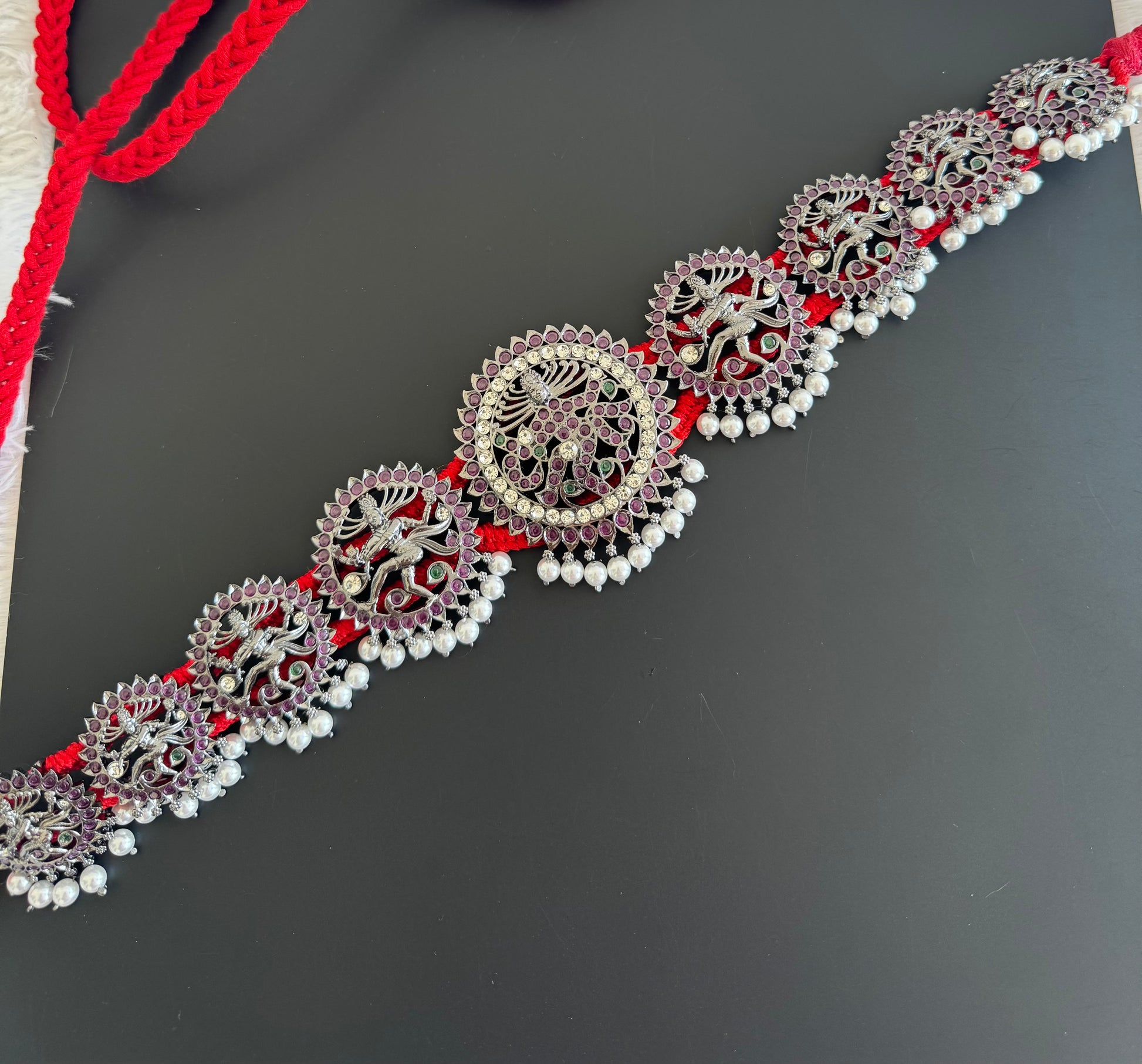 Black finish precious kemp-green-white pearl natarajar waist band dj-50861
