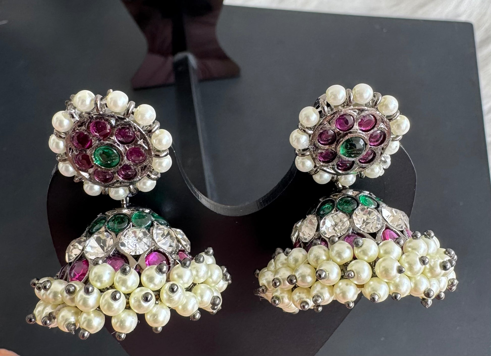 Black finish precious kemp AD green pearl jhumkka dj51024