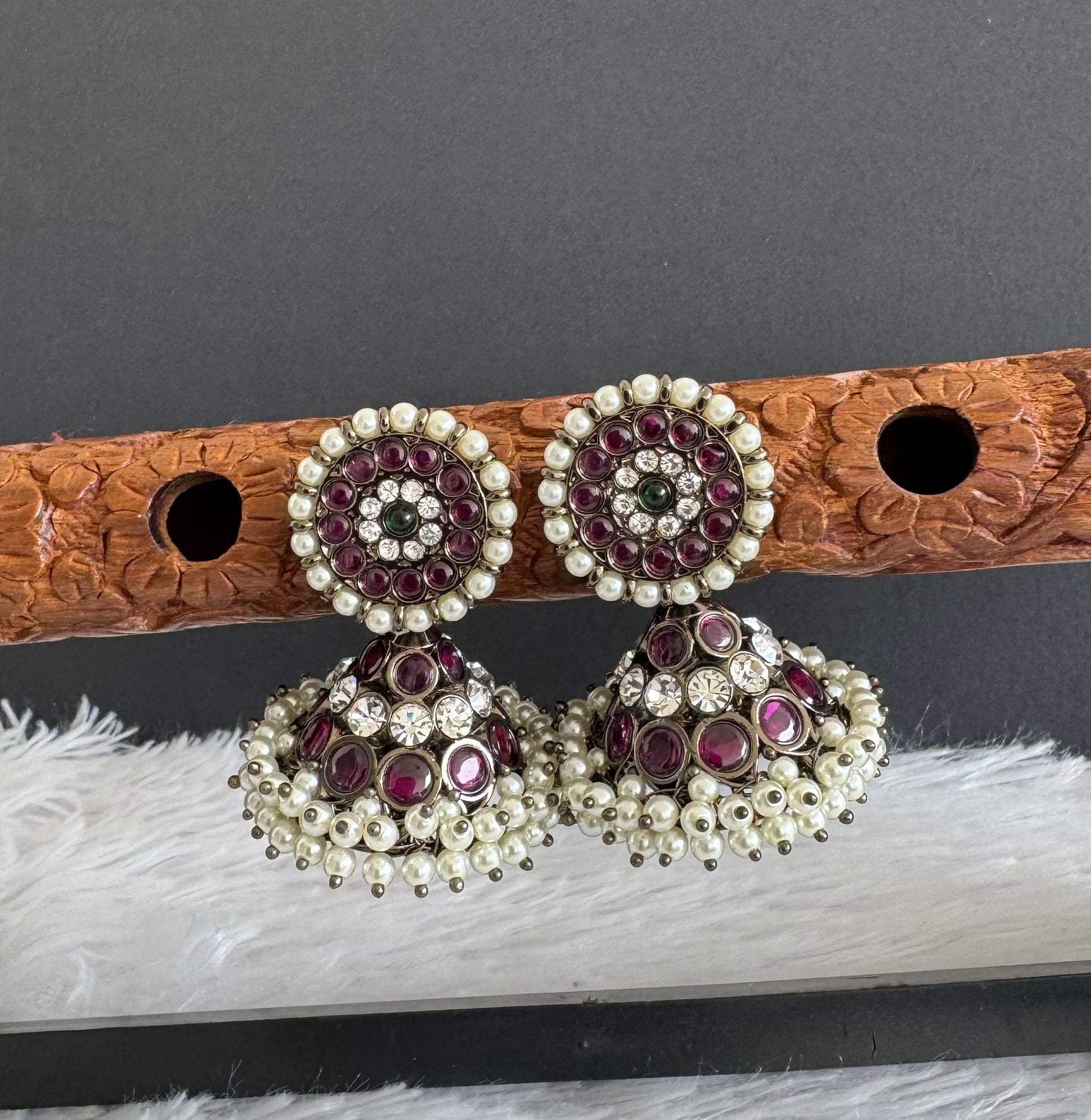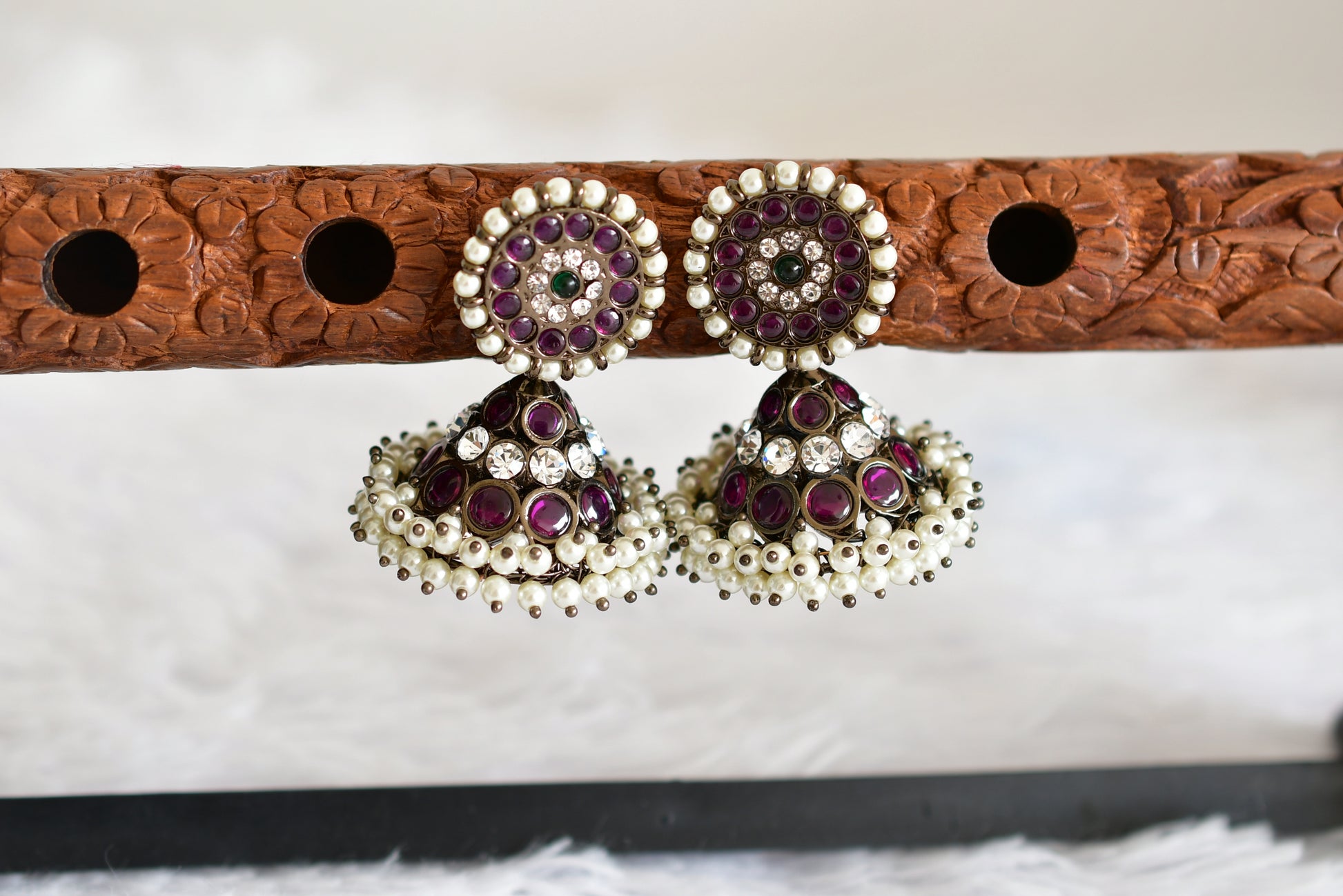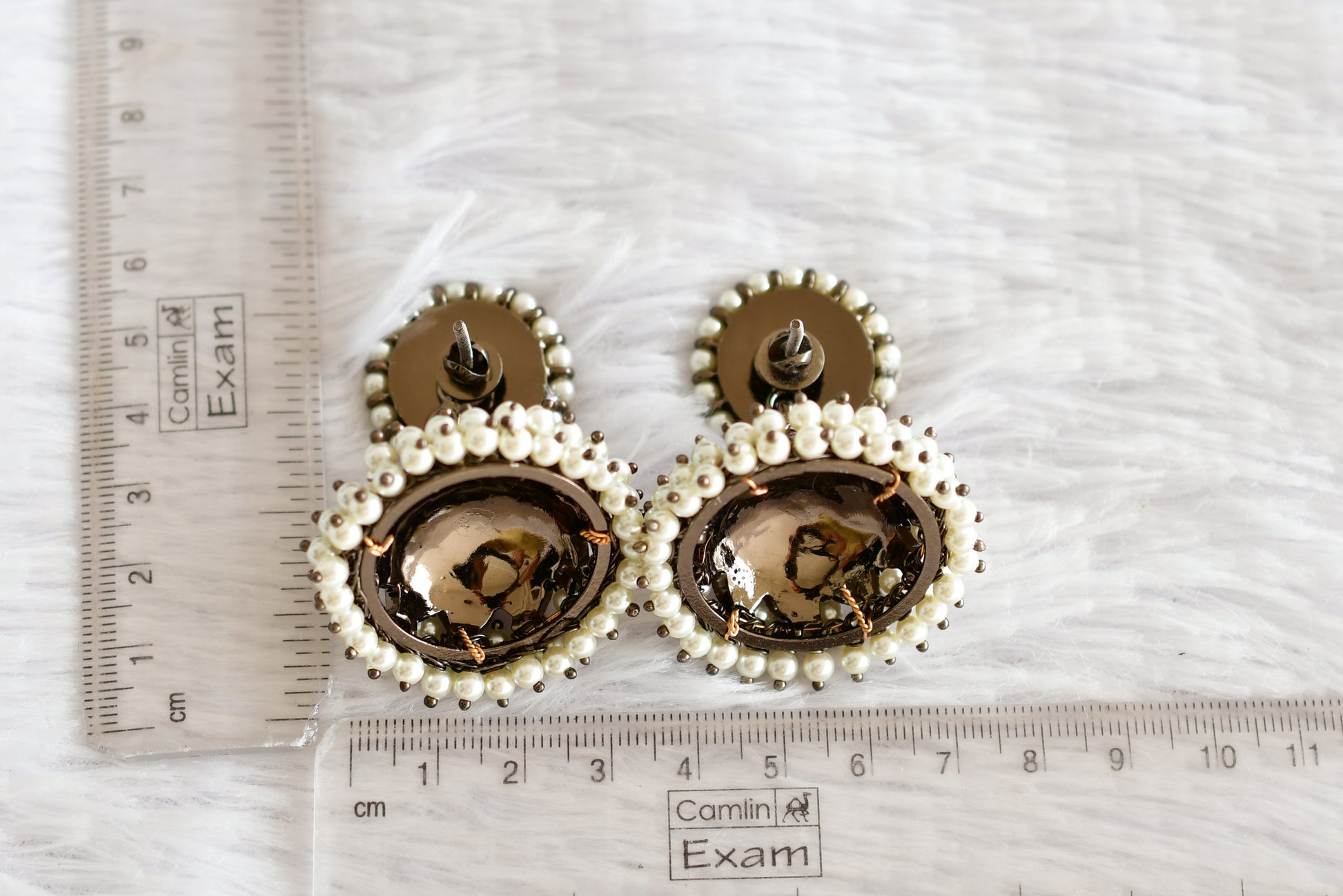 Black finish precious kemp-green pearl big jhumkka dj-52297