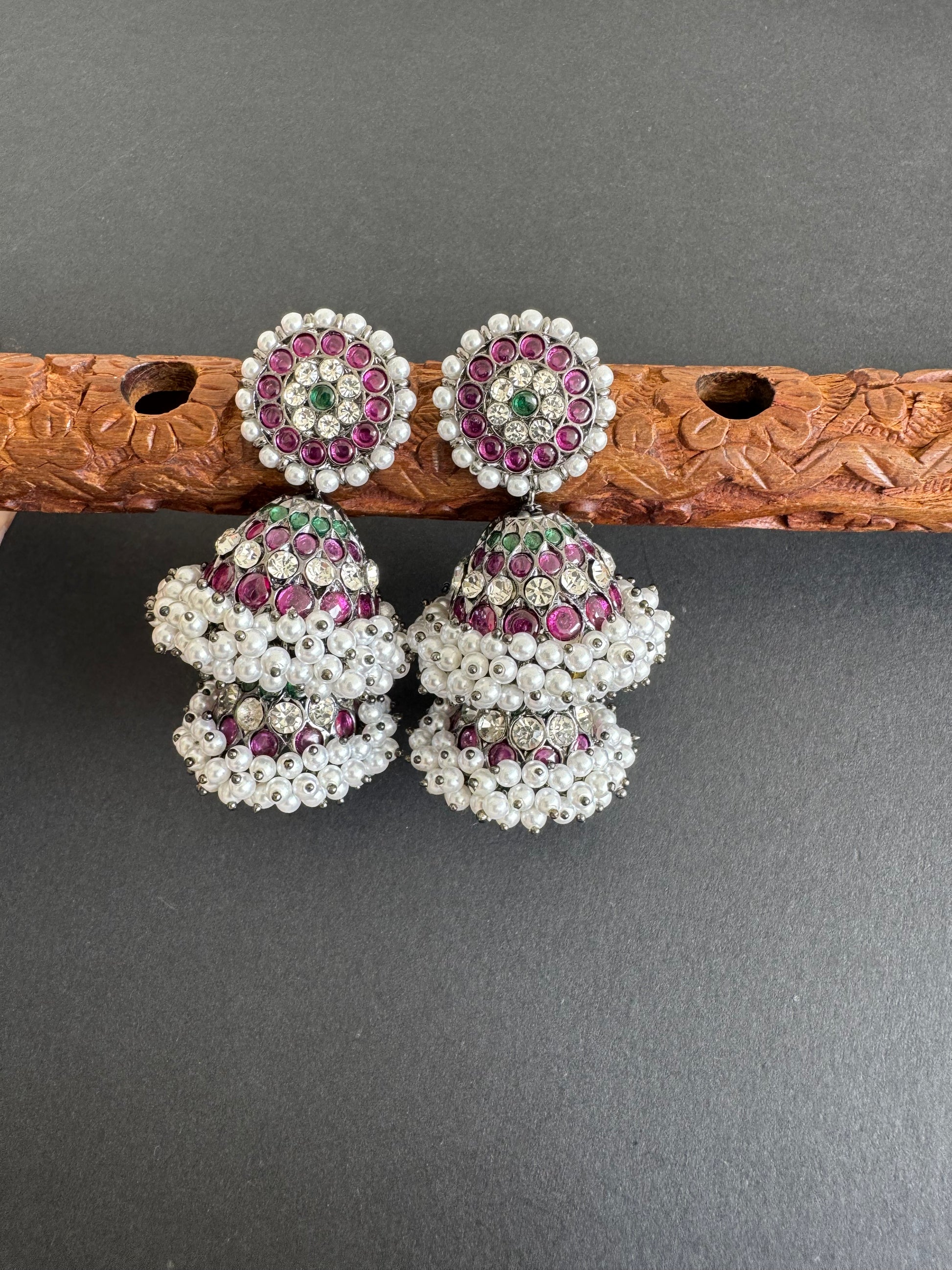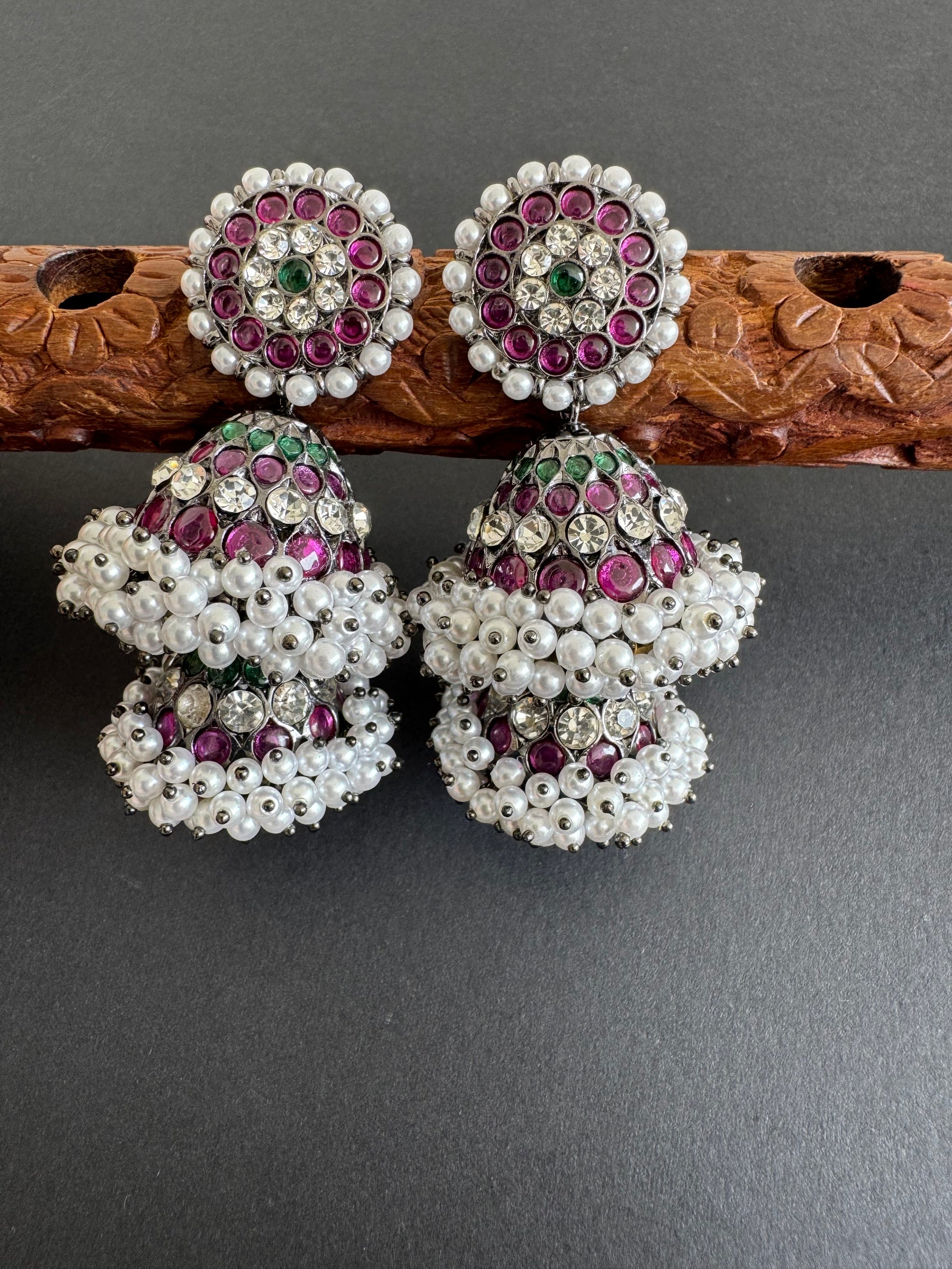 Black finish precious kemp-green pearl big step jhumkka dj-52298