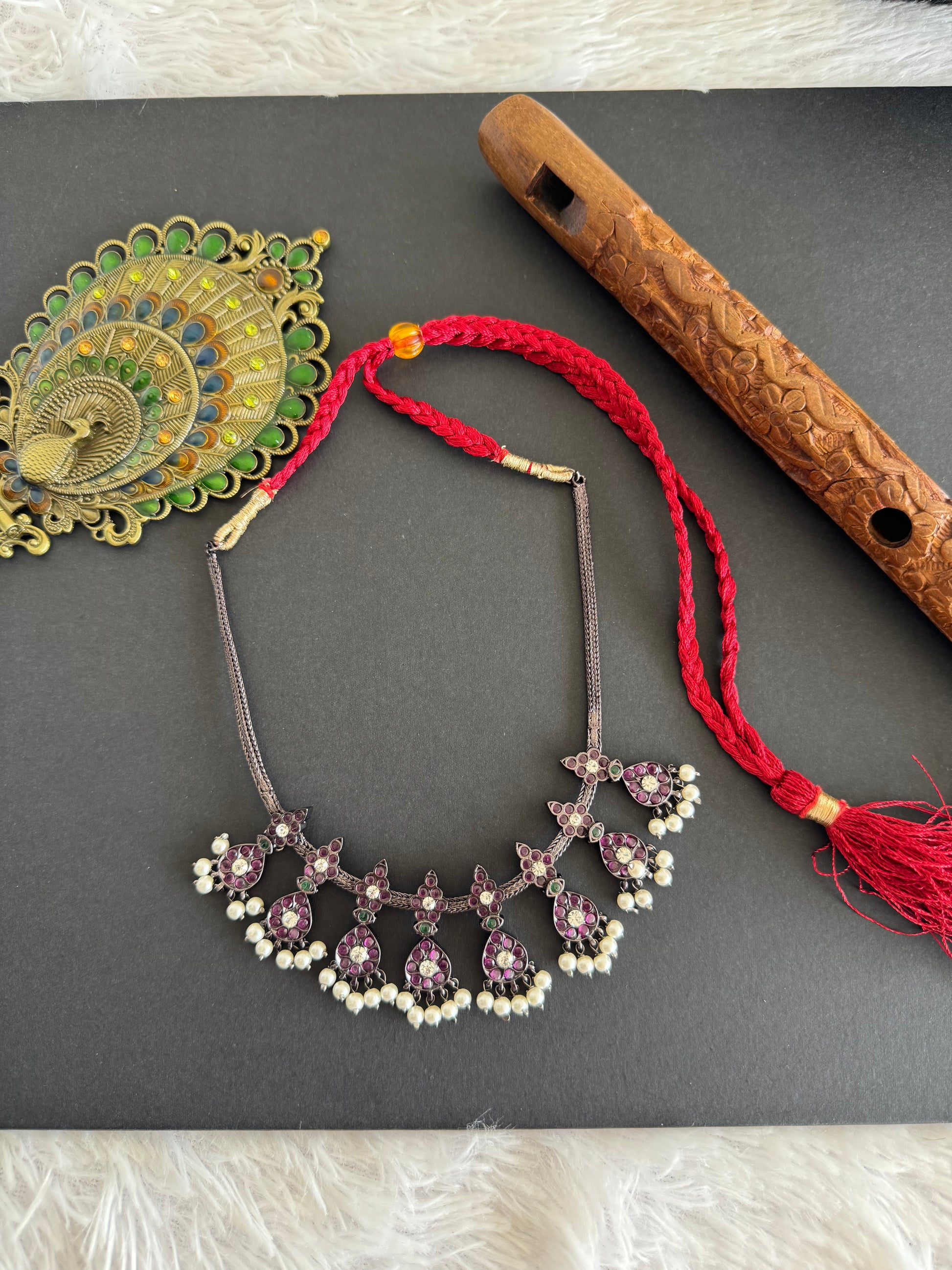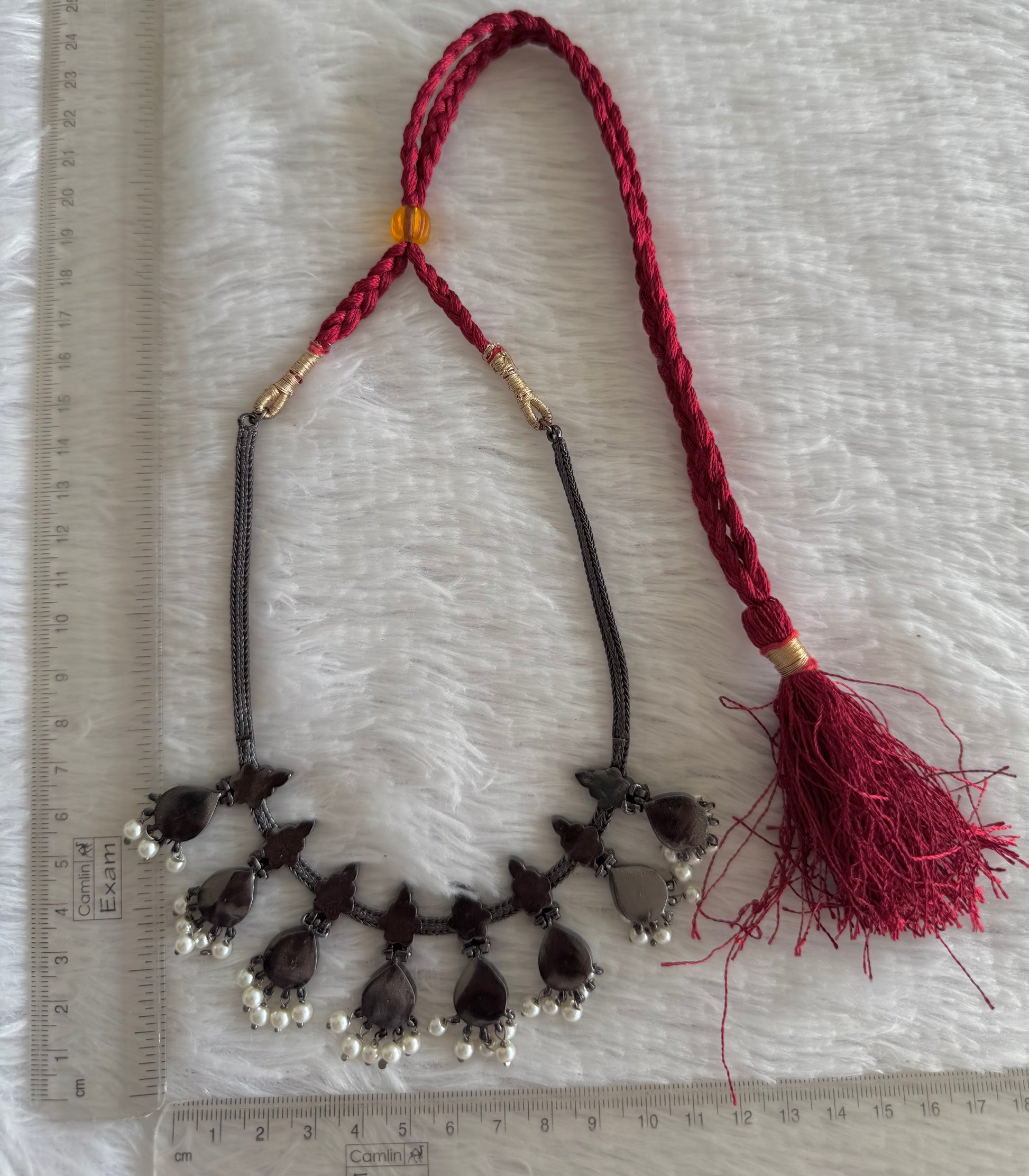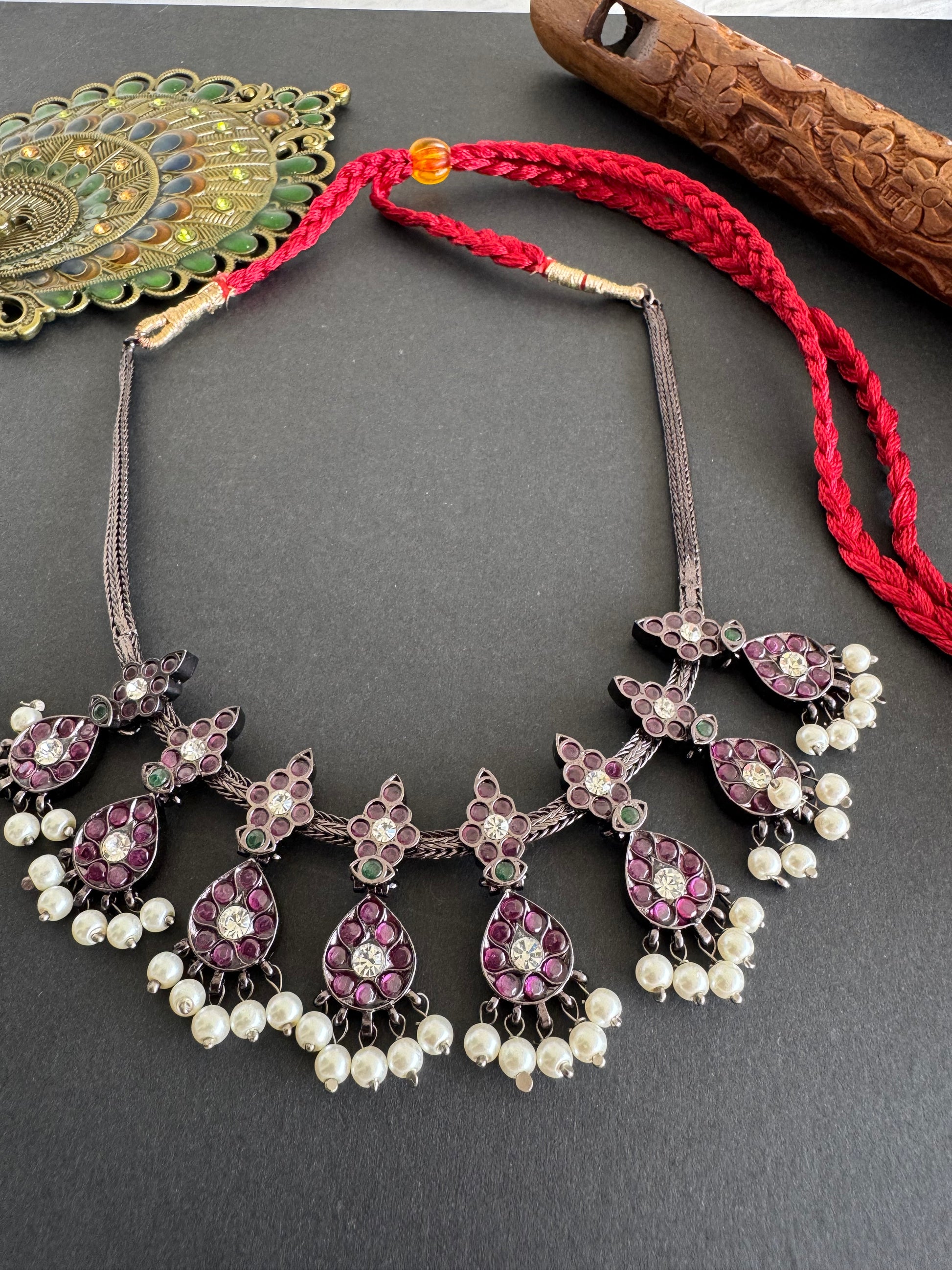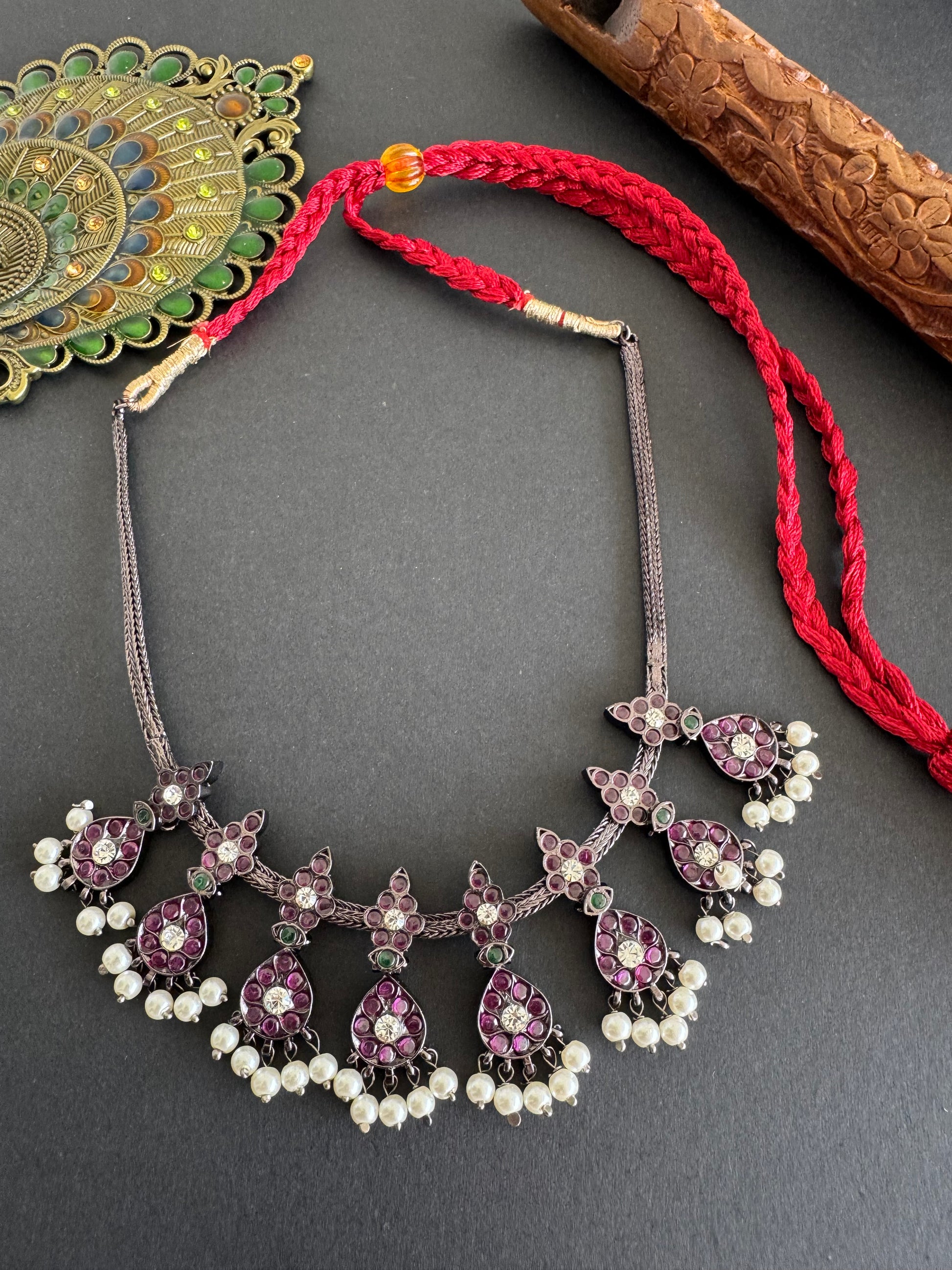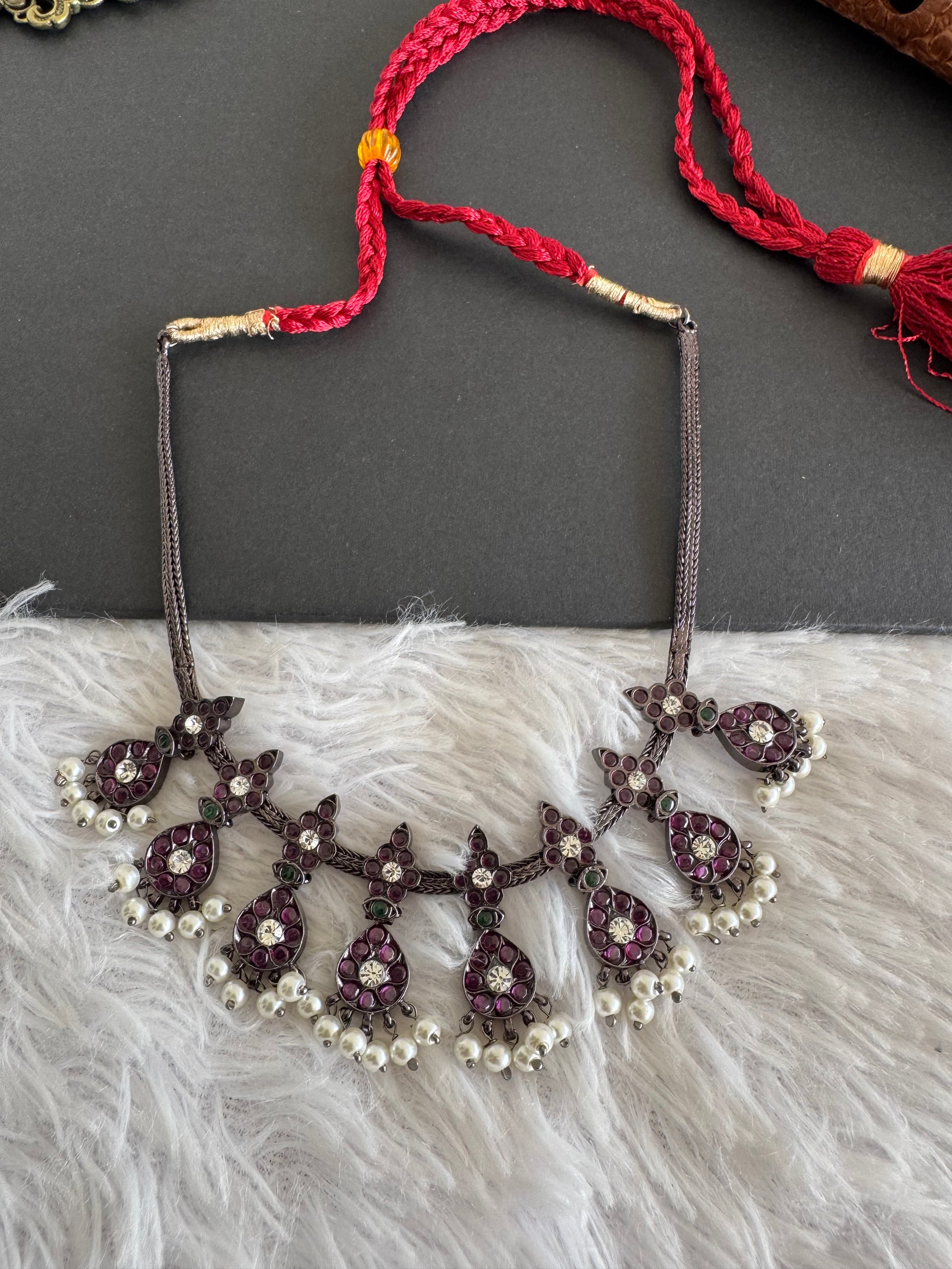 Black finish precious kemp-green pearl flower necklace dj-52282