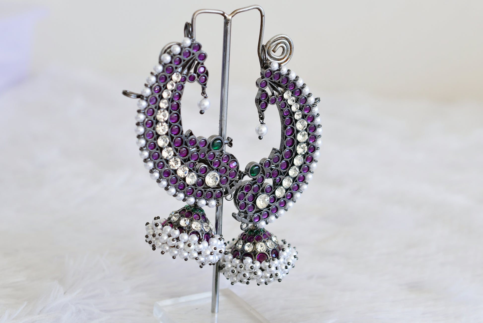Black finish precious kemp-green pearl khanpool peacock jhumkka dj-52520