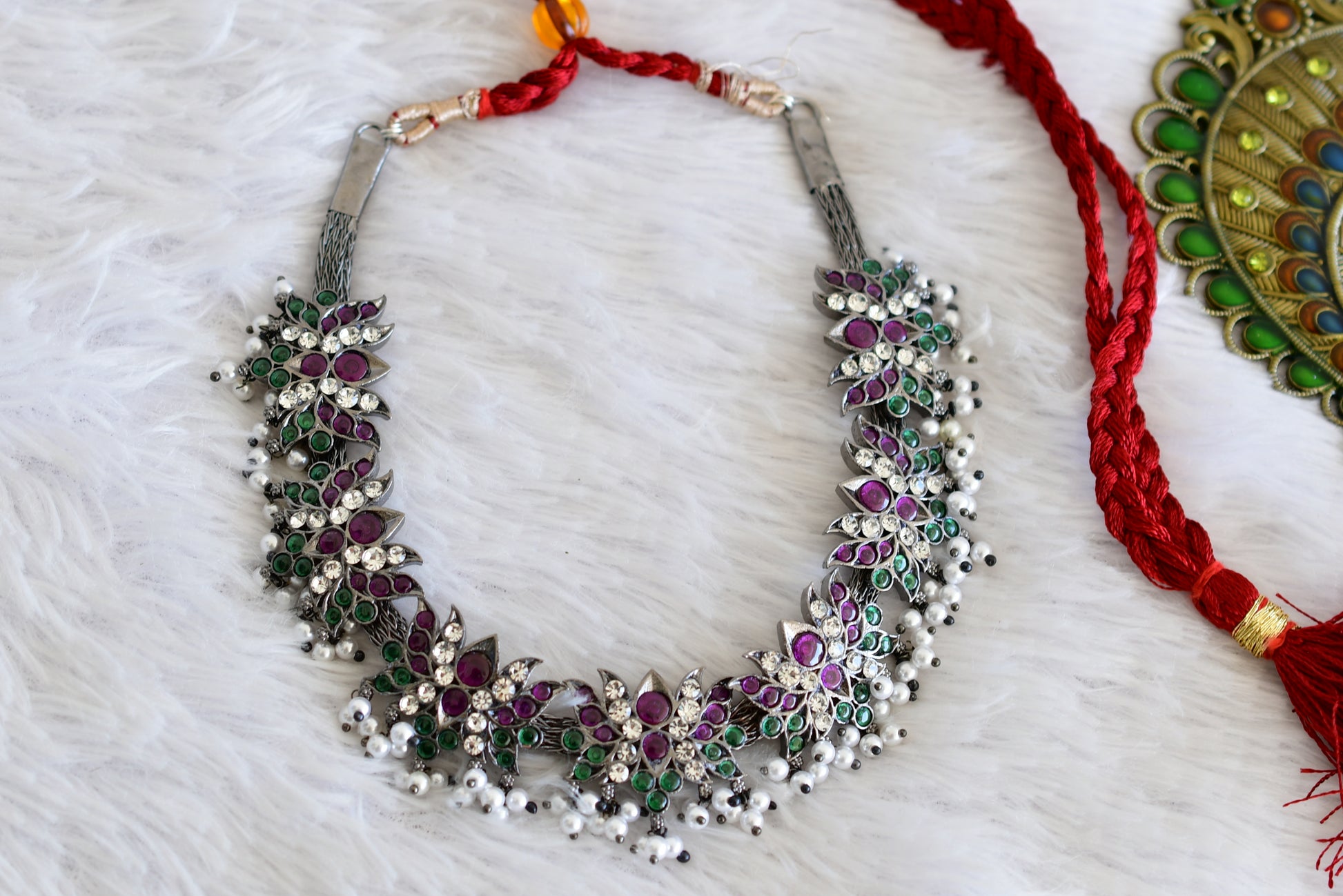 Black finish precious kemp-green pearl lotus necklace dj-52512