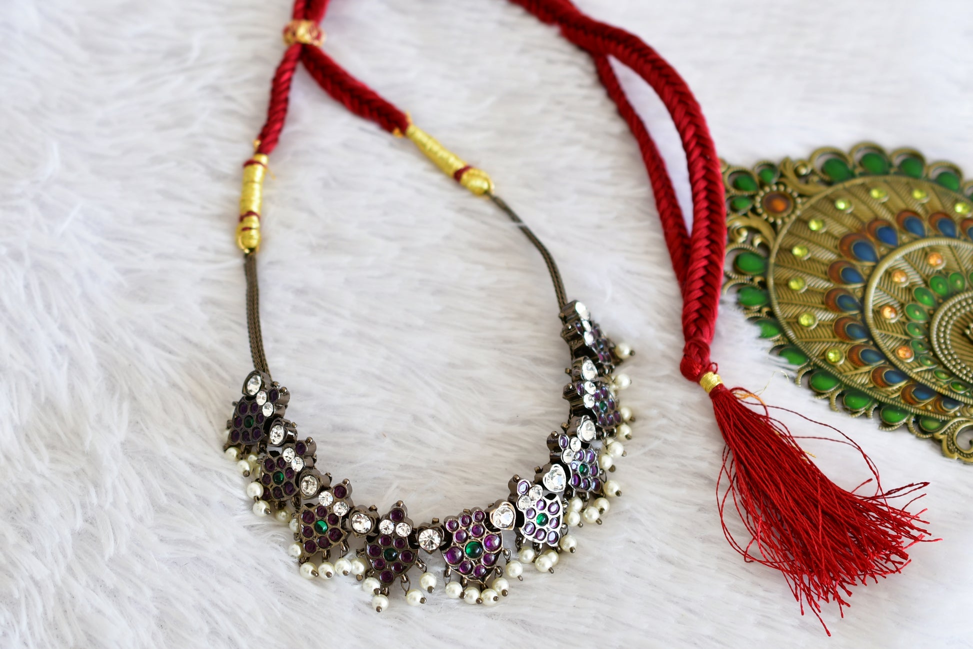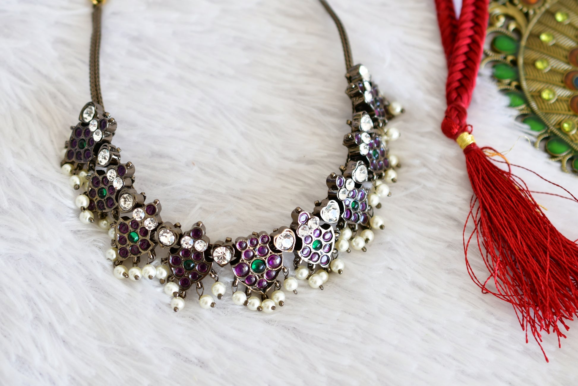 Black finish precious kemp-green pearl necklace dj-52508
