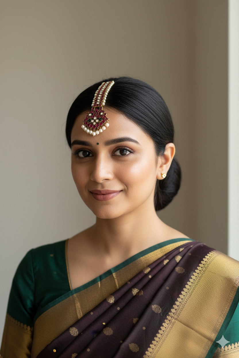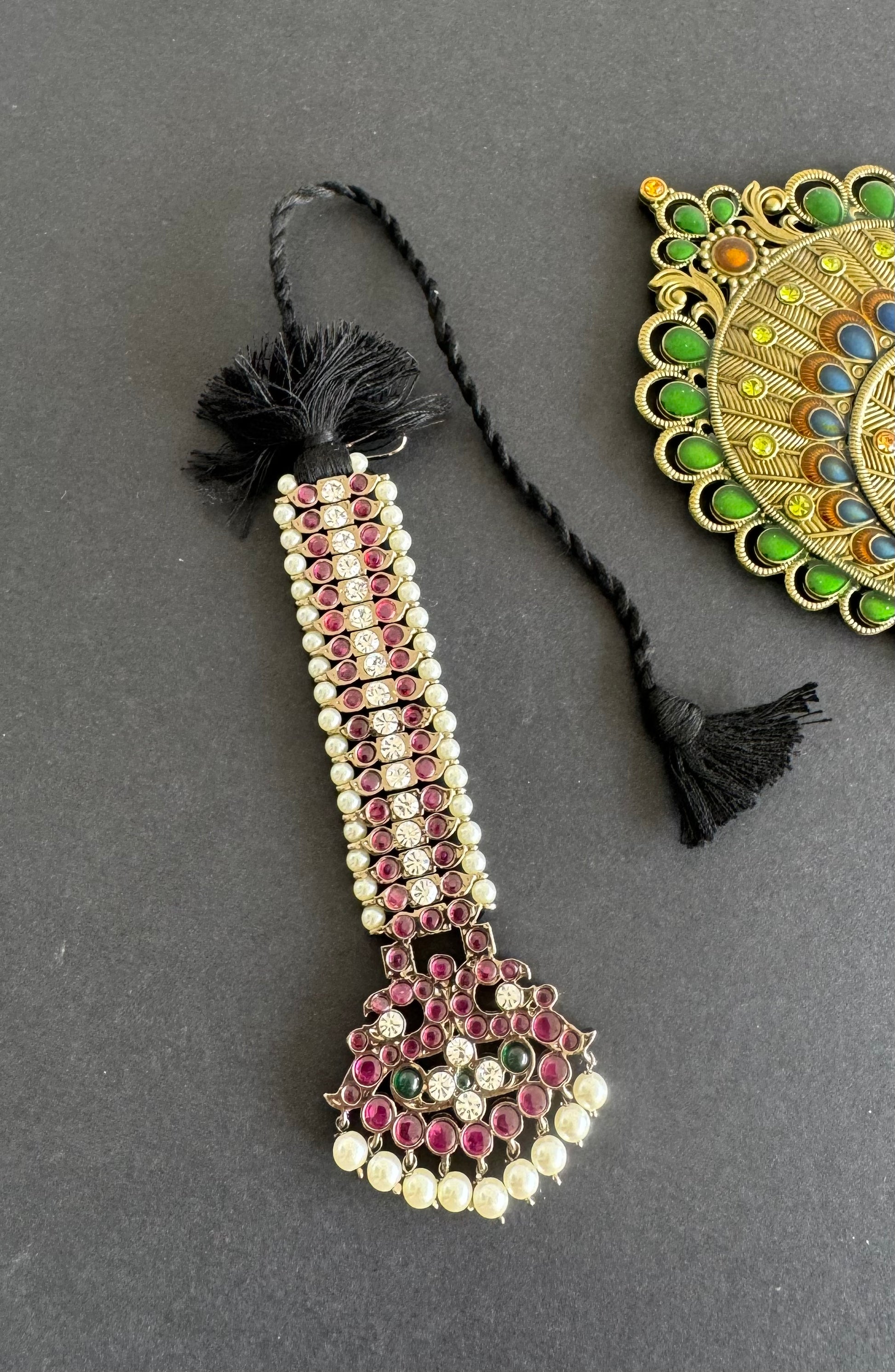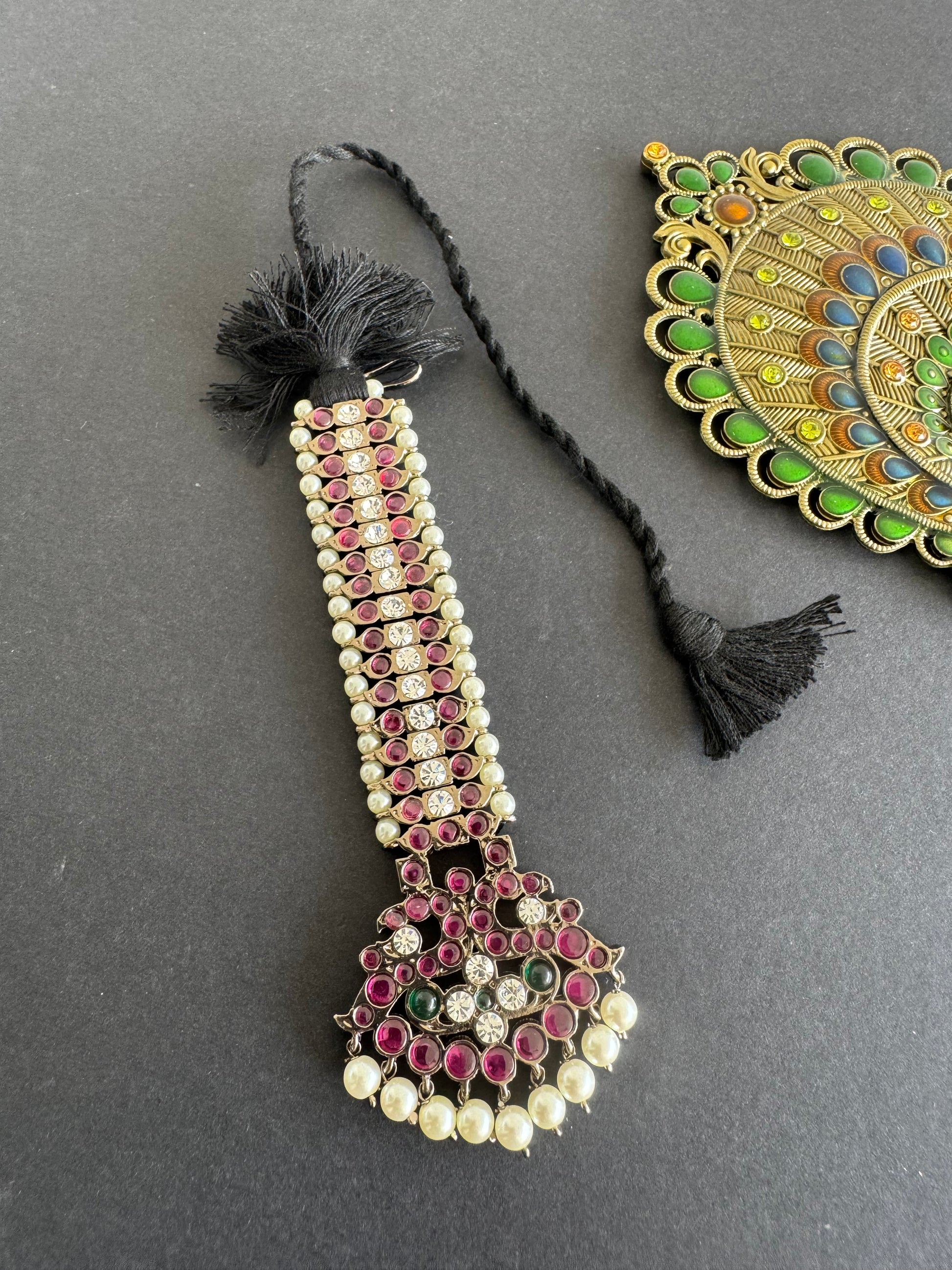 Black finish precious kemp-green-white pearl peacock tikka dj-52008