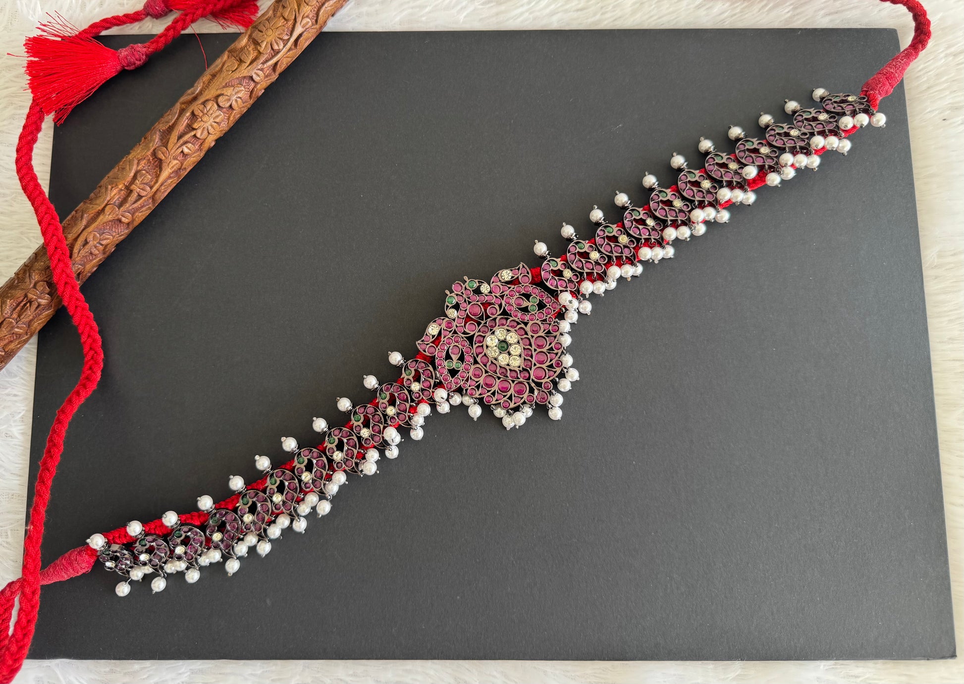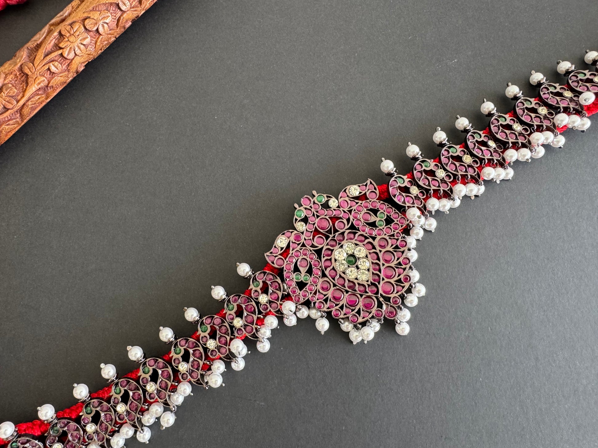 Black finish precious kemp-green-white pearl peacock waist band dj-52274