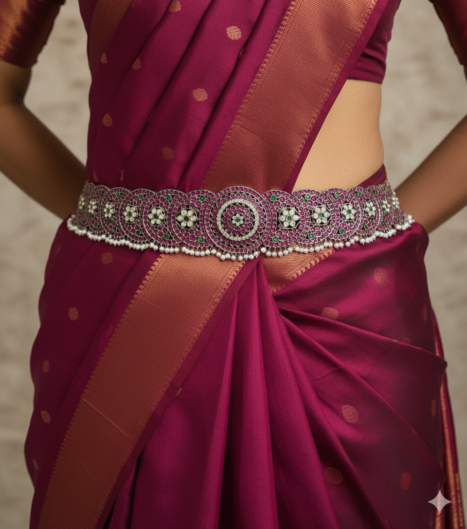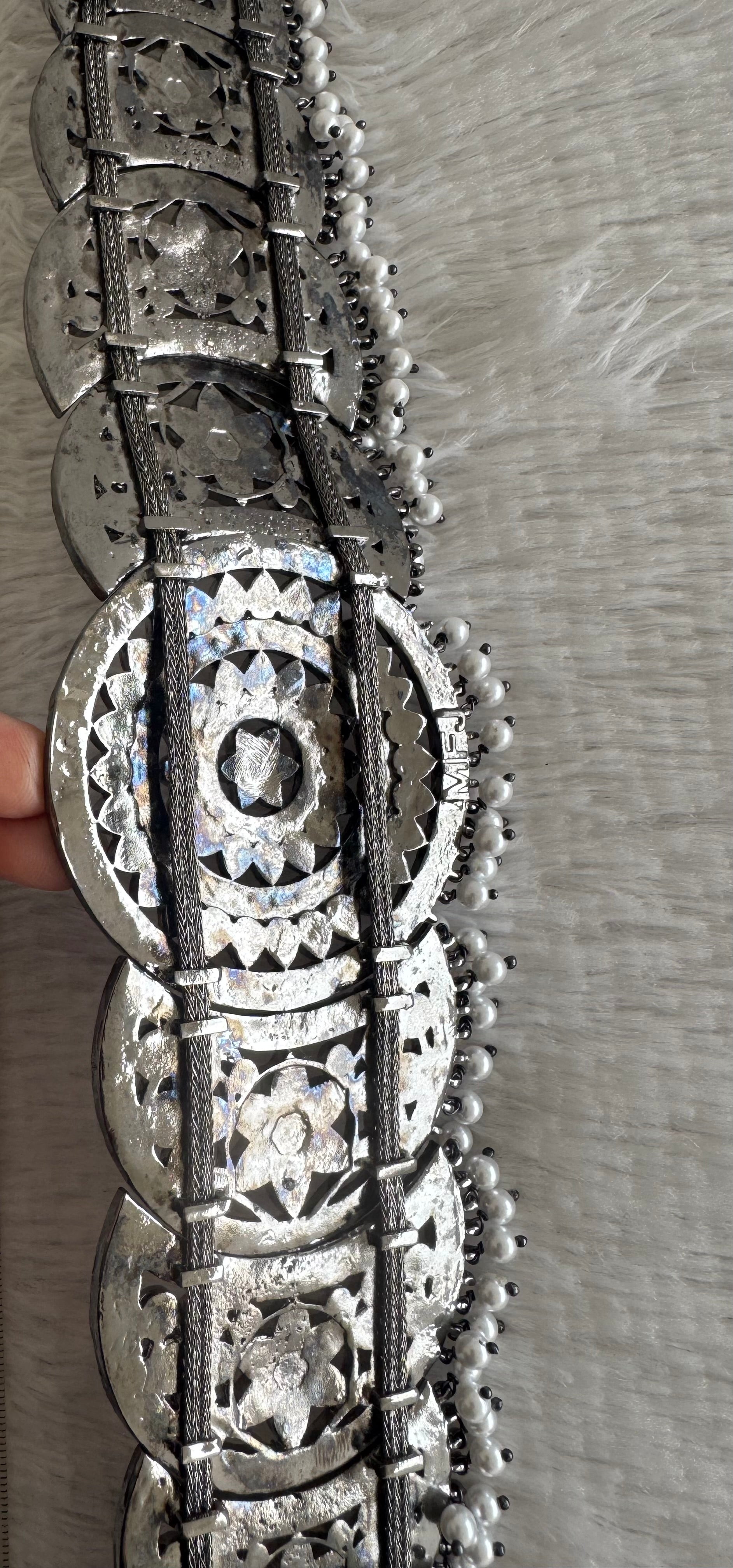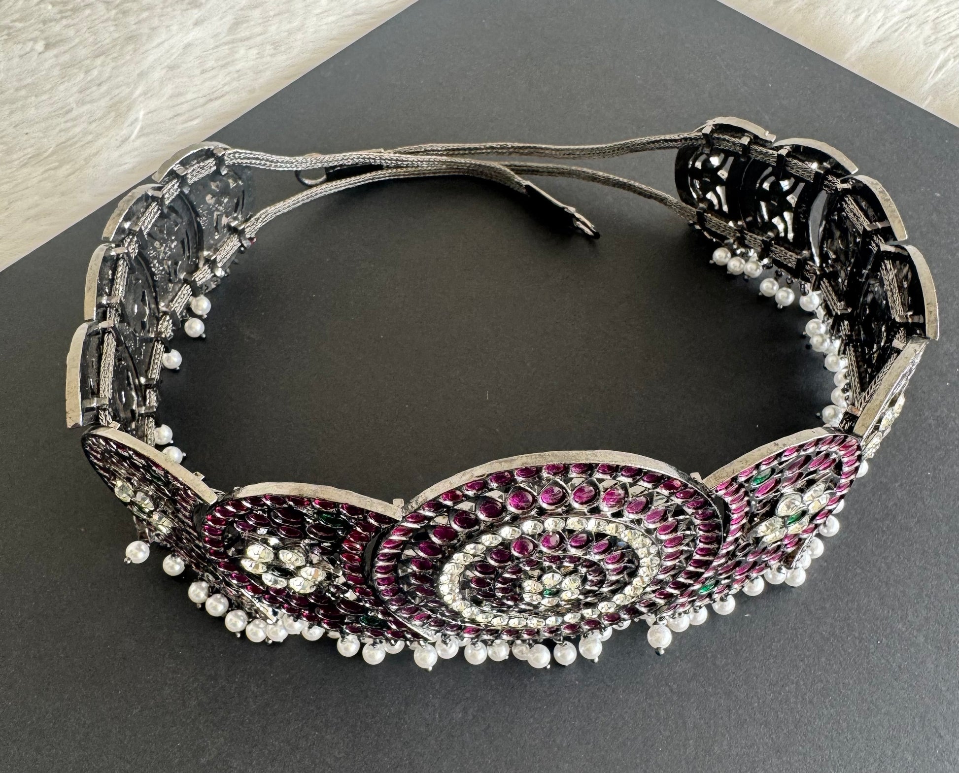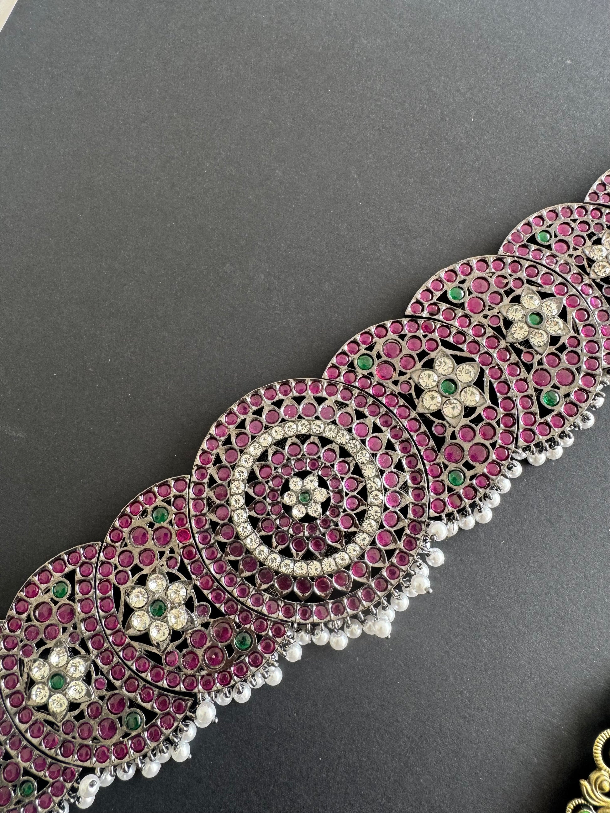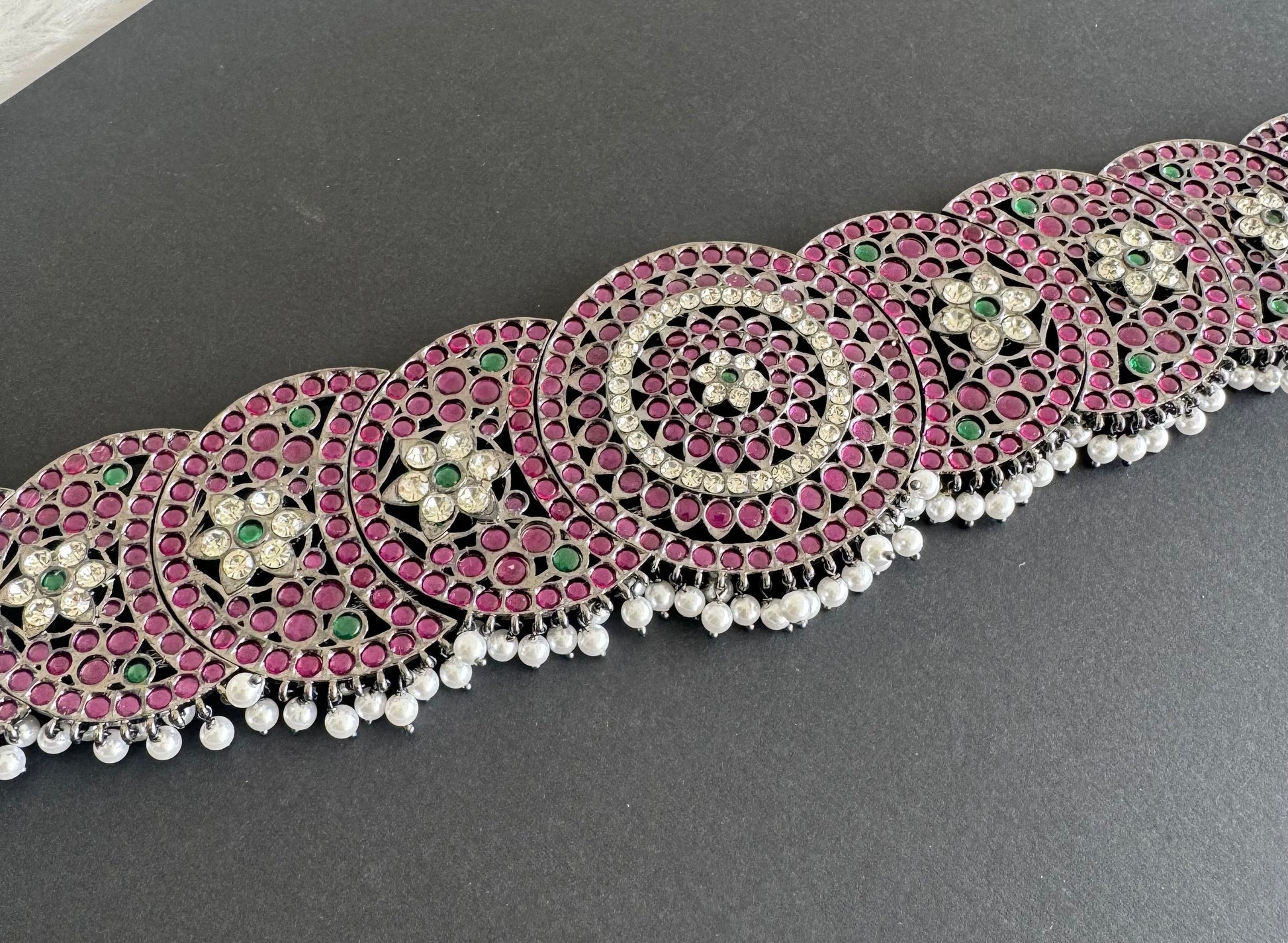 Black finish precious kemp-green-white pearl sun-moon waist band(big) dj-51996