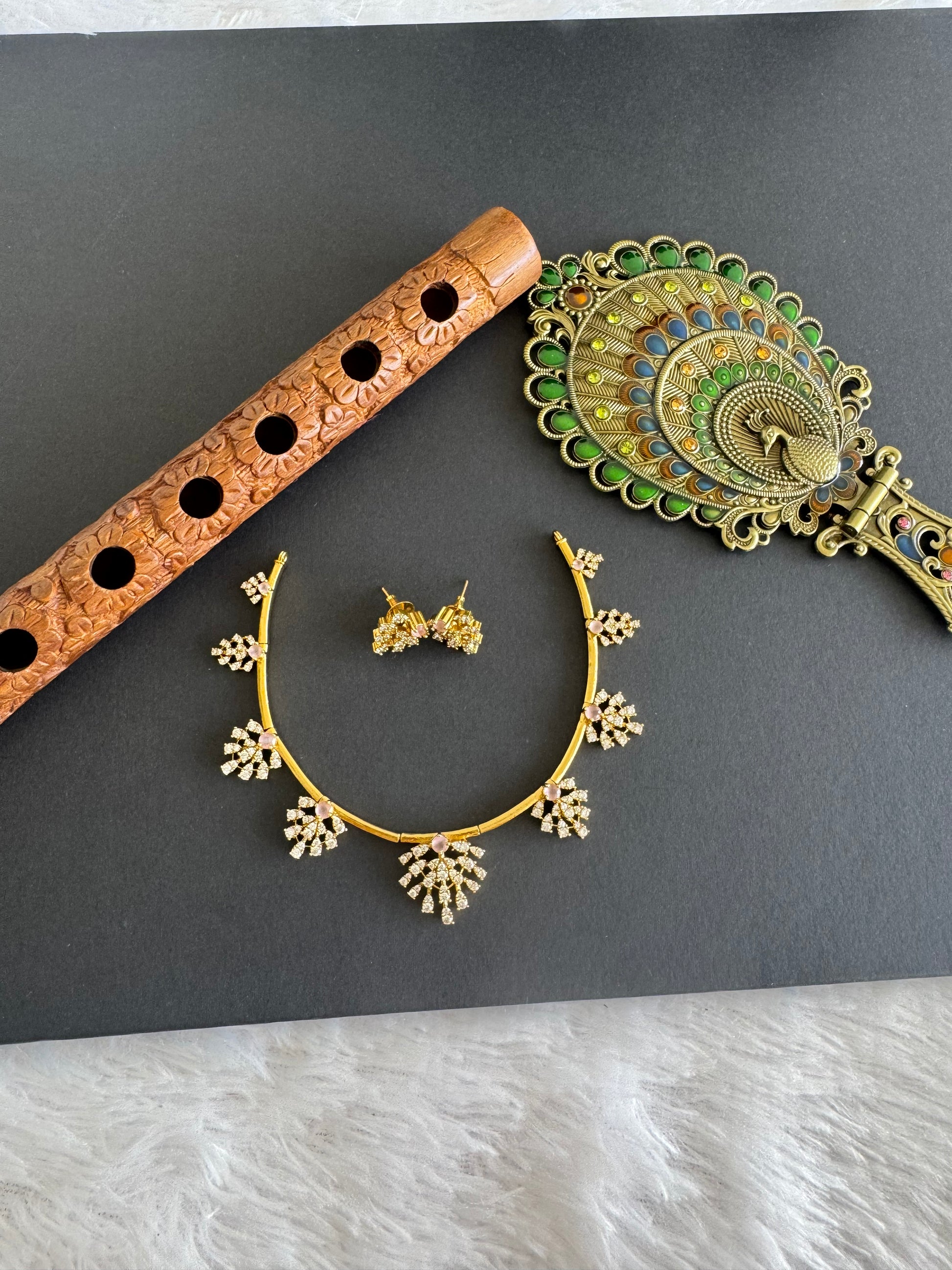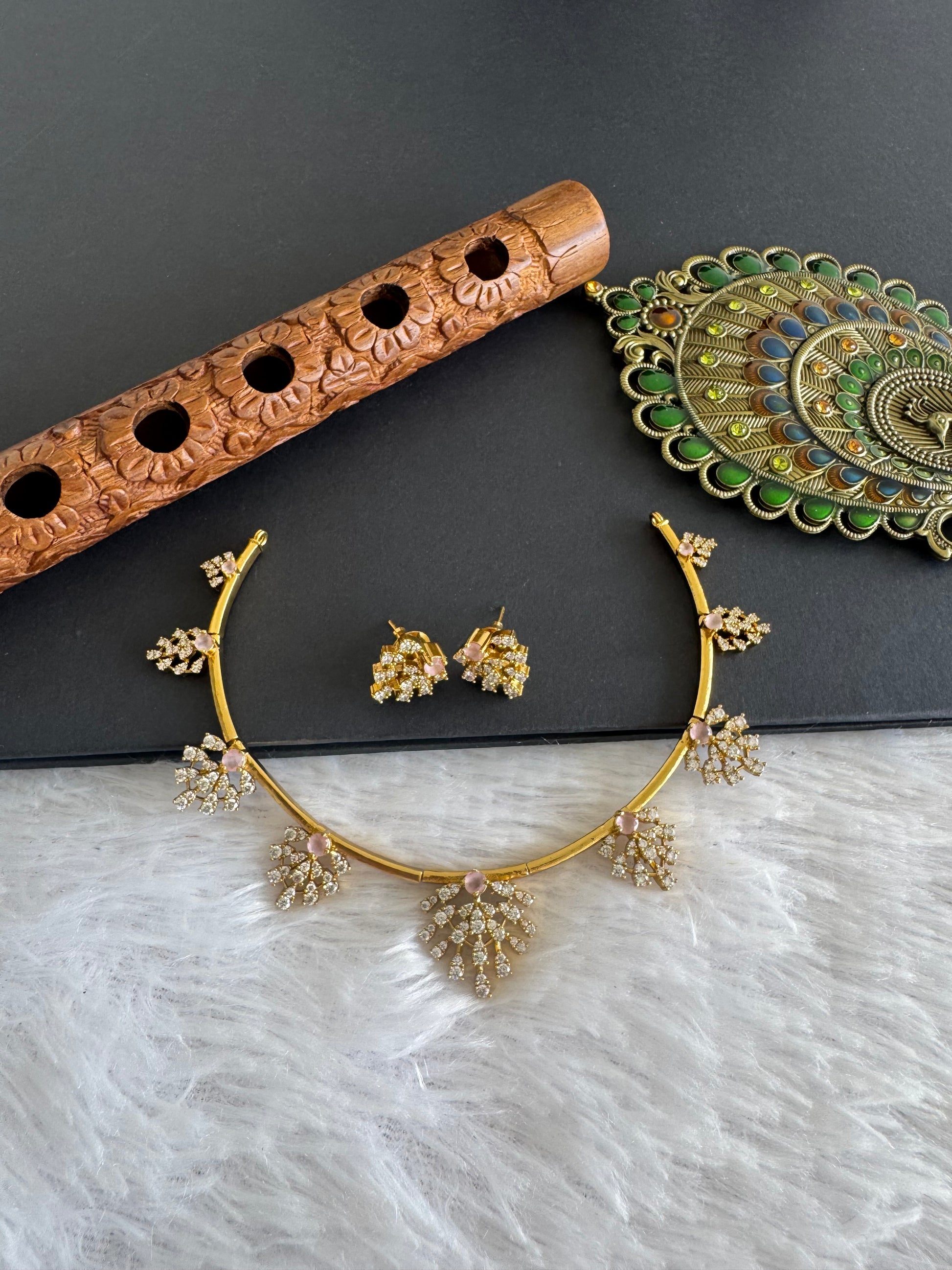 Matte finish cz white-baby pink kanti necklace set dj-52115