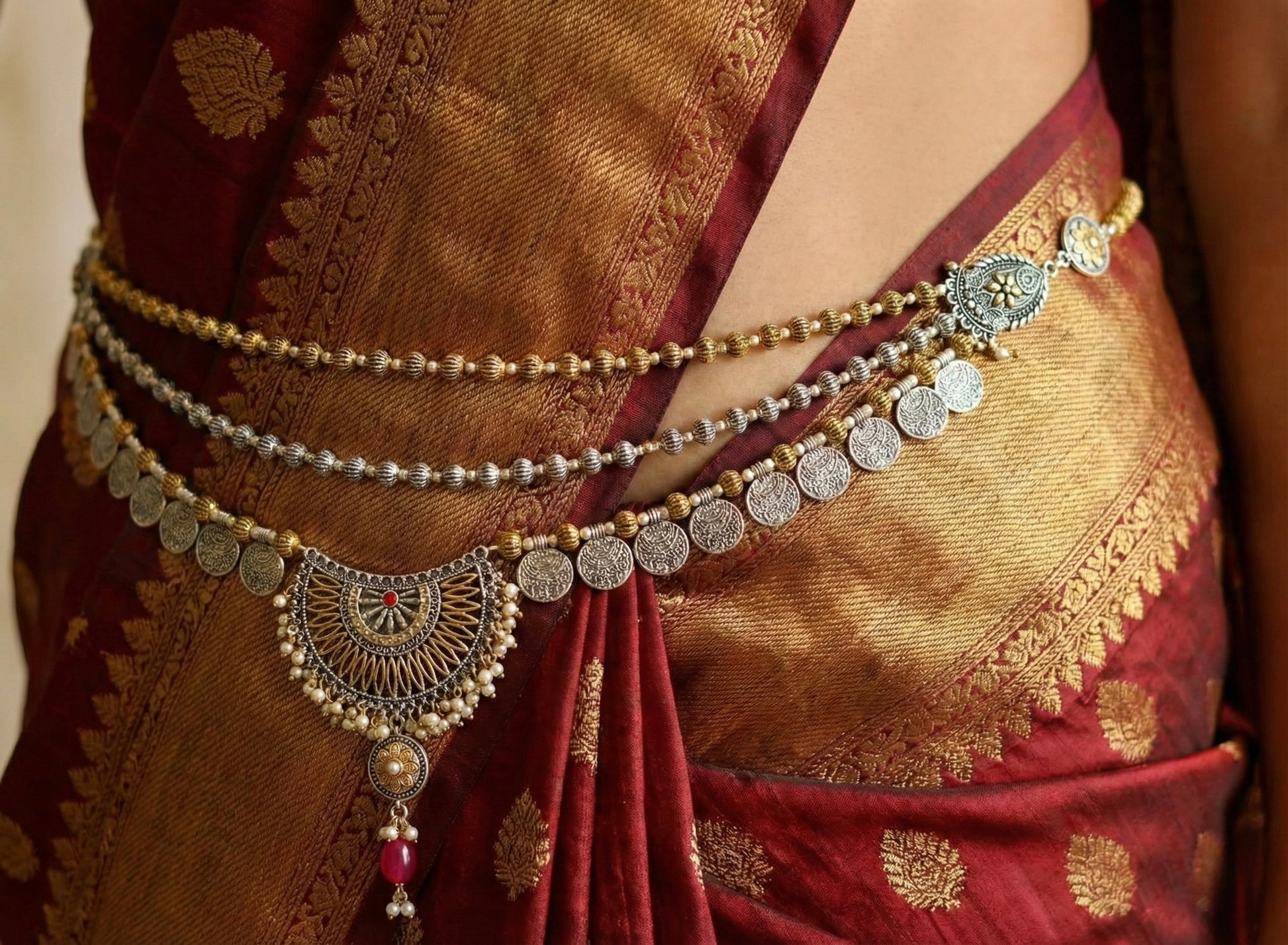 Dual tone coin designer multilayer hip chain dj-40271