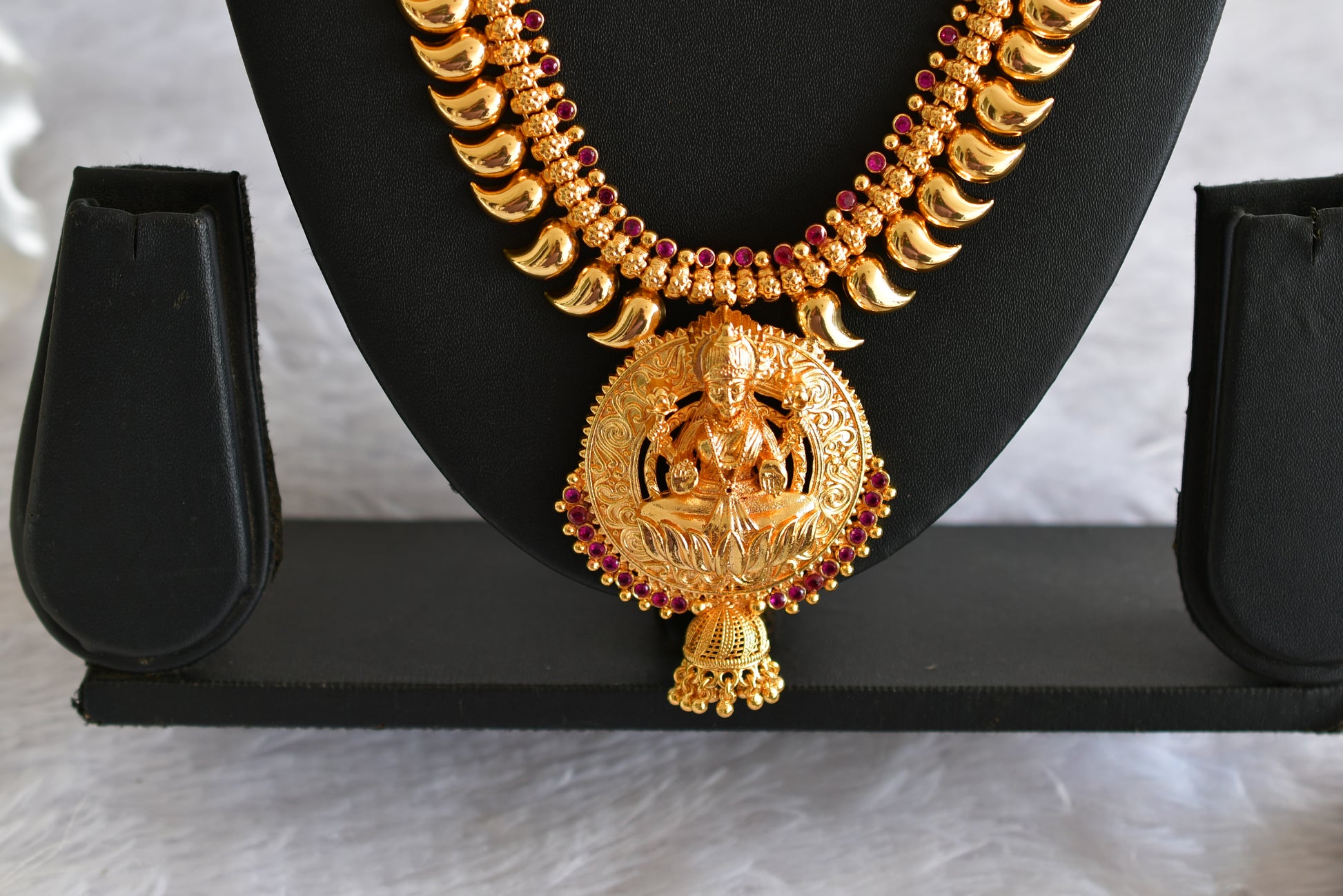 Gold look alike kerala style AD pink lakshmi mango haar dj-51954