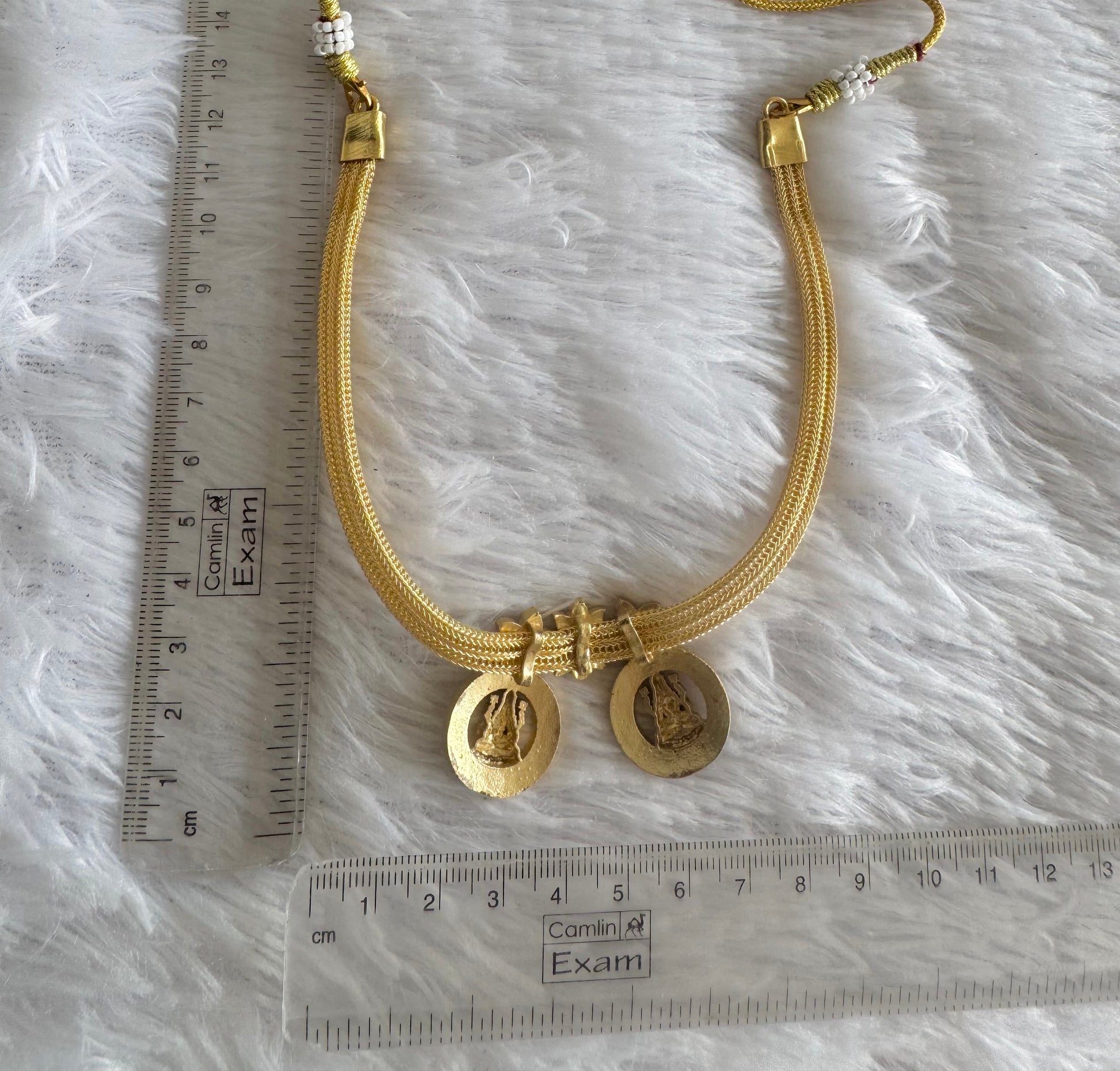 Antique gold tone pink-green kundan jadau Lakshmi necklace dj-35016