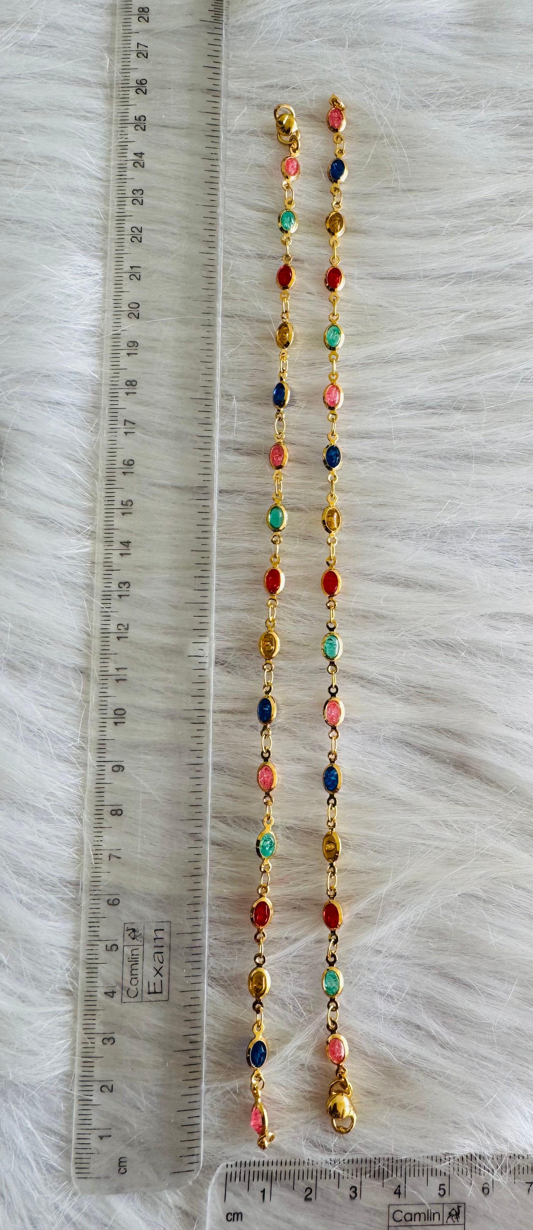Gold tone 10.5 inches multicolor stone anklets dj-51314