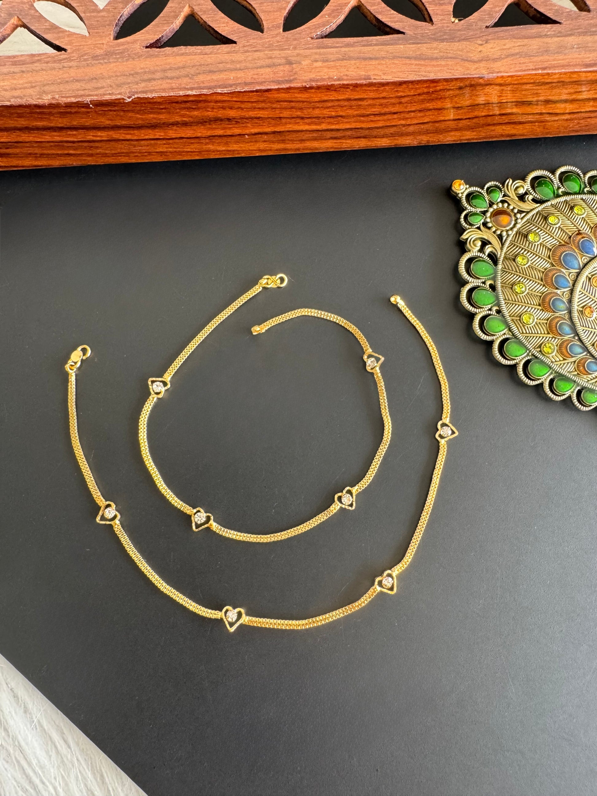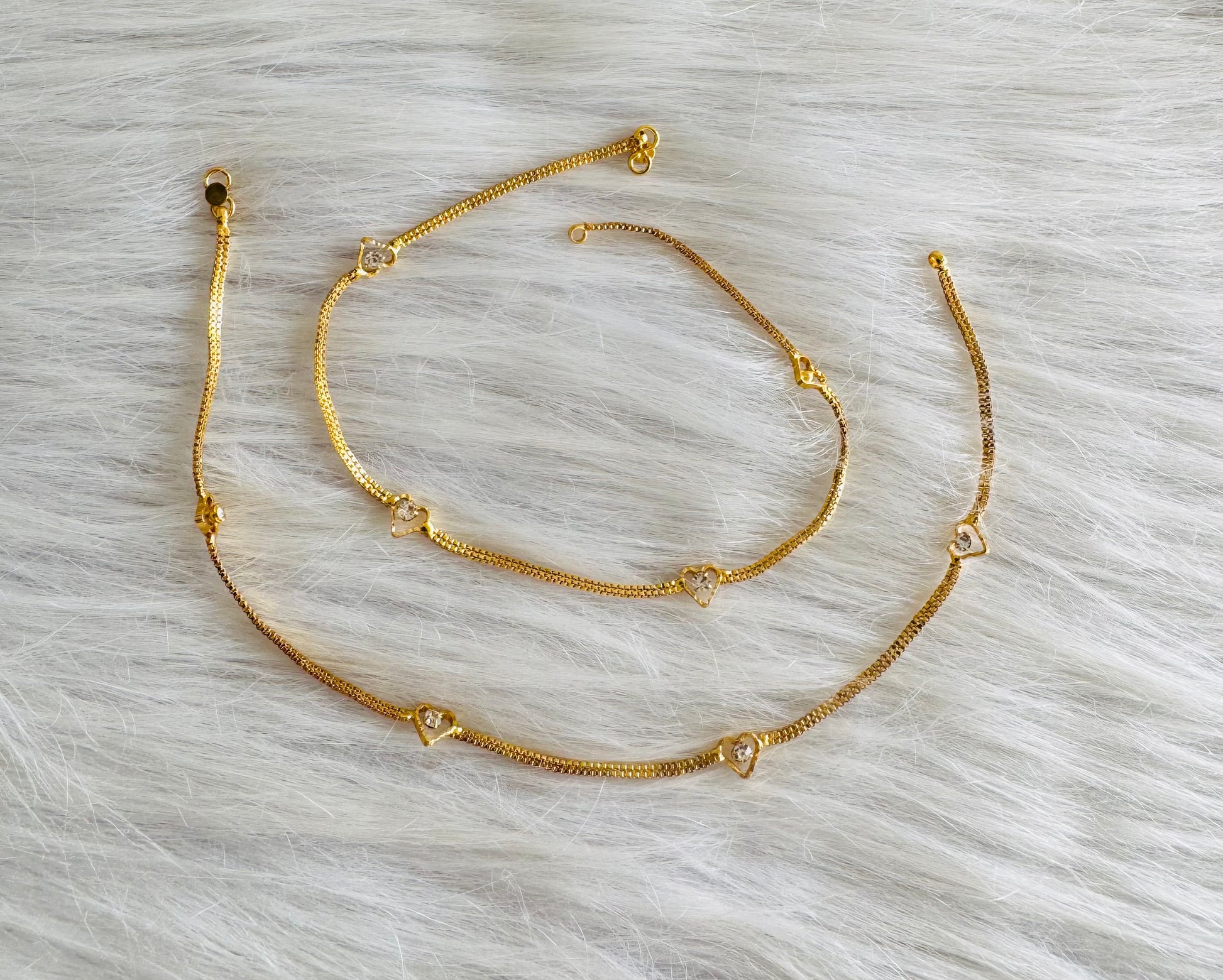 Gold tone 10.5 inches white heart anklets dj-51300