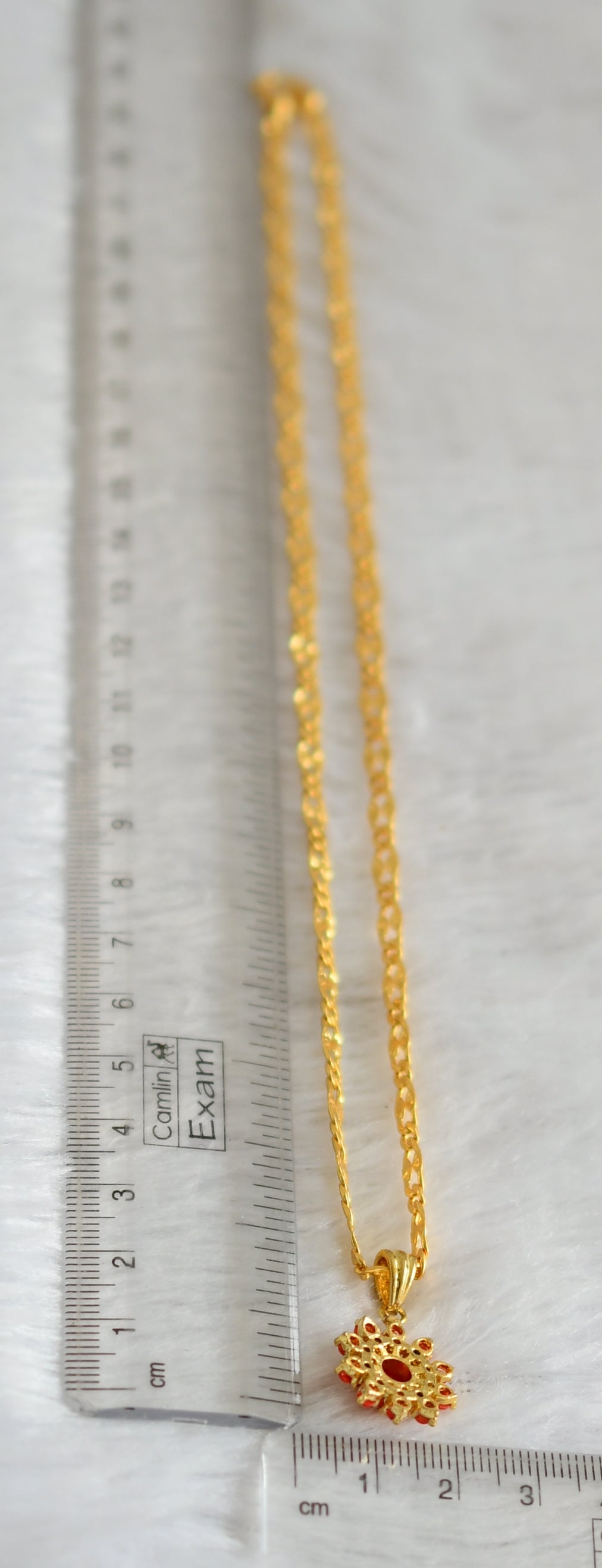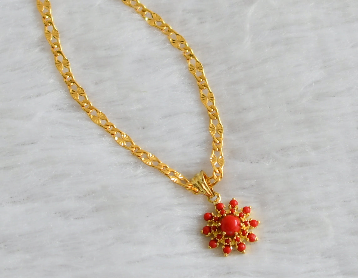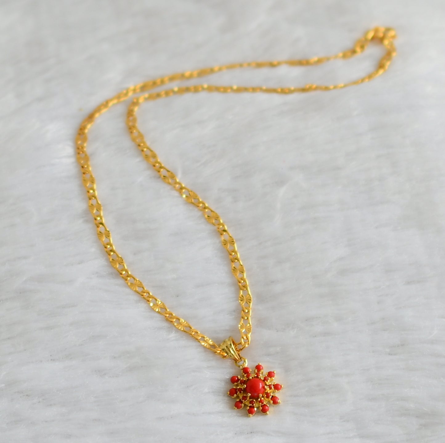 Gold tone 18 inches chain with coral stone flower pendant dj-47138