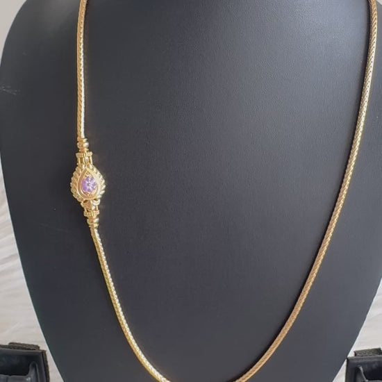 Gold tone 22 inches pink-purple meenakari reversible mugappu chain dj-51267