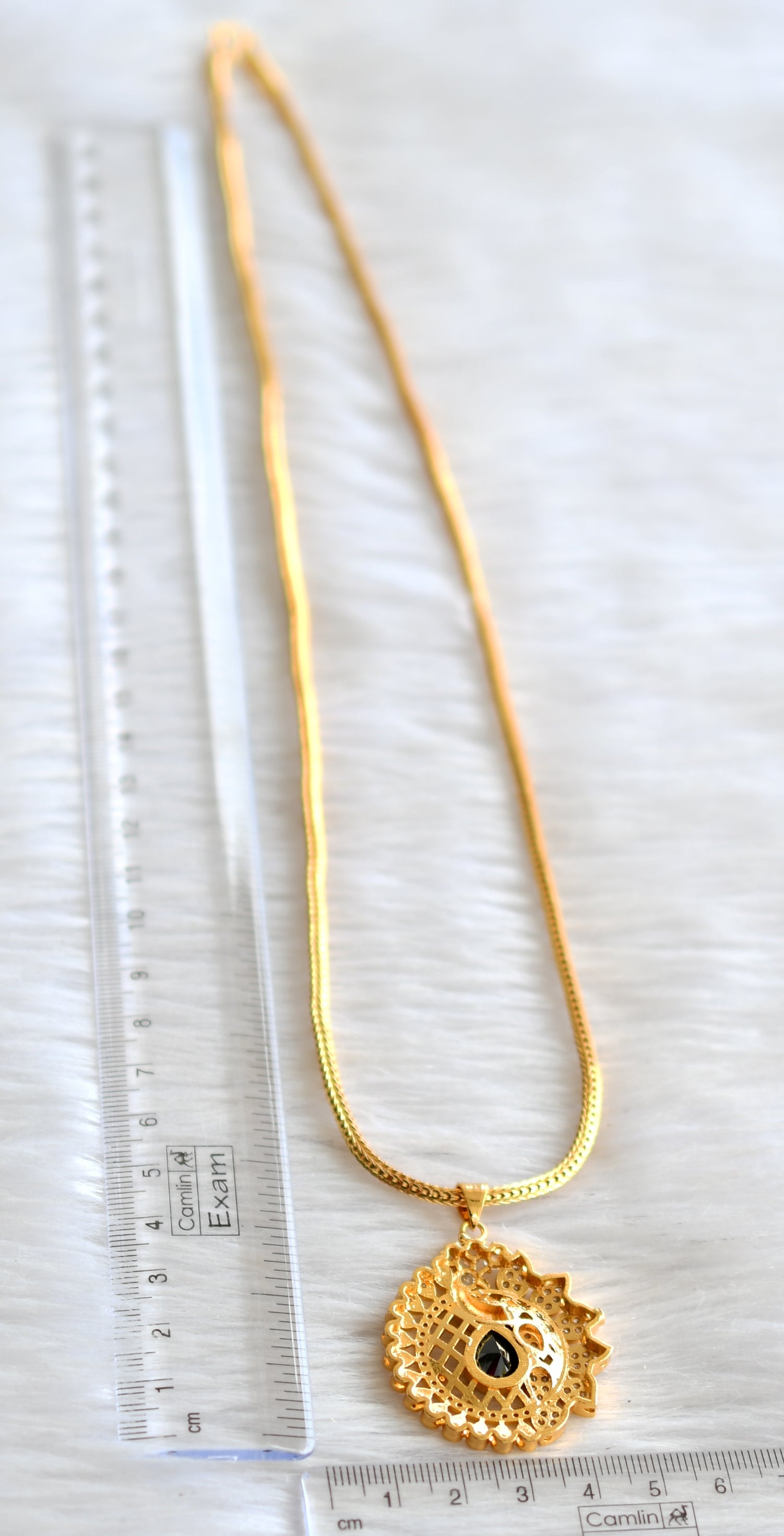 Gold tone 24 inches chain with cz black-white peacock pendant dj-43436