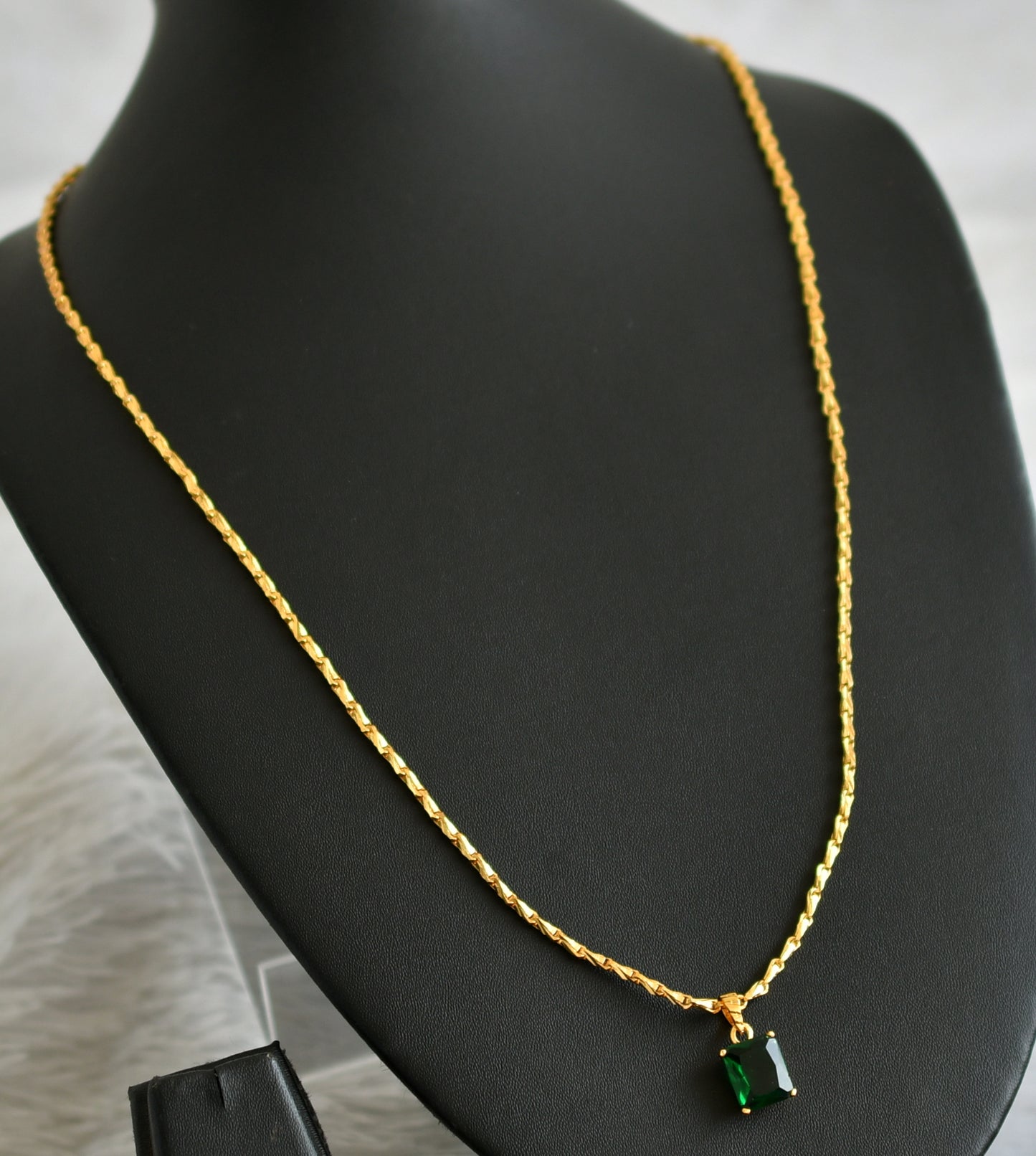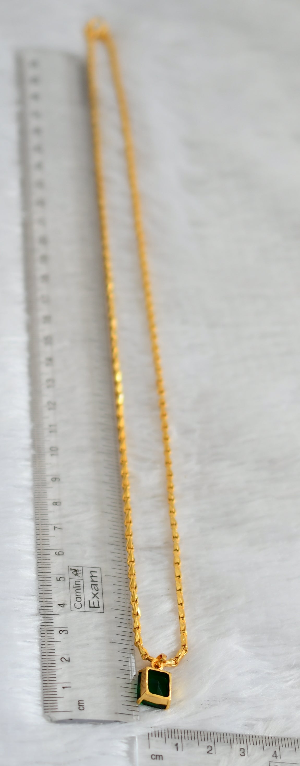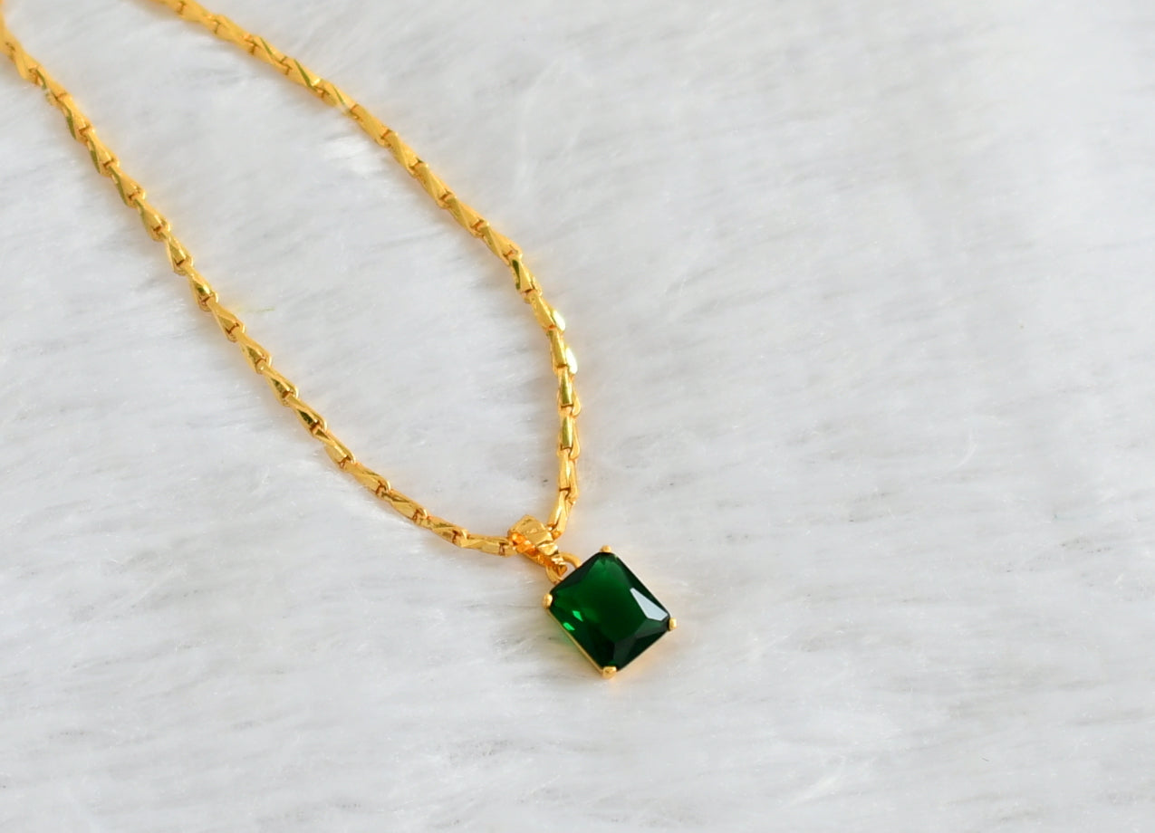 Gold tone 24 inches chain with green block stone pendant dj-47151