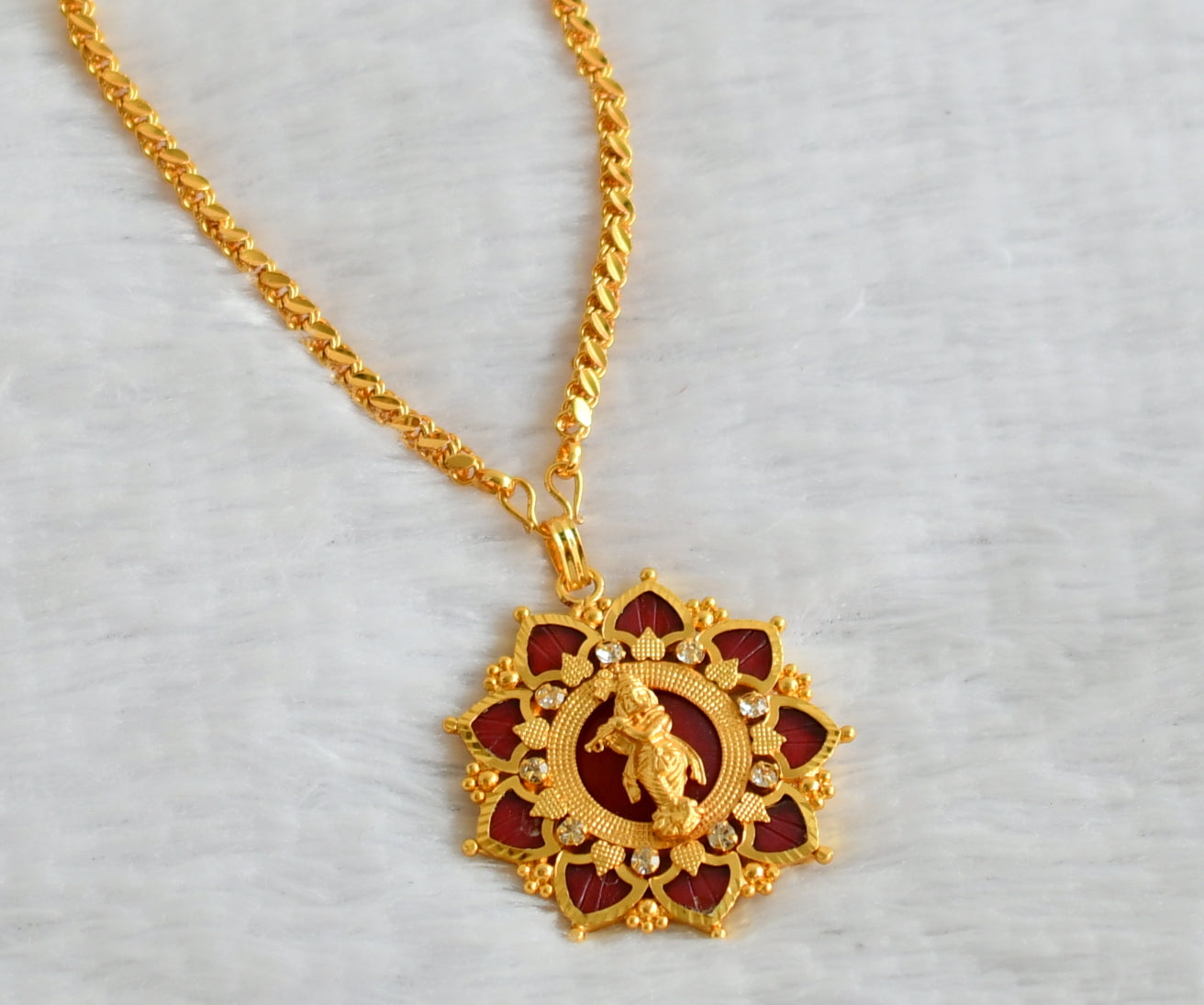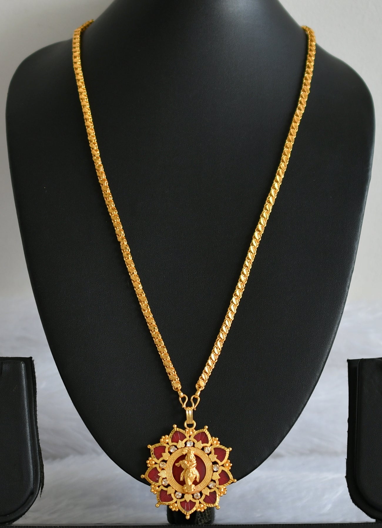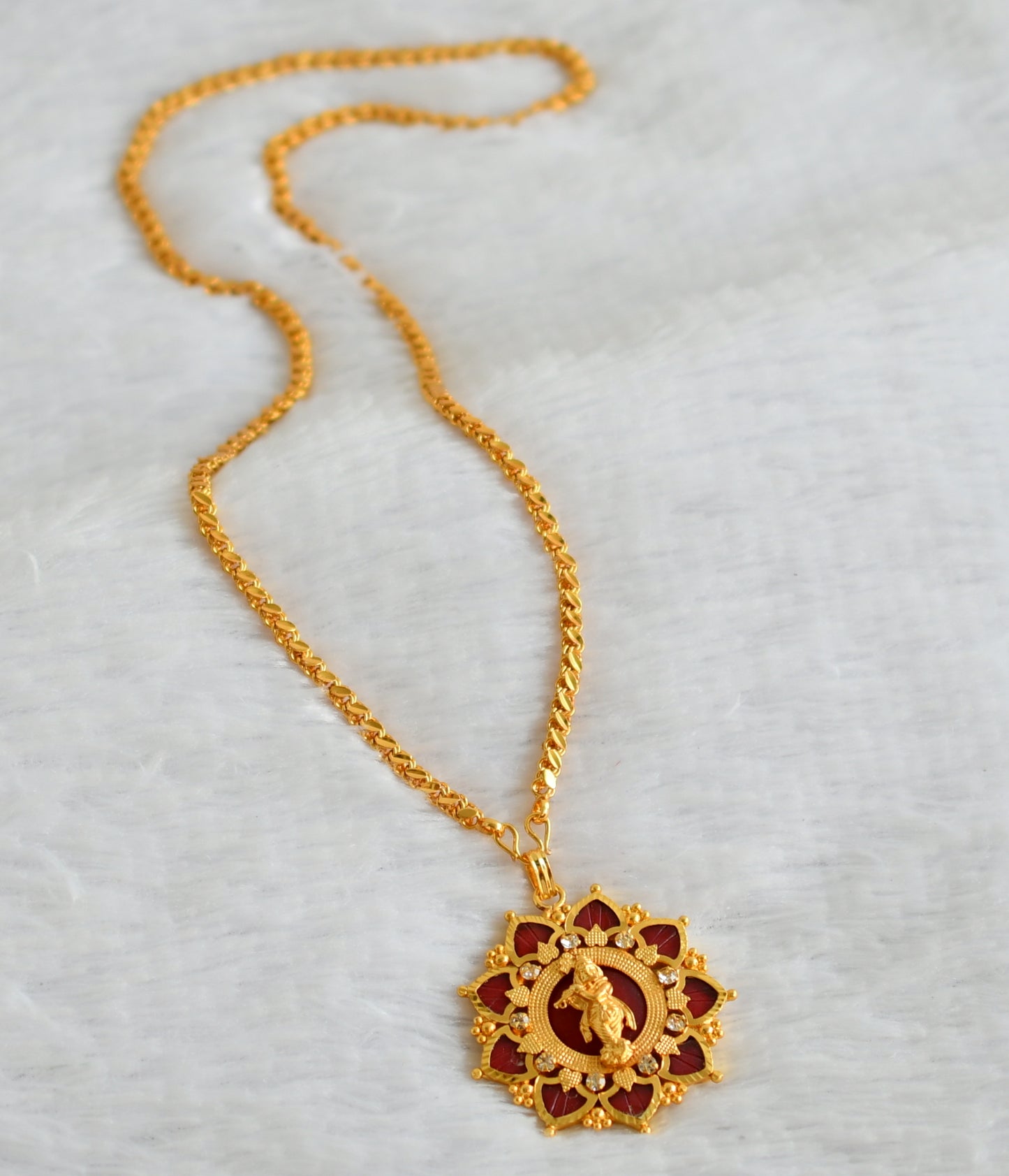 Gold tone 24 inches chain with red palakka krishna pendant dj-49406