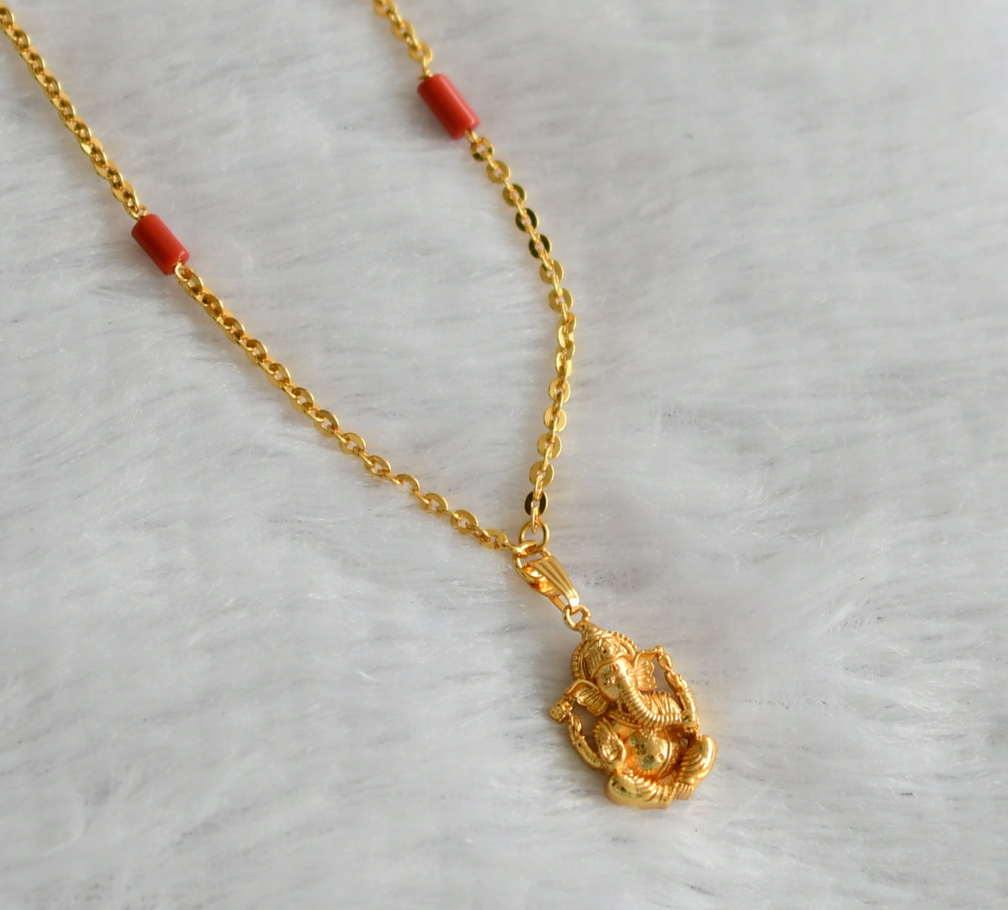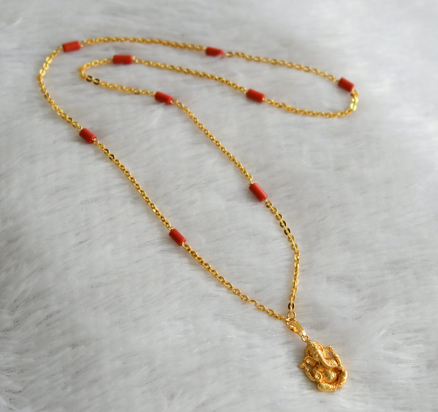 Gold tone 24 inches coral chain with ganesha pendant dj-46736