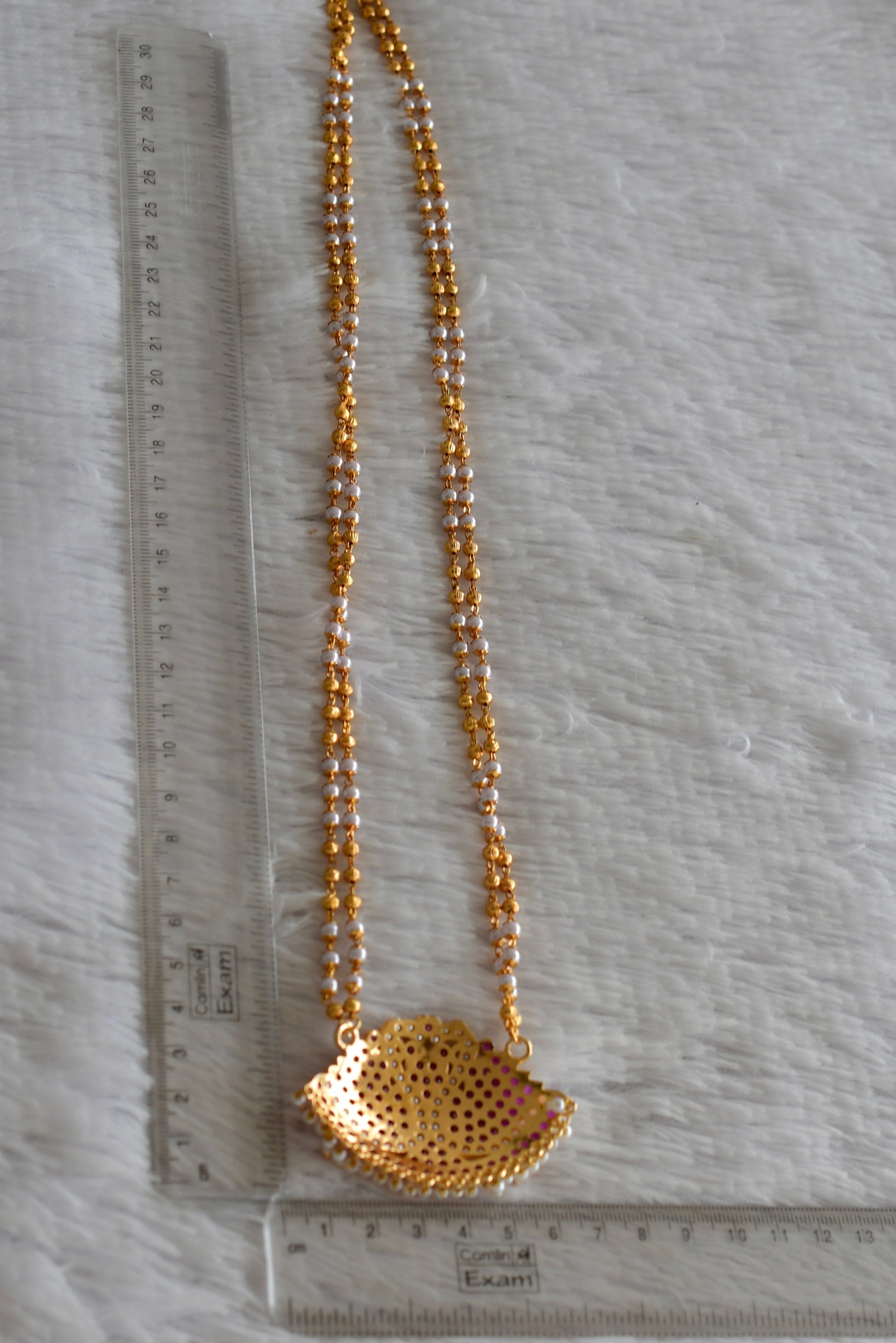 Gold tone 24 inches double layer pearl chain with ad pink-pearl swan pendant dj-51909