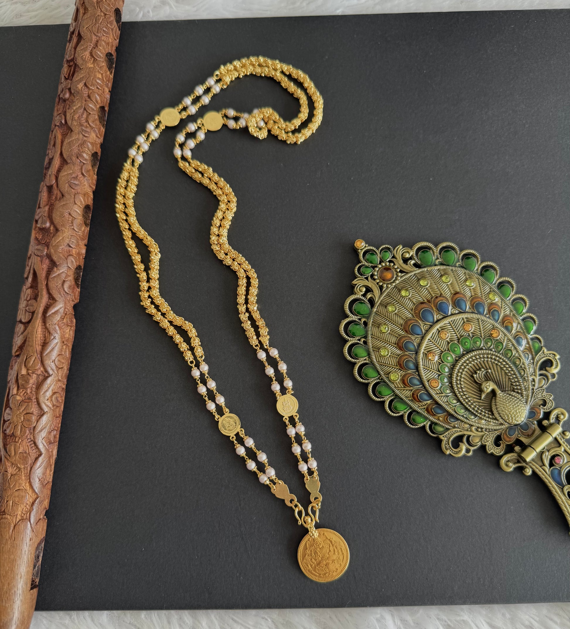 Gold tone 24 inches double layer pearl lakshmi coin chain dj-45528