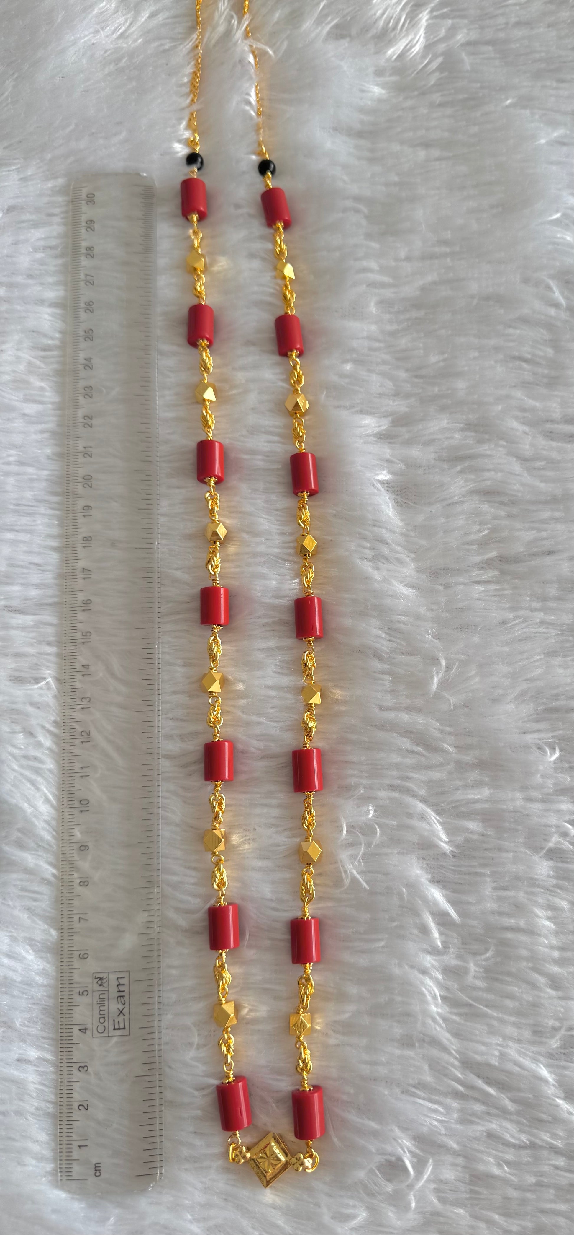 Gold tone 30 inches coral-black beaded chain dj-42635