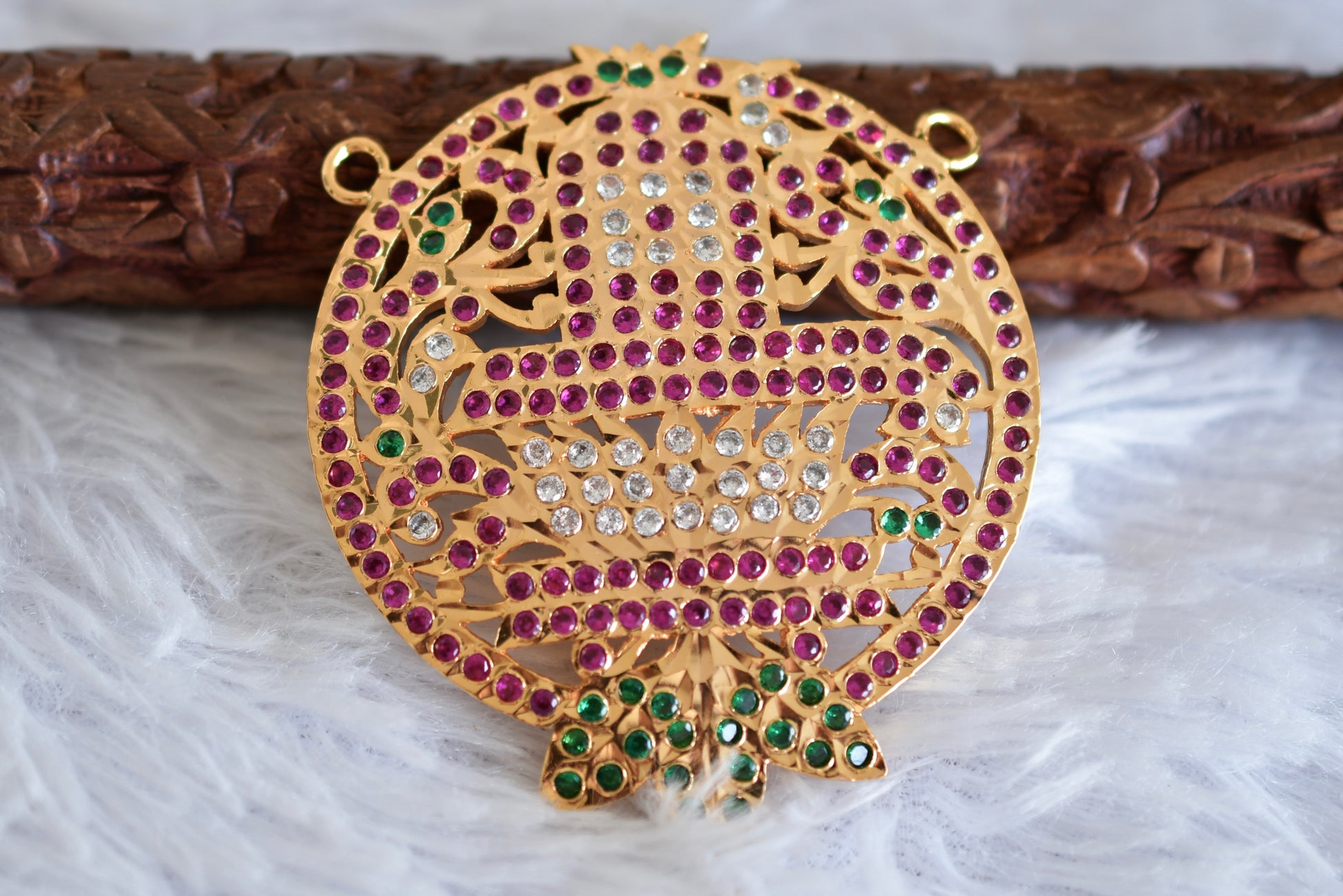 Gold tone AD pink-green shiva lingam pendant dj-52417