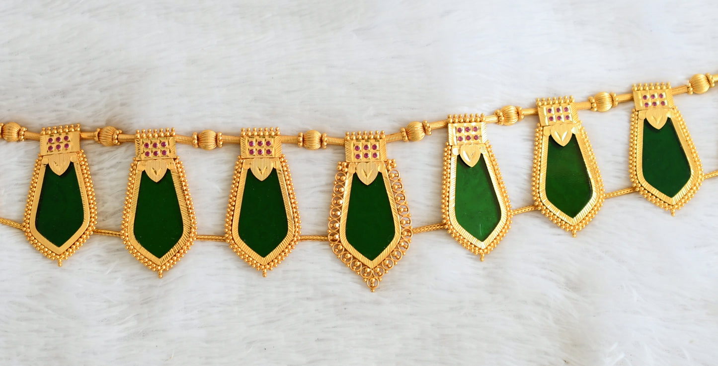 Gold tone ad pink stone green nagapadam kerala style waist band dj-50325