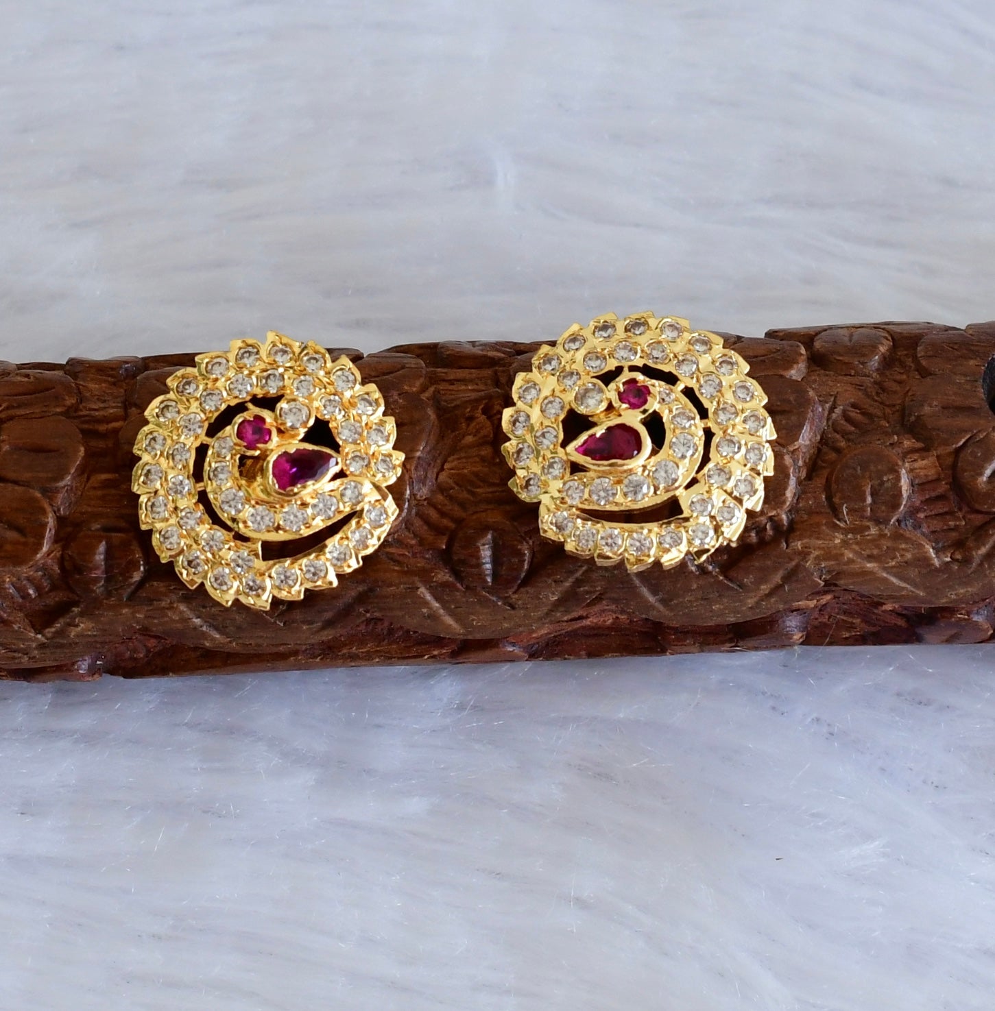 Gold tone AD pink-white south Indian peacock round stad/earrings dj-53347