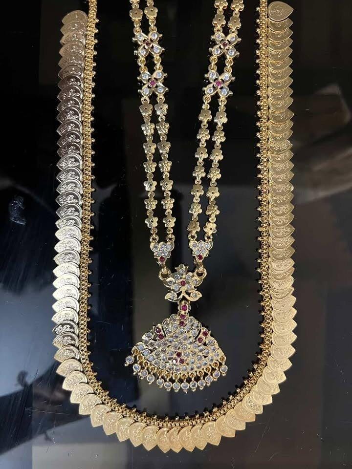 Gold tone ad ruby-white stone double layer south Indian style haar dj-42182