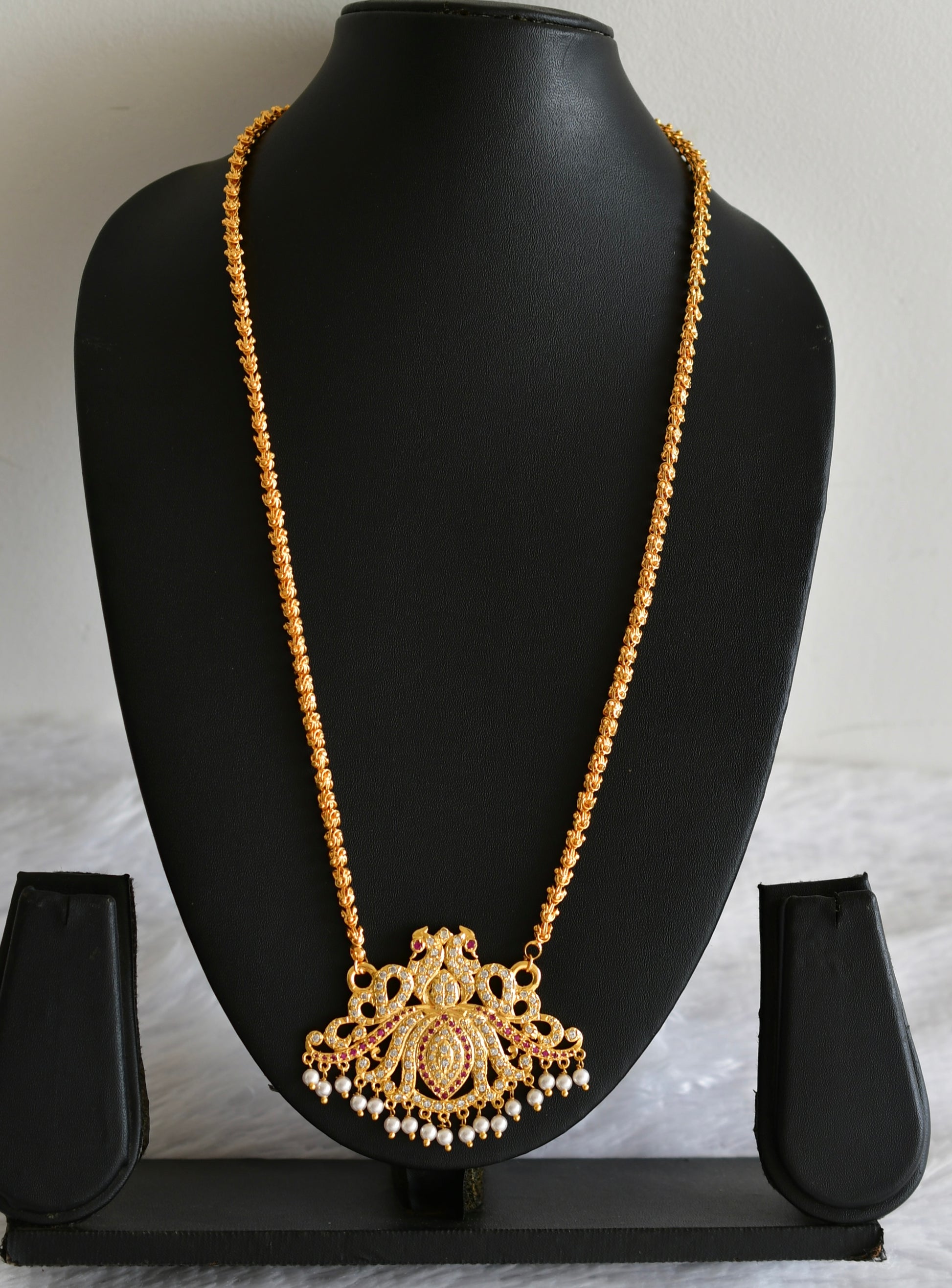Gold Tone AD White-pink Peacock Lotus Pendant Chain dj-51910