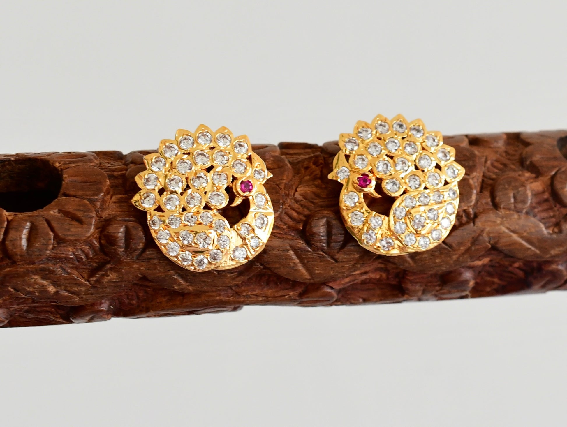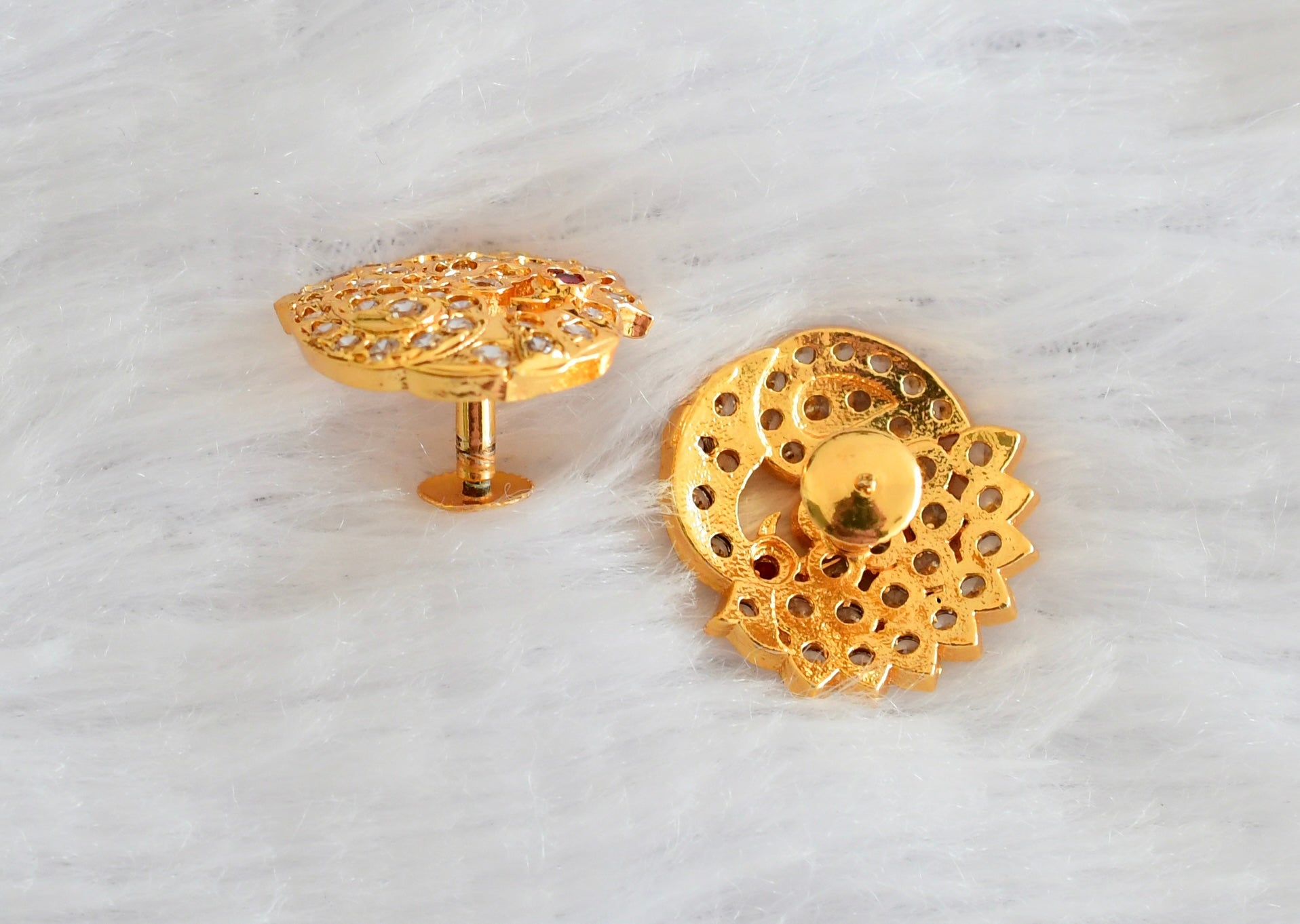 Gold tone AD white-pink south Indian peacock round stad/earrings dj-53348