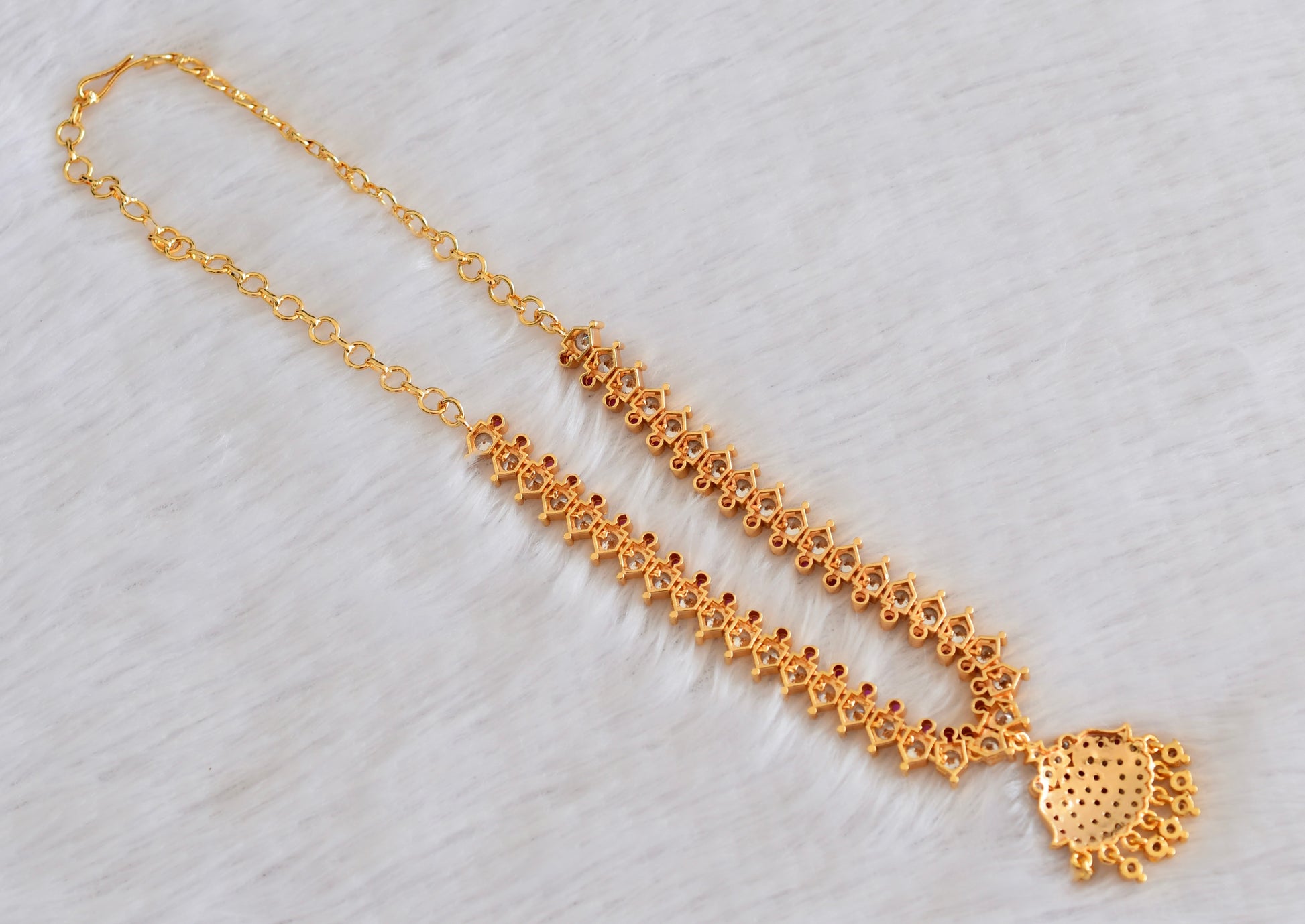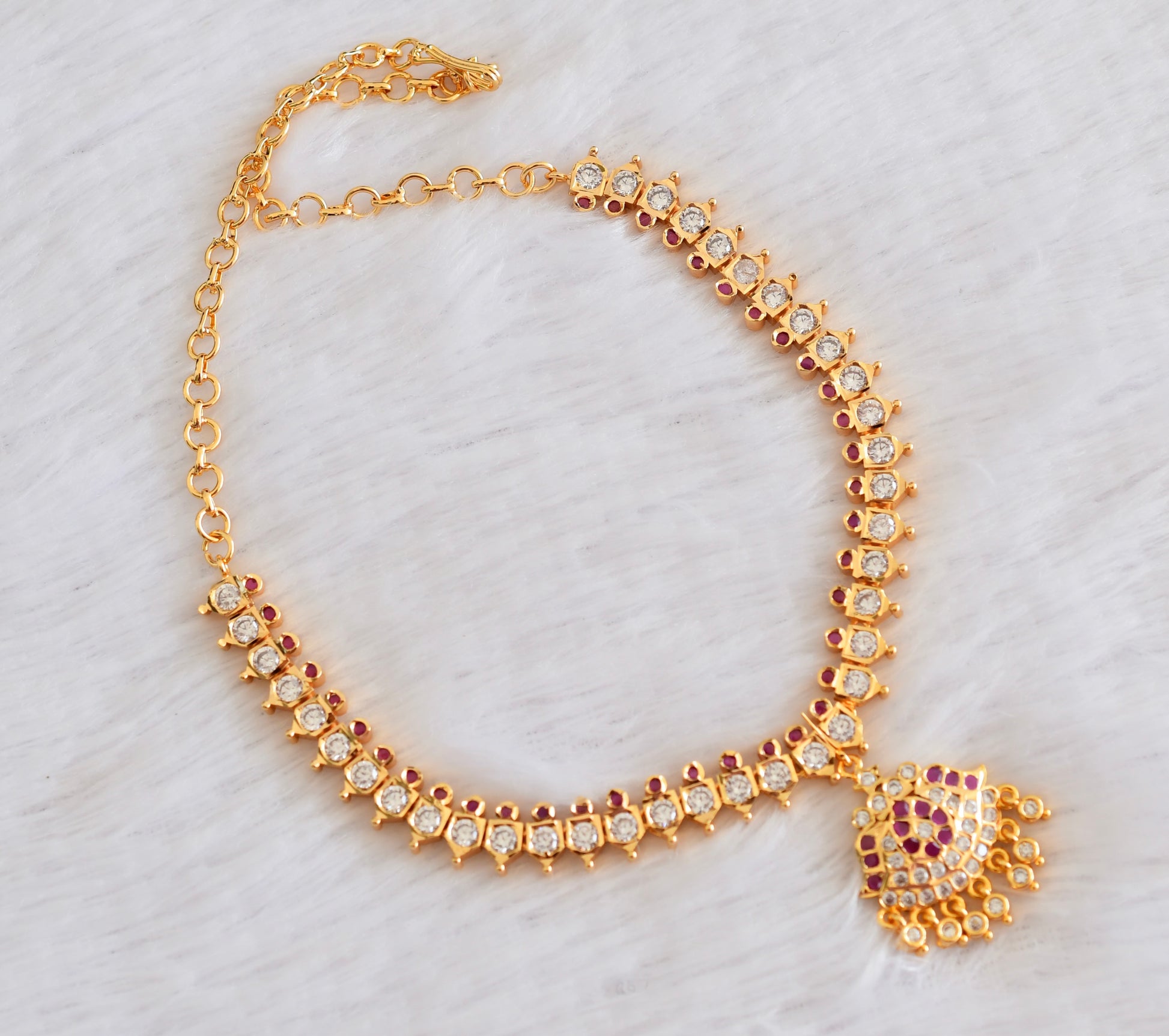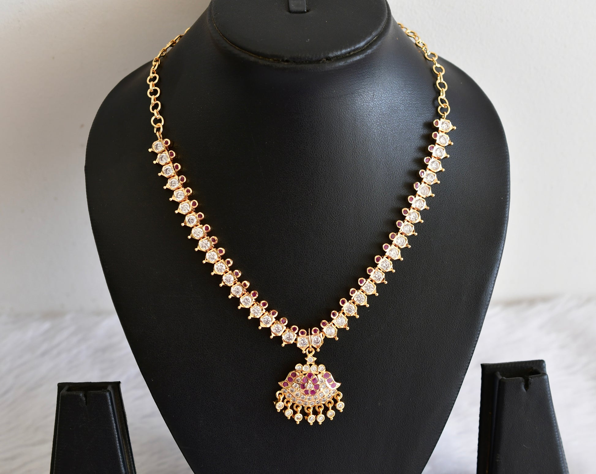 Gold tone AD white-pink stone south indian necklace dj-53331