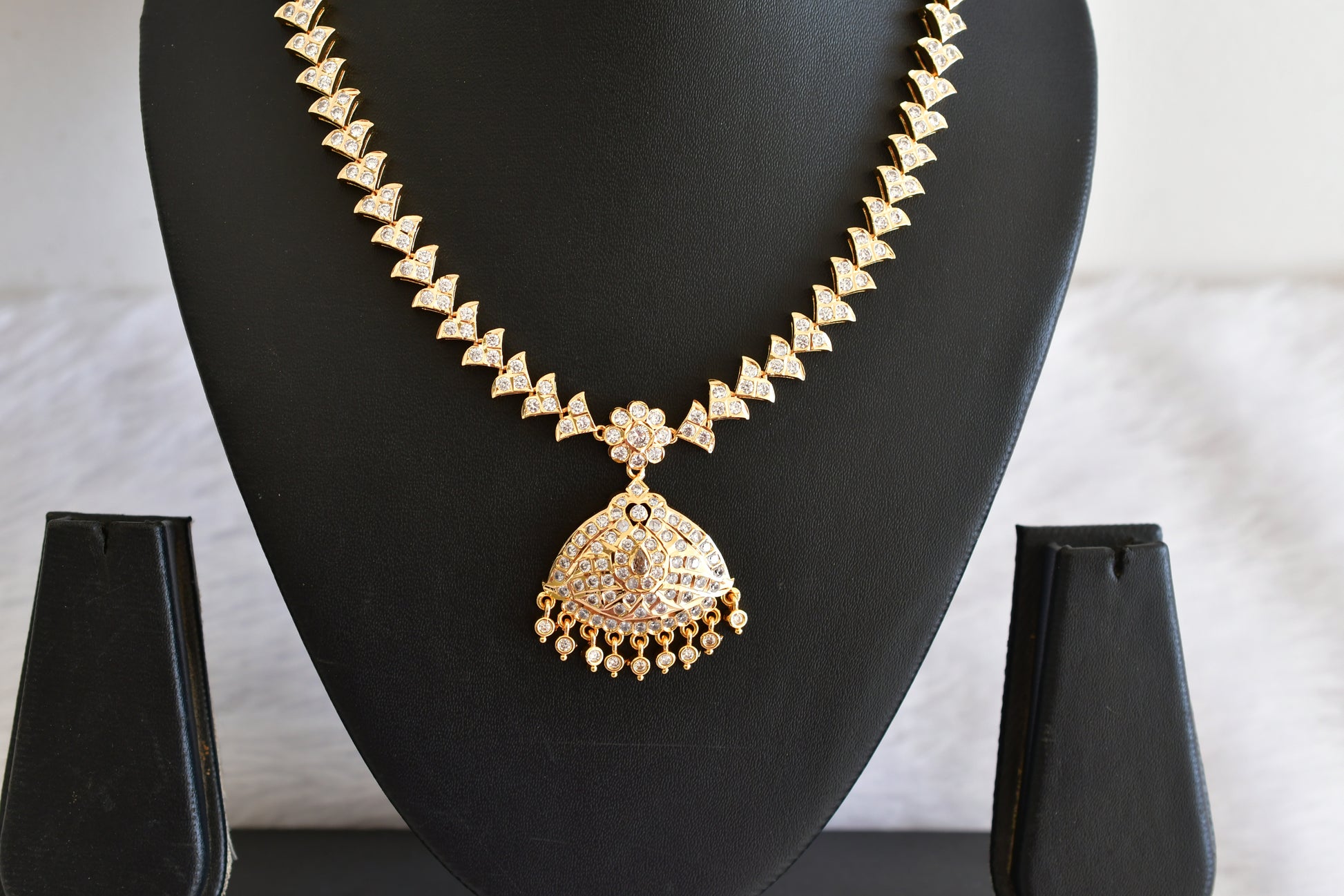 Gold tone AD white stone south indian necklace dj-53334