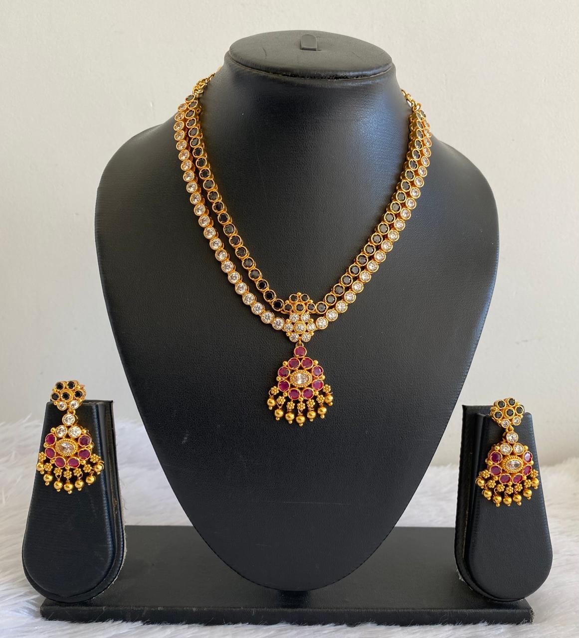 Matte finish black-white-pink double layer attigai/necklace set dj-52723
