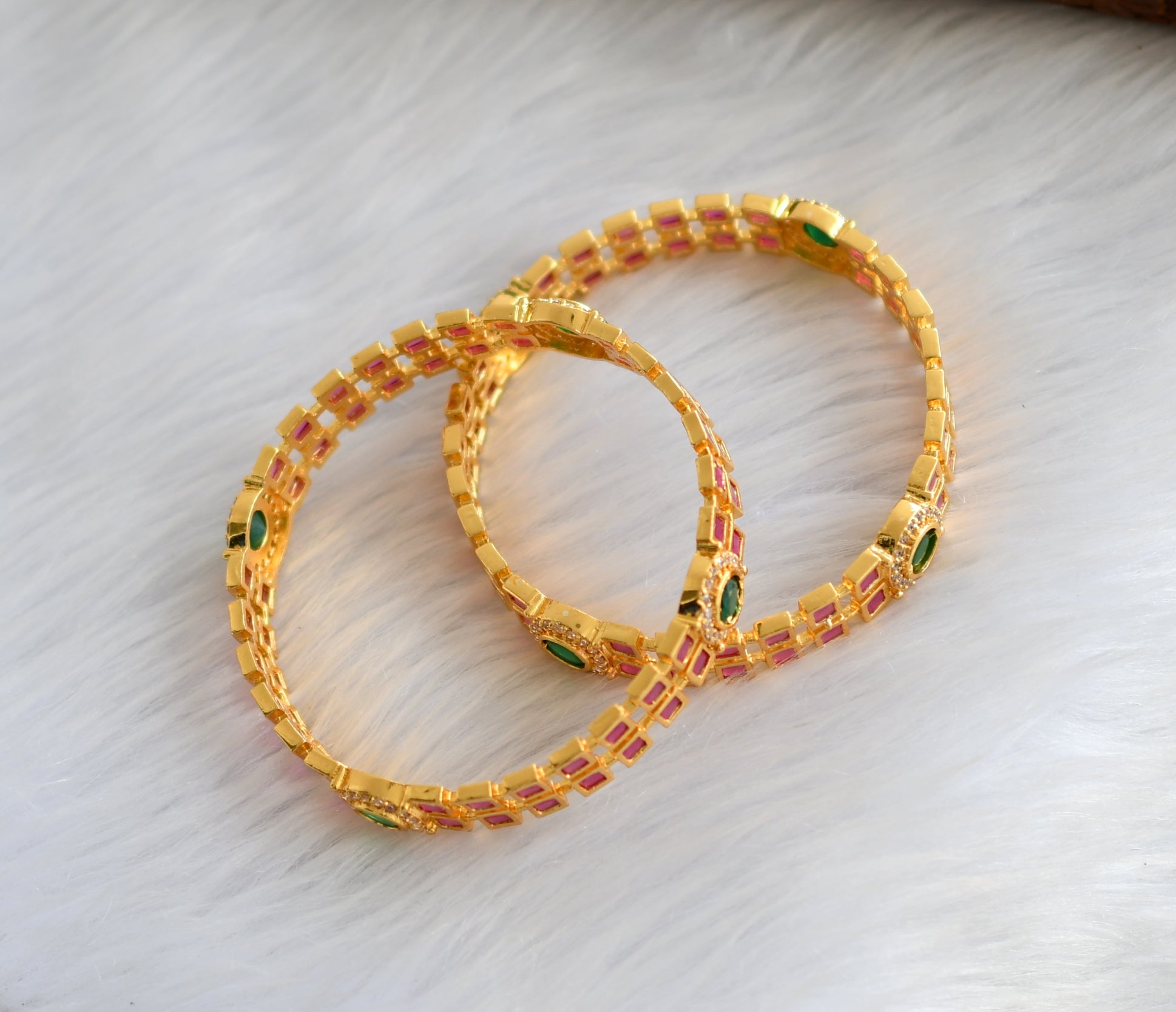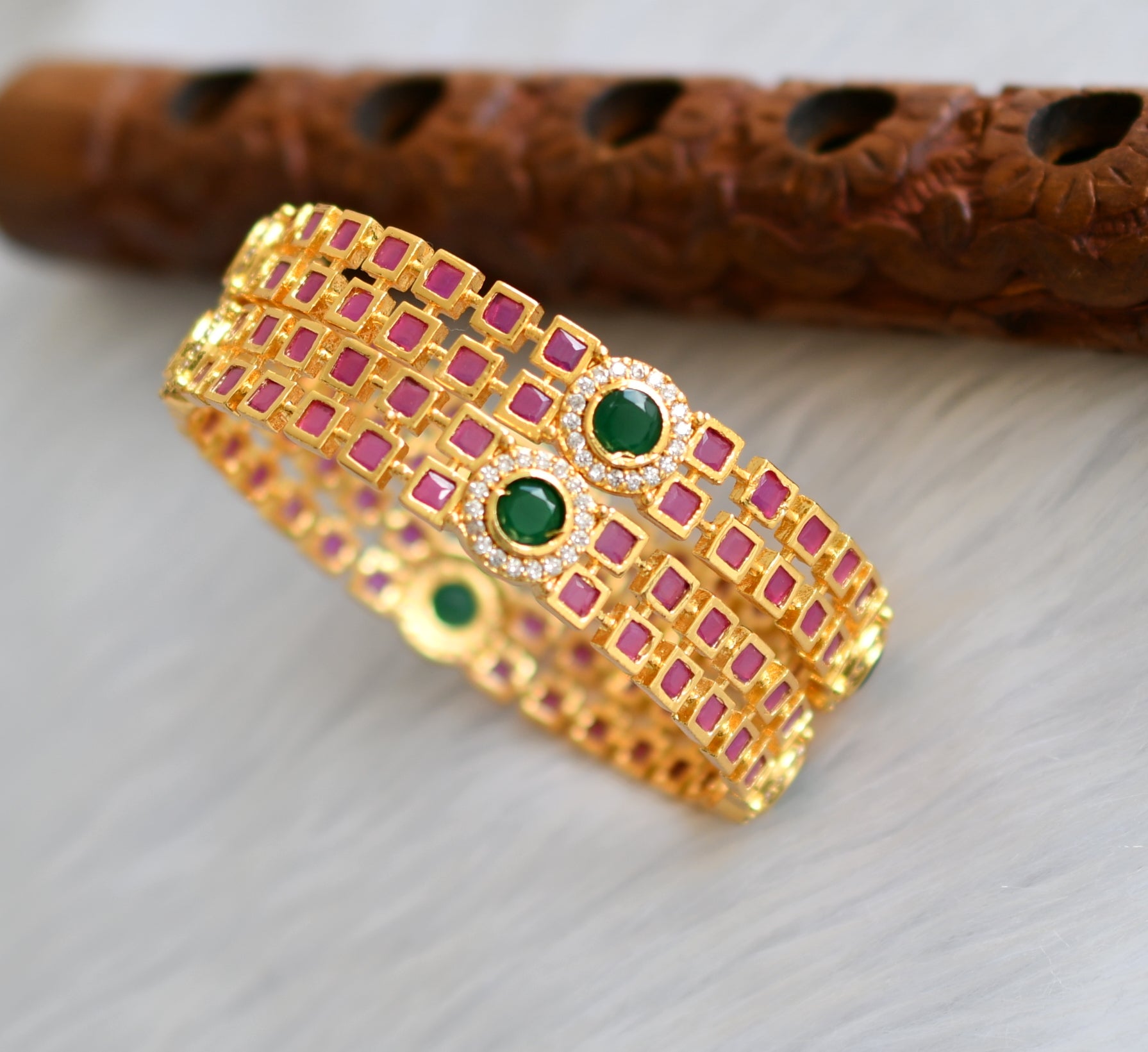 Gold tone block ruby-emerald-white bangles (2.8) dj-39853