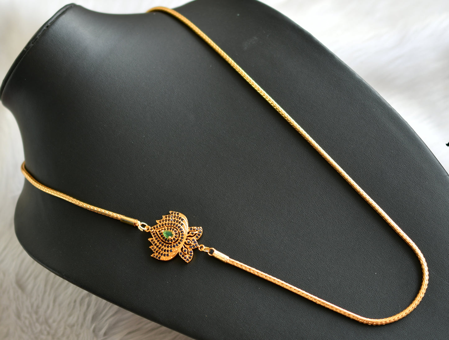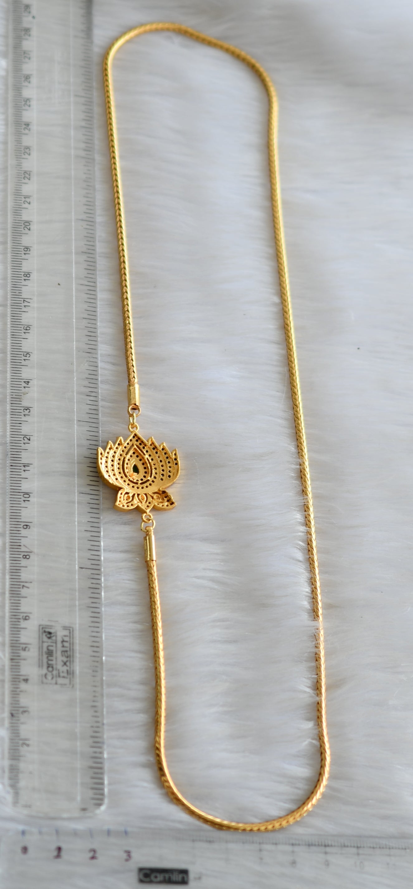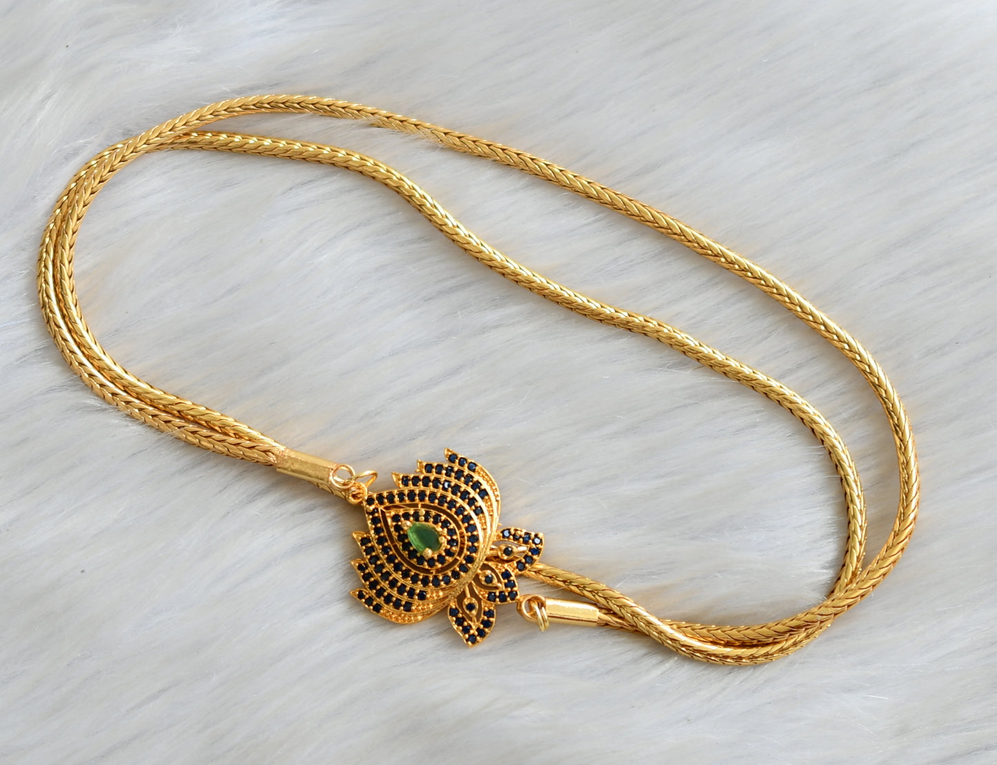 Gold tone blue-green stone Lotus mugappu chain dj-42337