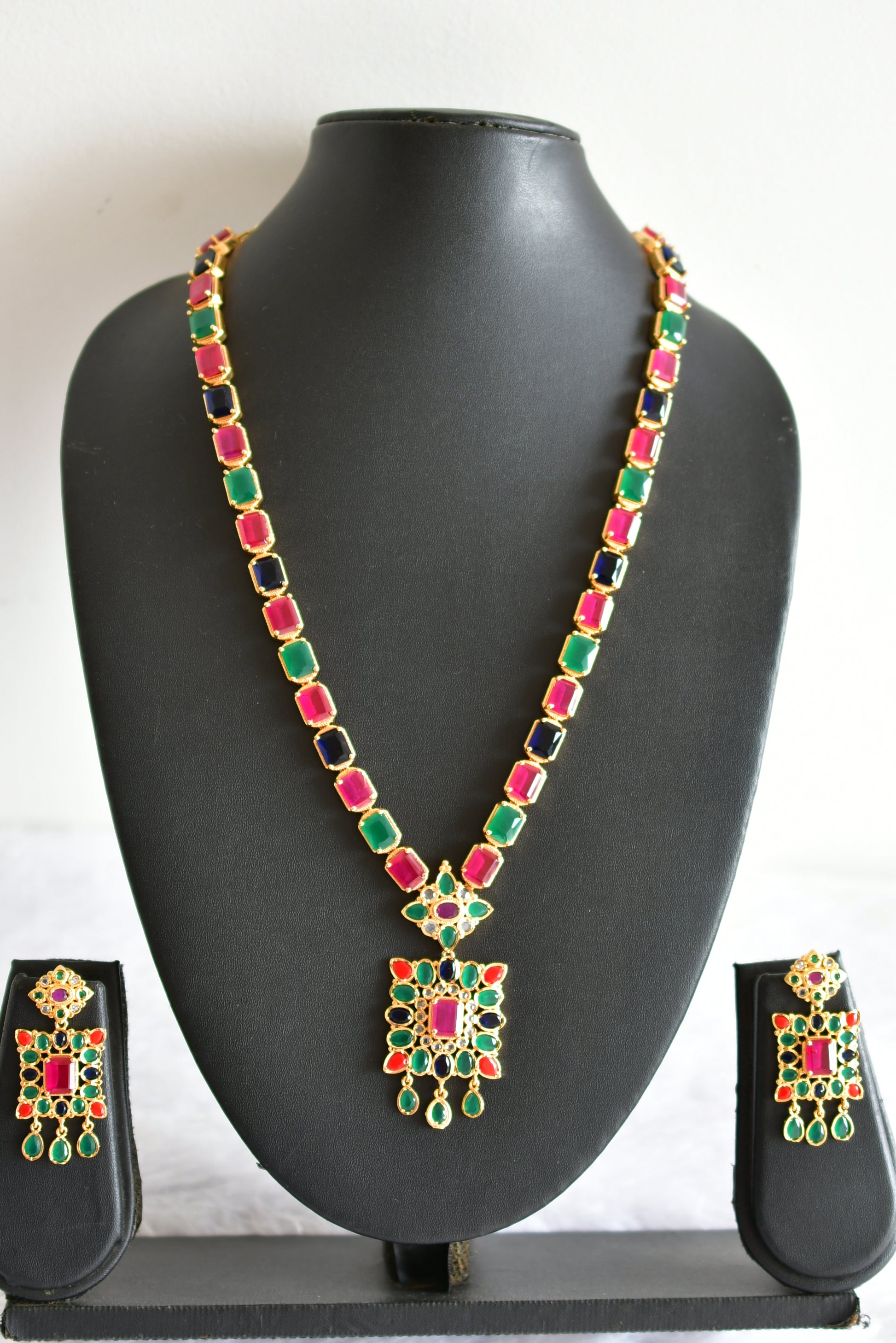 Gold tone Cz Navarathna block stone haar set dj-51950