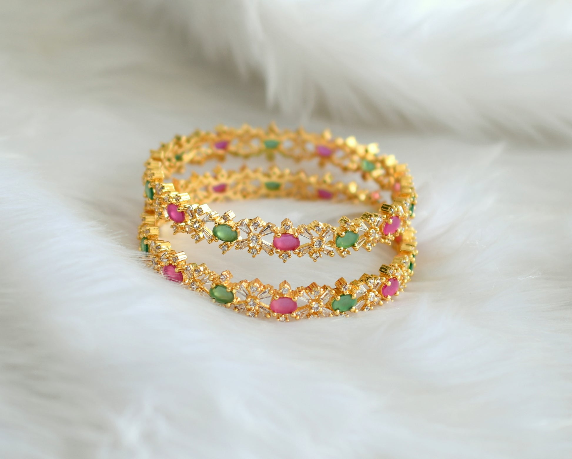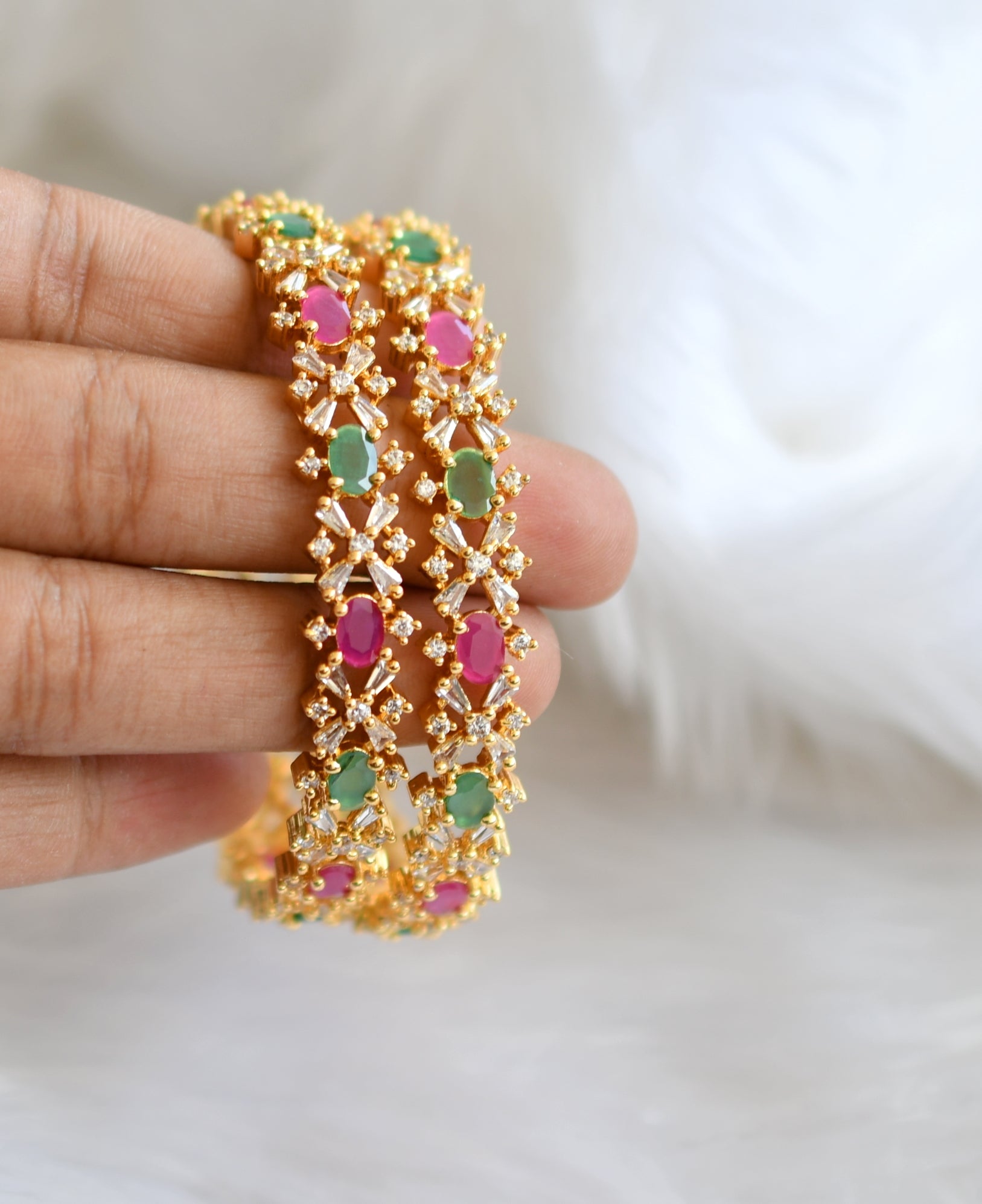 Gold tone cz ruby-emerald bangles (2.10) dj-39056