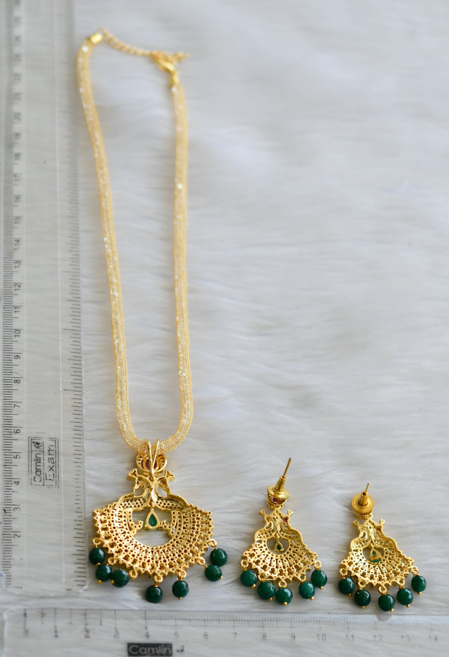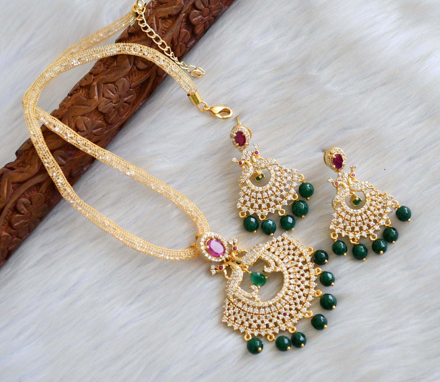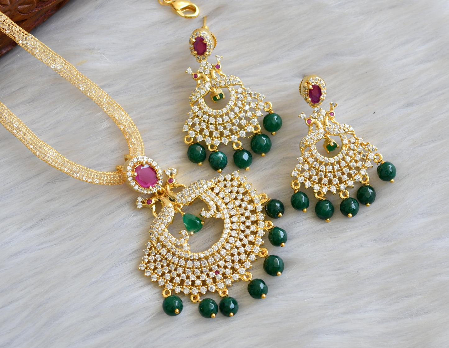 Gold tone cz white-ruby-green agates peacock pendant set dj-42371