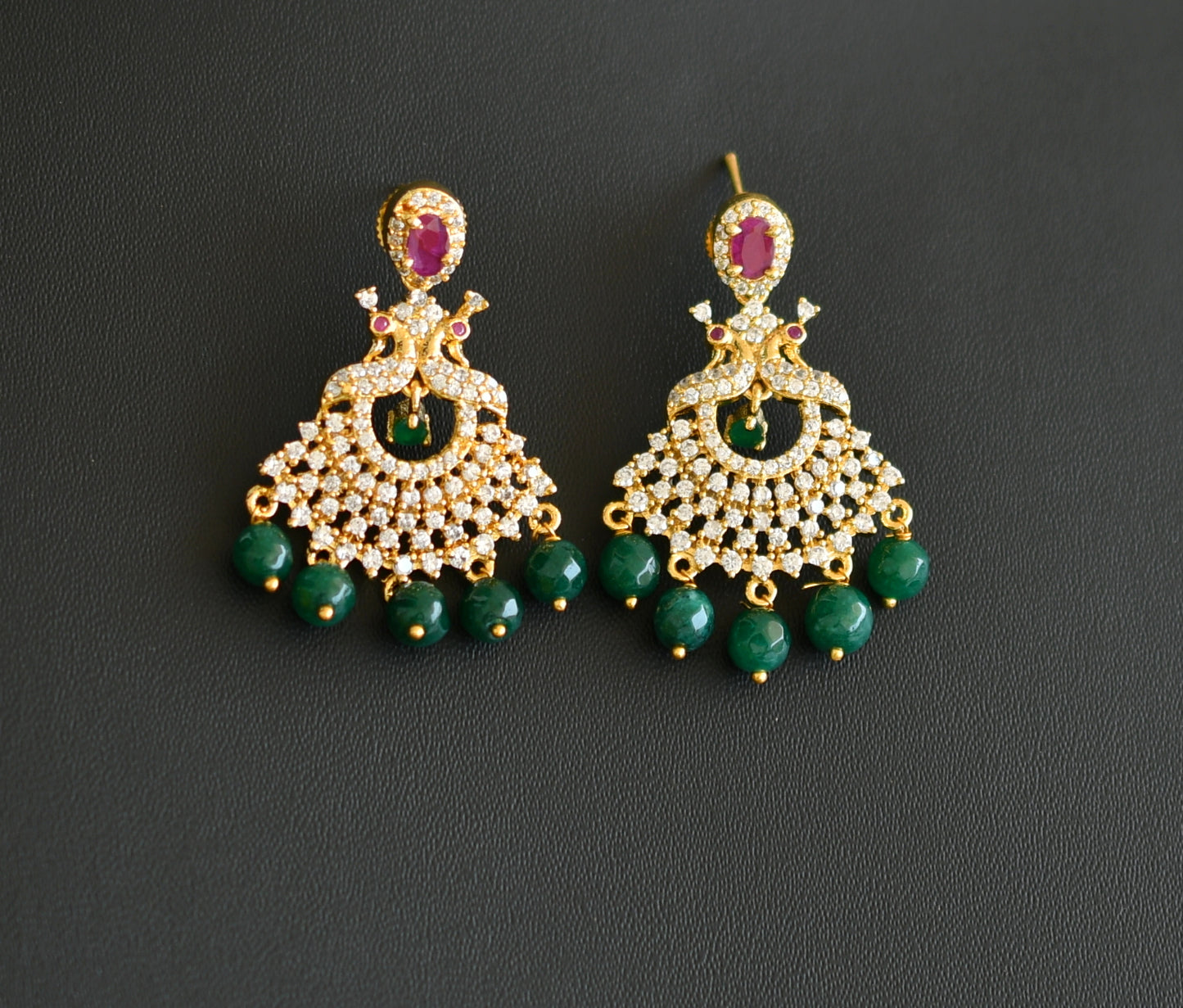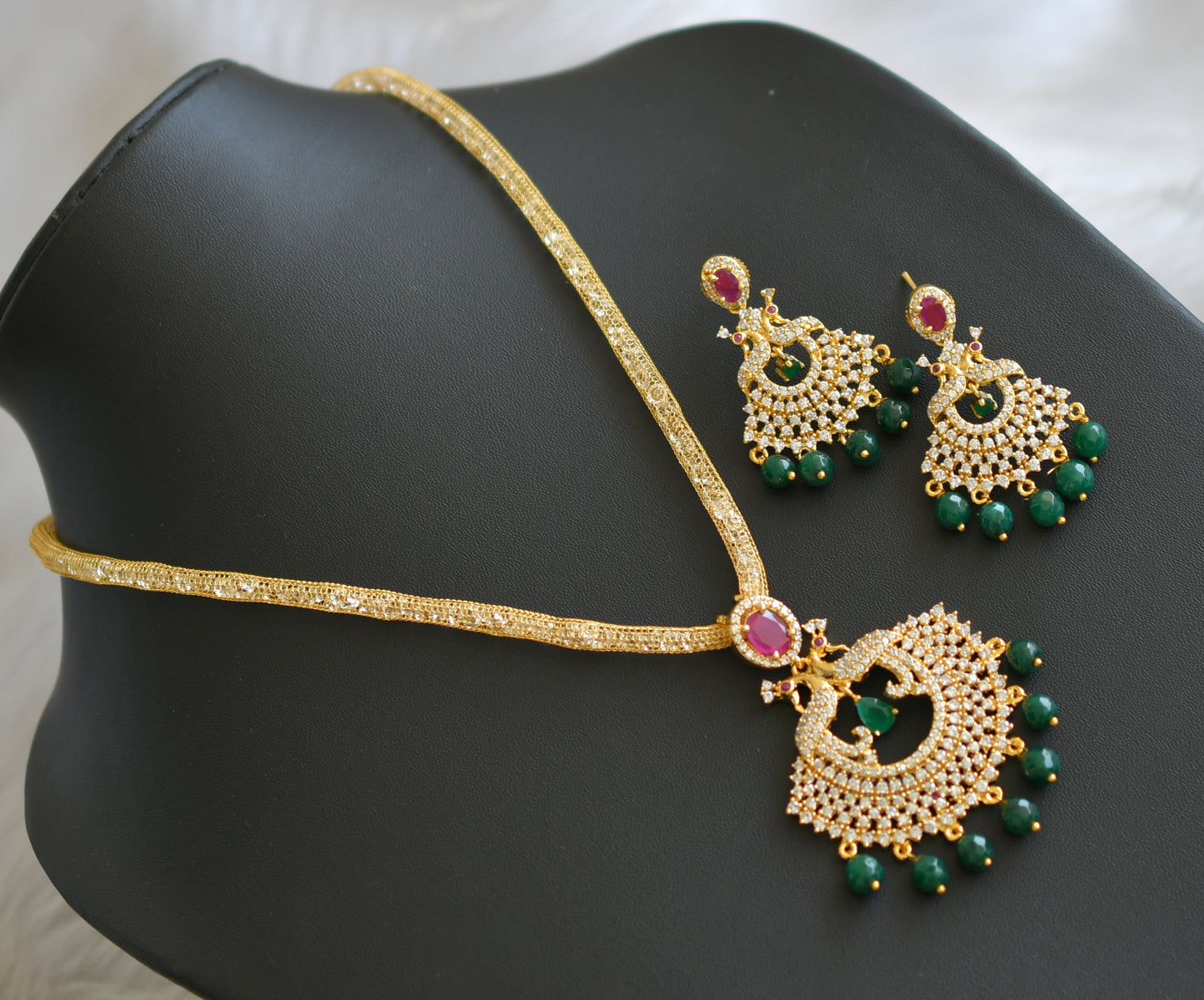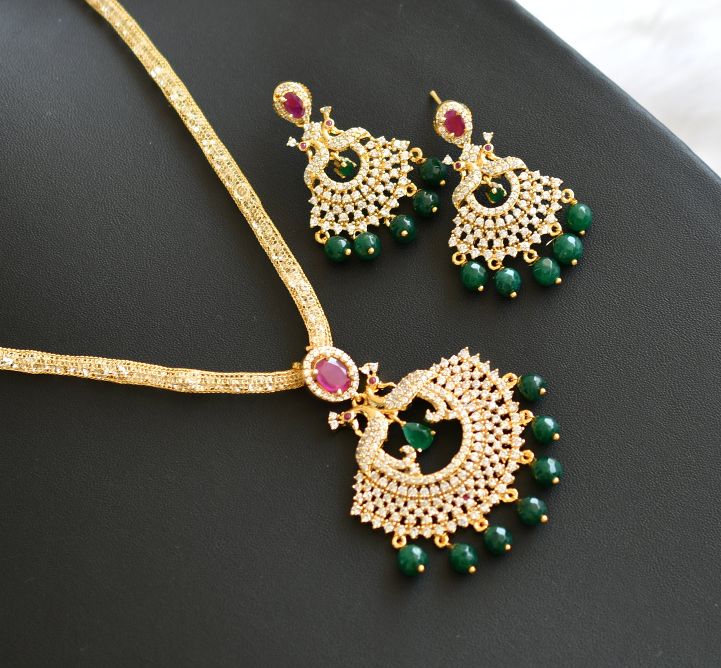 Gold tone cz white-ruby-green agates peacock pendant set dj-42371