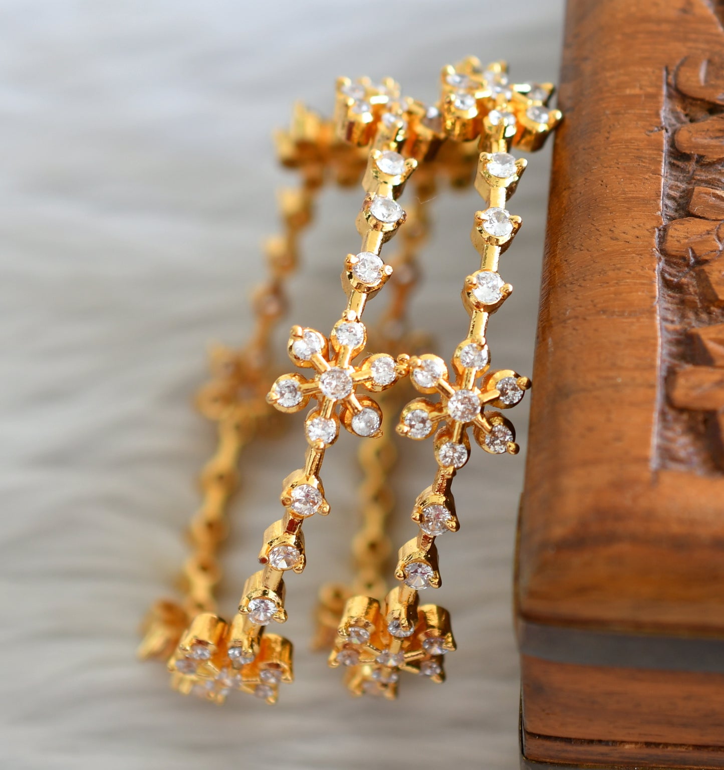 Gold tone cz white stone flower bangles (2.6) dj-43751