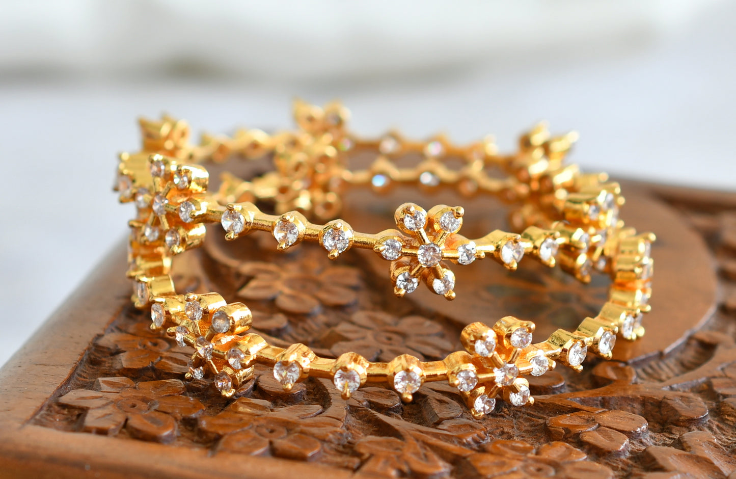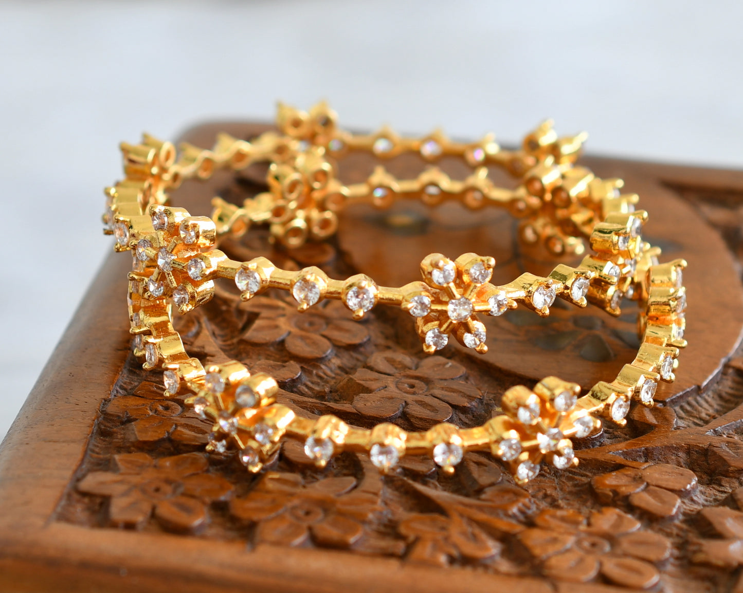 Gold tone cz white stone flower bangles(2.8) dj-43752