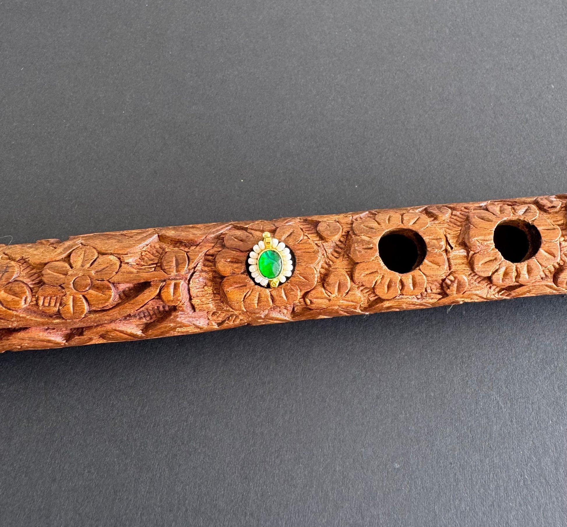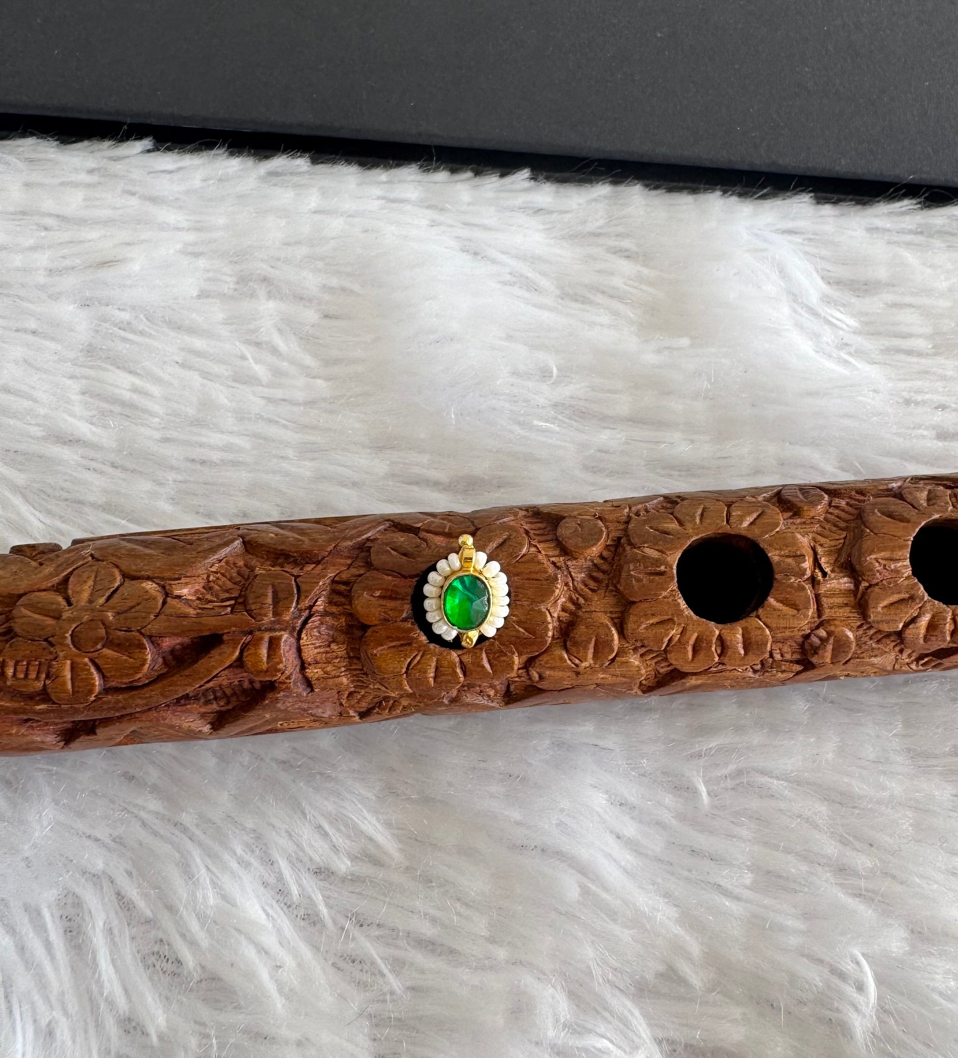 Gold tone green pearl oval kundan jadau flower Nose Pin Dj-51427